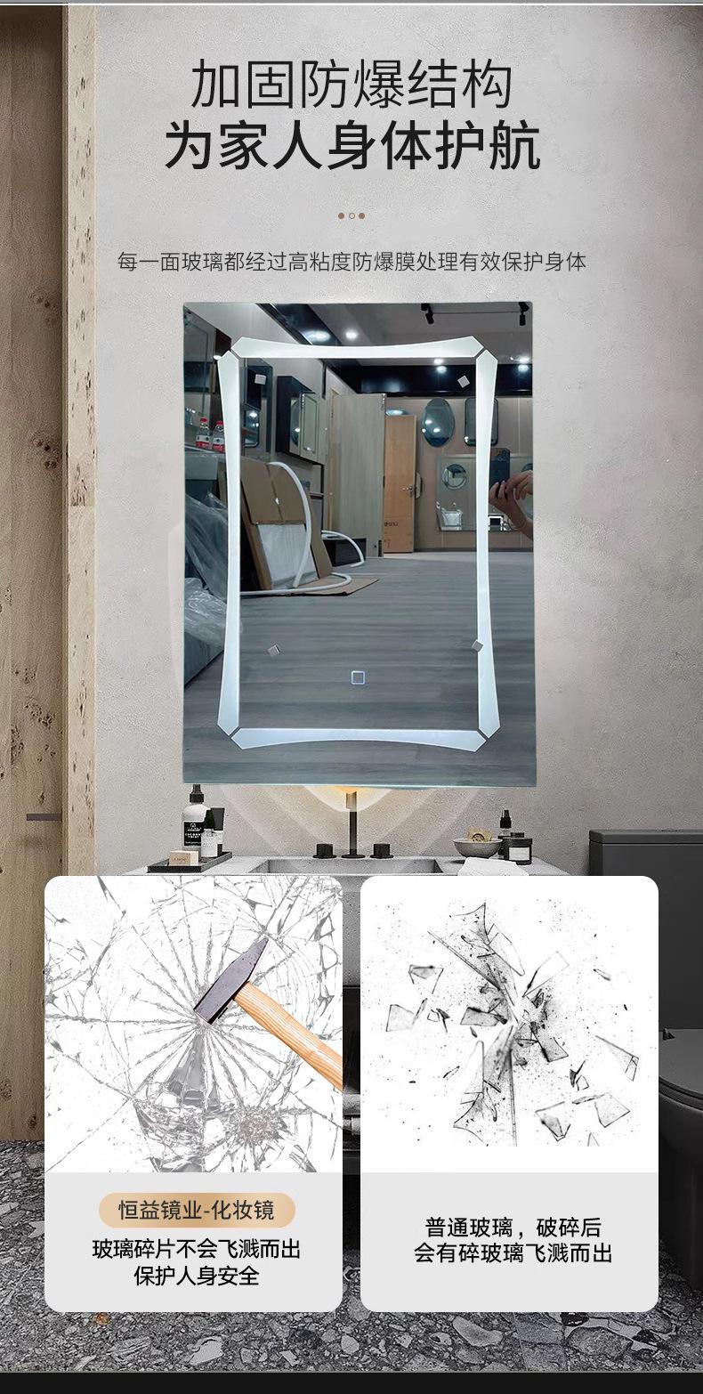 Espejo Cuadrado de Pared para Baño con Inodoro LED Espejo Inteligente para Baño Lavabo Antivaho Sin Marco Espejo de Maquillaje Desempañador