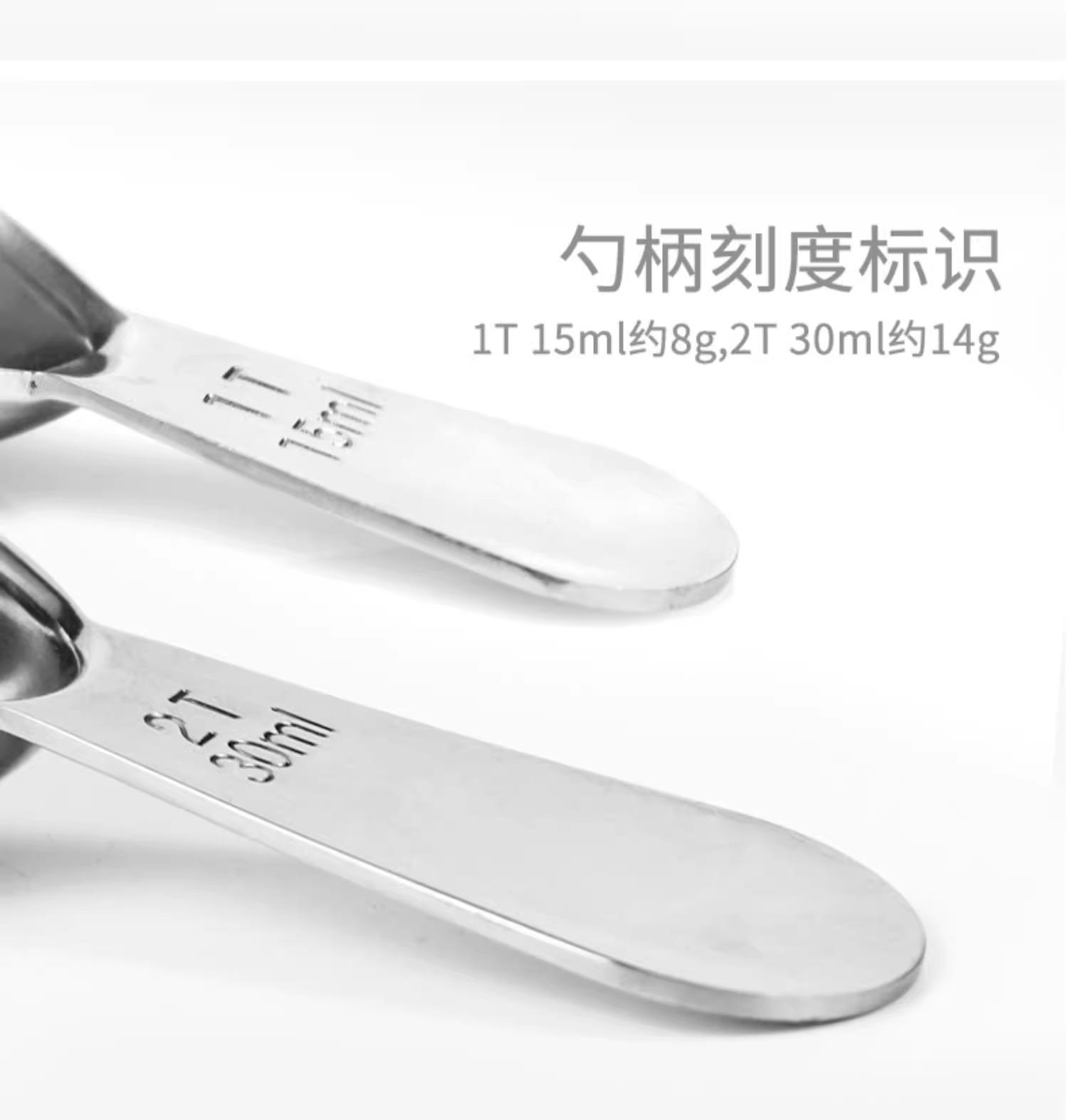 304 steel 15ml short measuring spoon (about 8g), 304 steel 30ml short measuring spoon (about 14g)