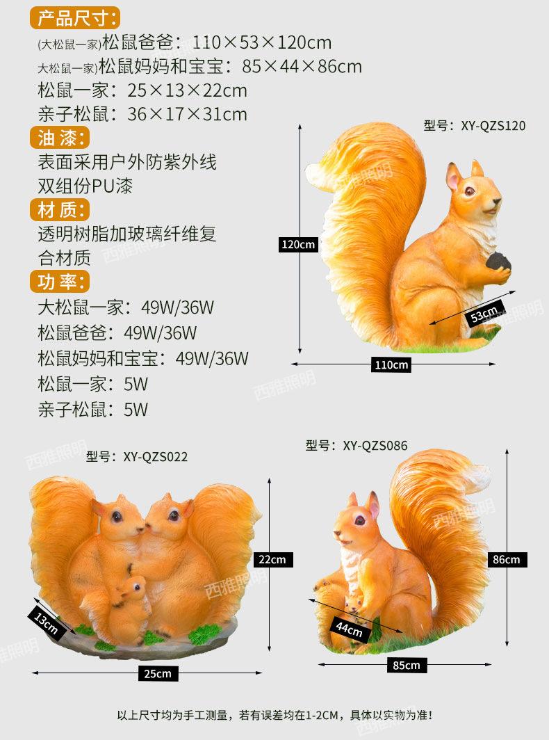 25*13 * 22CM squirrel family, 36*17 * 31CM squirrel parent-child, 110*53 * 120CM squirrel dad, 85*44 * 86CM sq...
