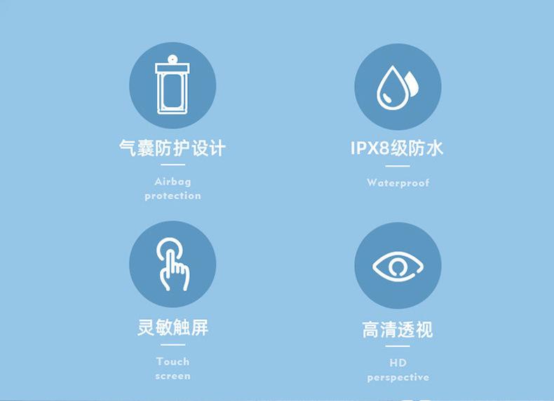 Bolsa impermeable para teléfono móvil con pantalla táctil, para natación, rafting, aguas termales, buceo, sellada, con botón y cremallera, transfronteriza.