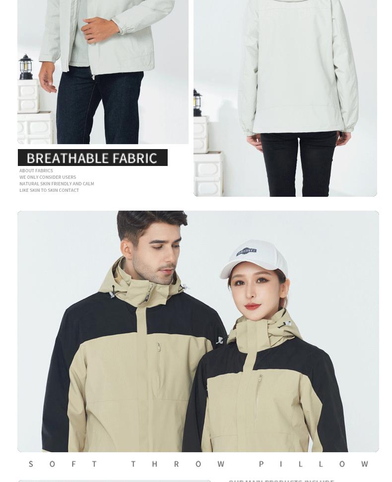 Chaqueta Impermeable para Hombre y Mujer, Conjunto Desmontable de Dos Piezas, Chaqueta Cortavientos de Montaña Tres en Uno, Chaqueta Gruesa de Manga Larga con Capucha