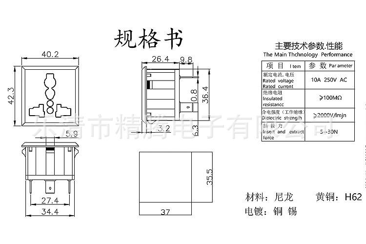 Número de producto:Toma de corriente CA, toma de corriente americana y europea con forma de ocho en forma de flor de ciruelo, toma de corriente tres en uno