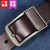 Cinturón negro con hebilla automática de cuero genuino para hombre, cinturón de piel de vaca pura a la moda, venta al por mayor, envío directo de una pieza
