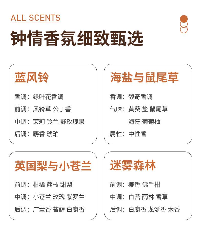 Blue wind chimes, Sage with sea salt, British pear freesia, Misty Forest