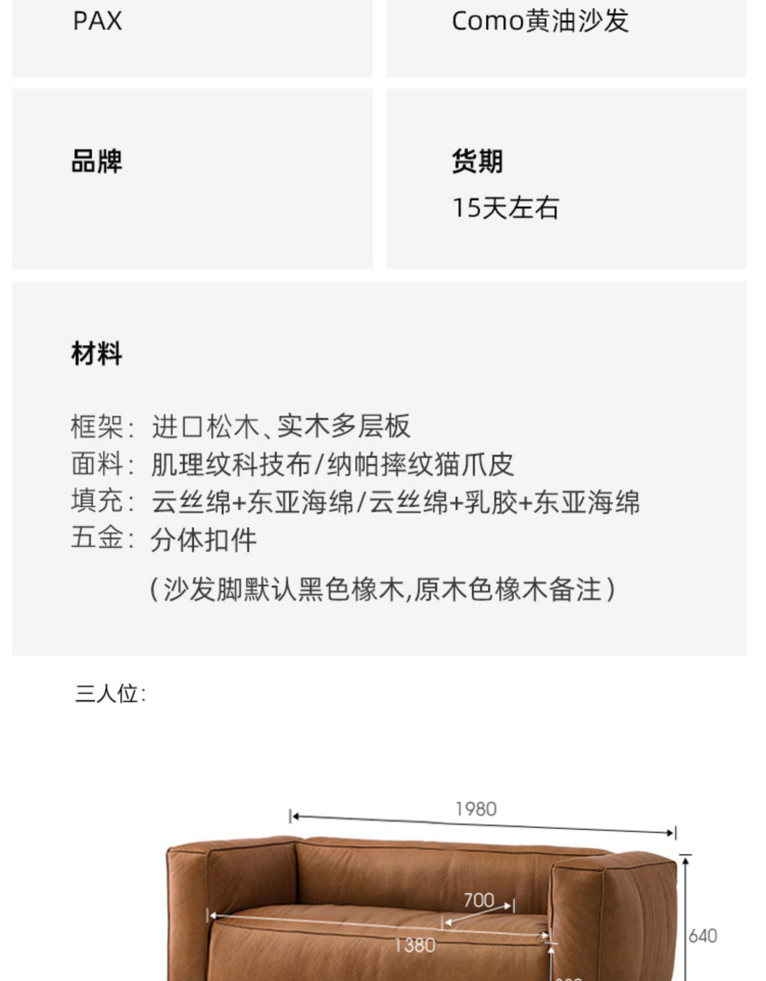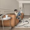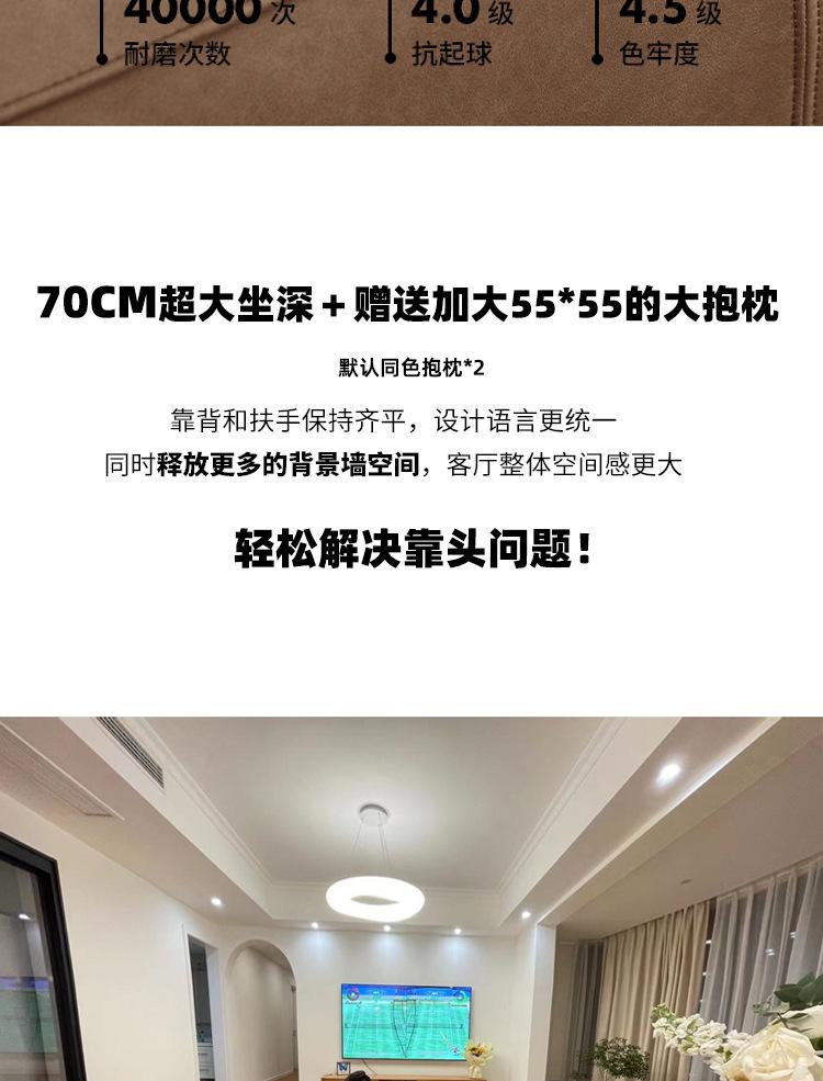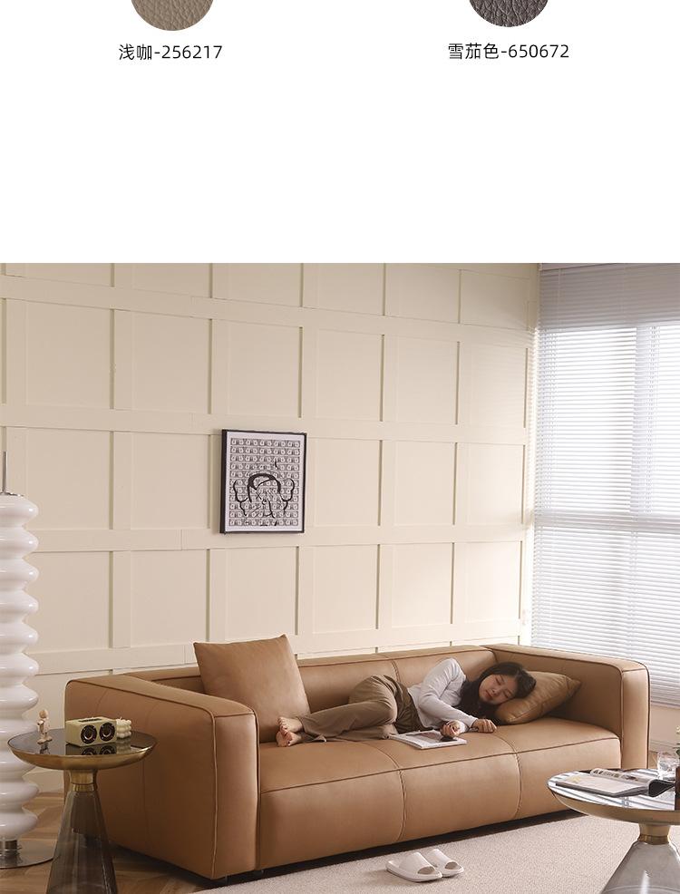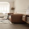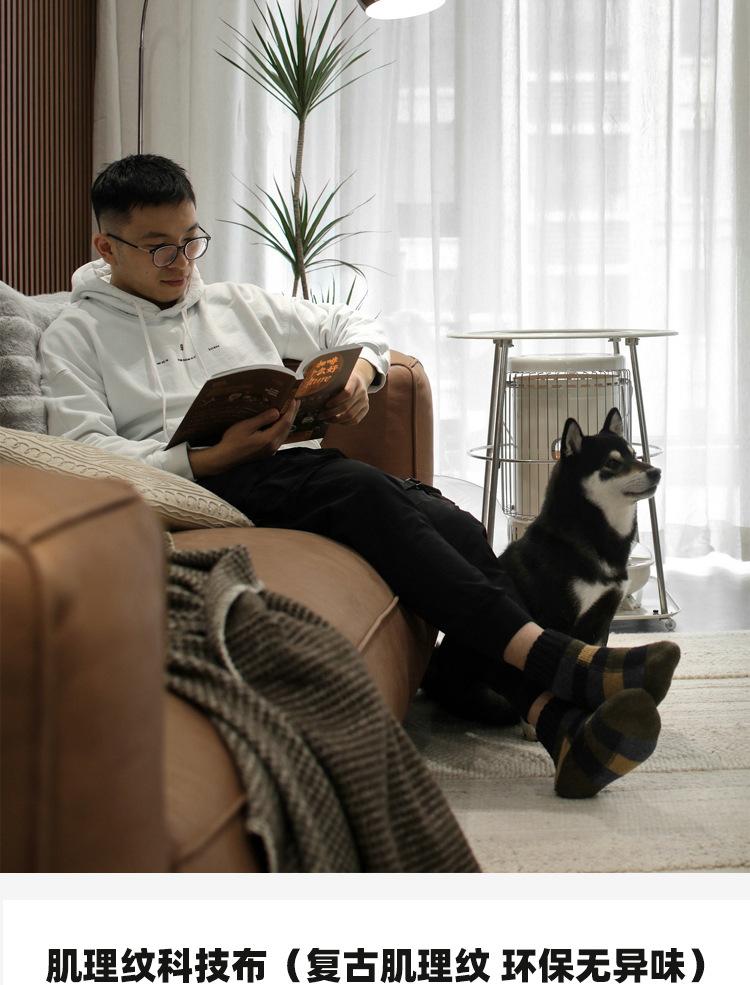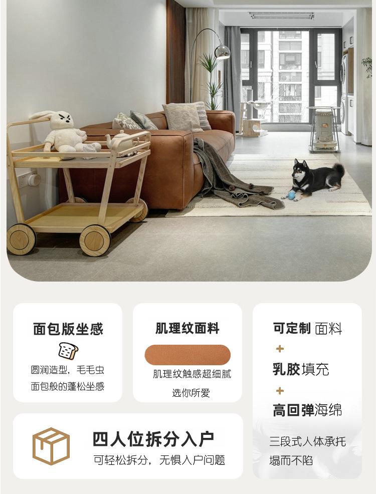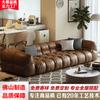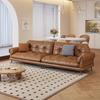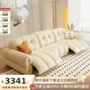 Estilo Wabi-Sabi Nórdico Crema Lujo Ligero Estilo Retro Marrón Fila Recta Sala de Estar Moderno Simple Tela Tecnológica Francesa Sofá de Cuero