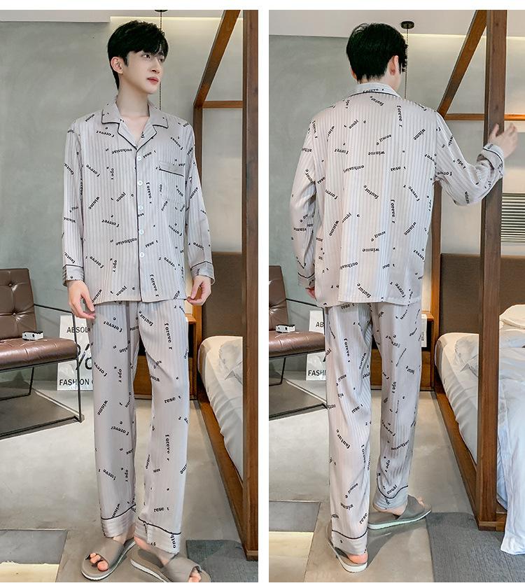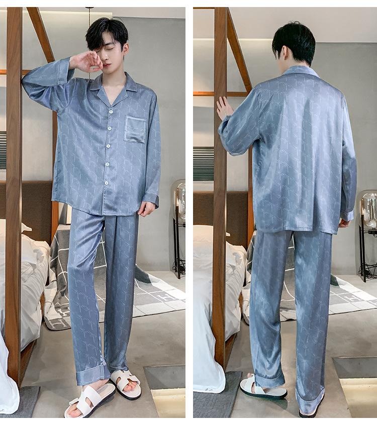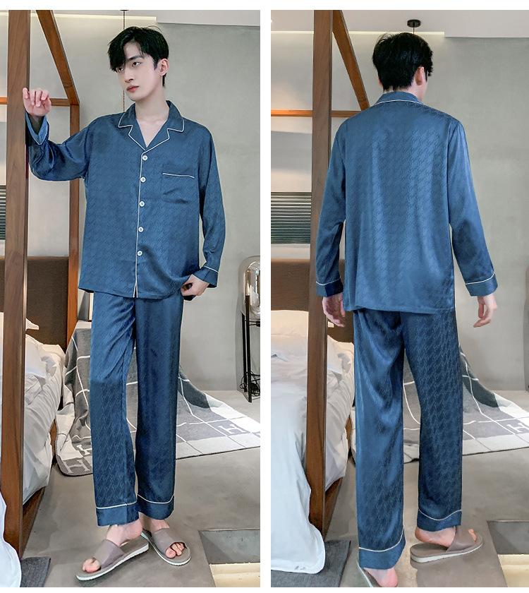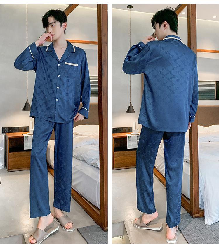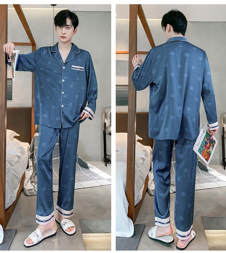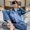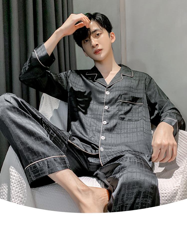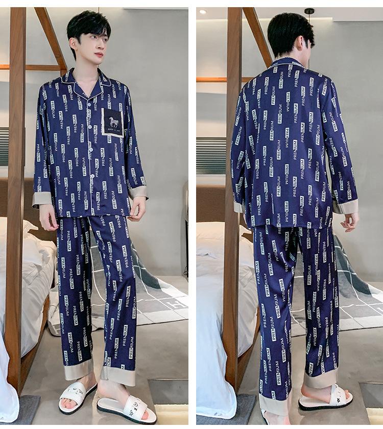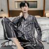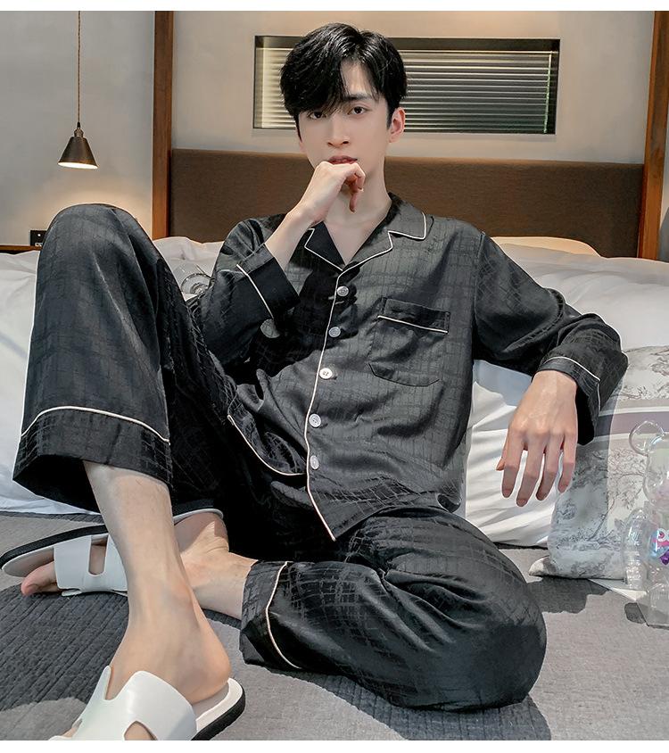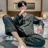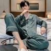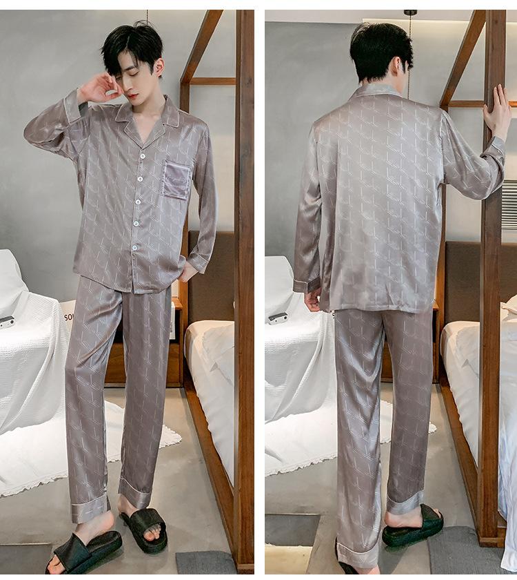 Pijamas de seda de hielo para hombre, primavera y otoño, manga larga, seda fina de imitación, solapa para las cuatro estaciones, ropa de hogar, novedad de 2022