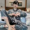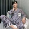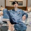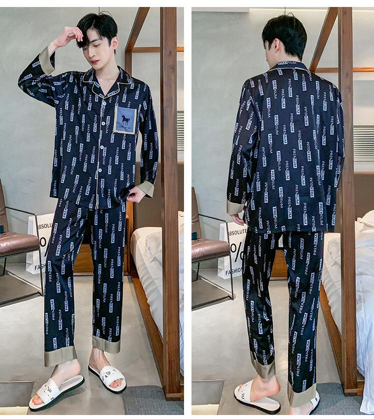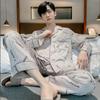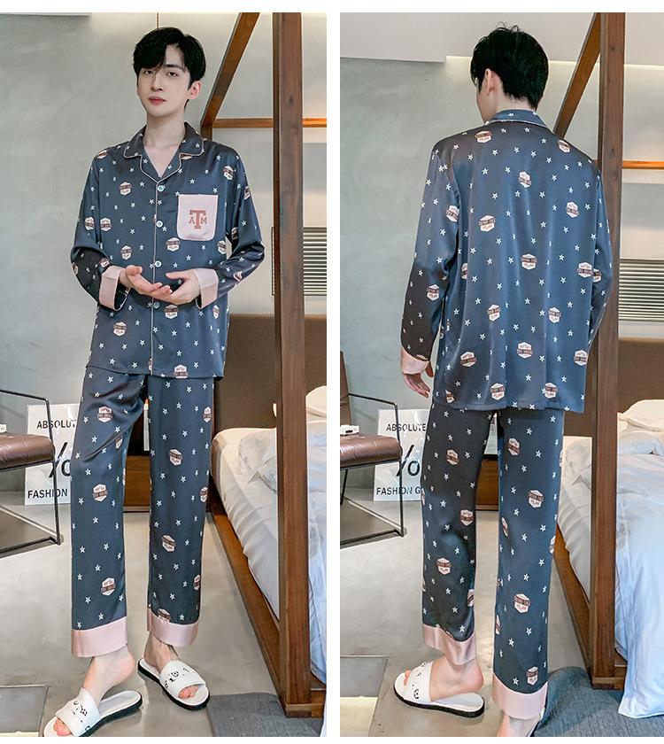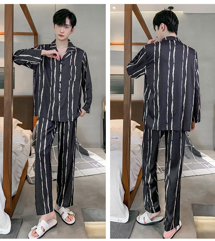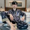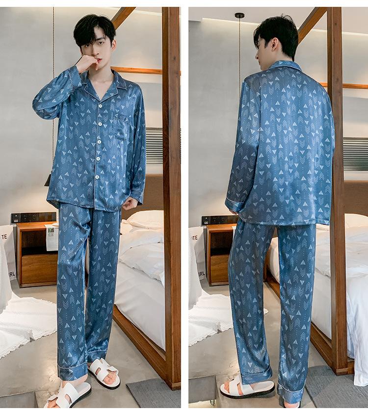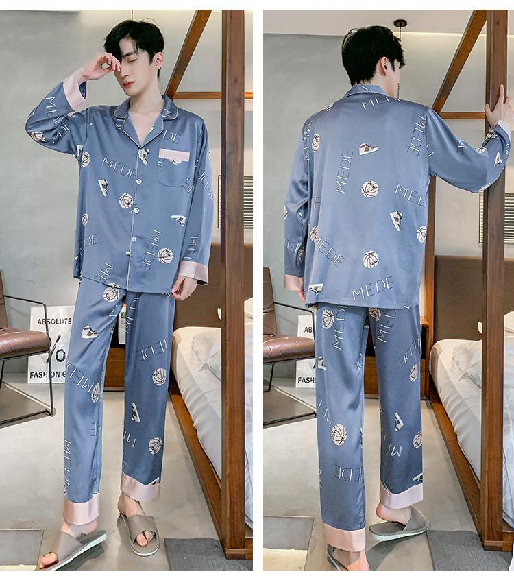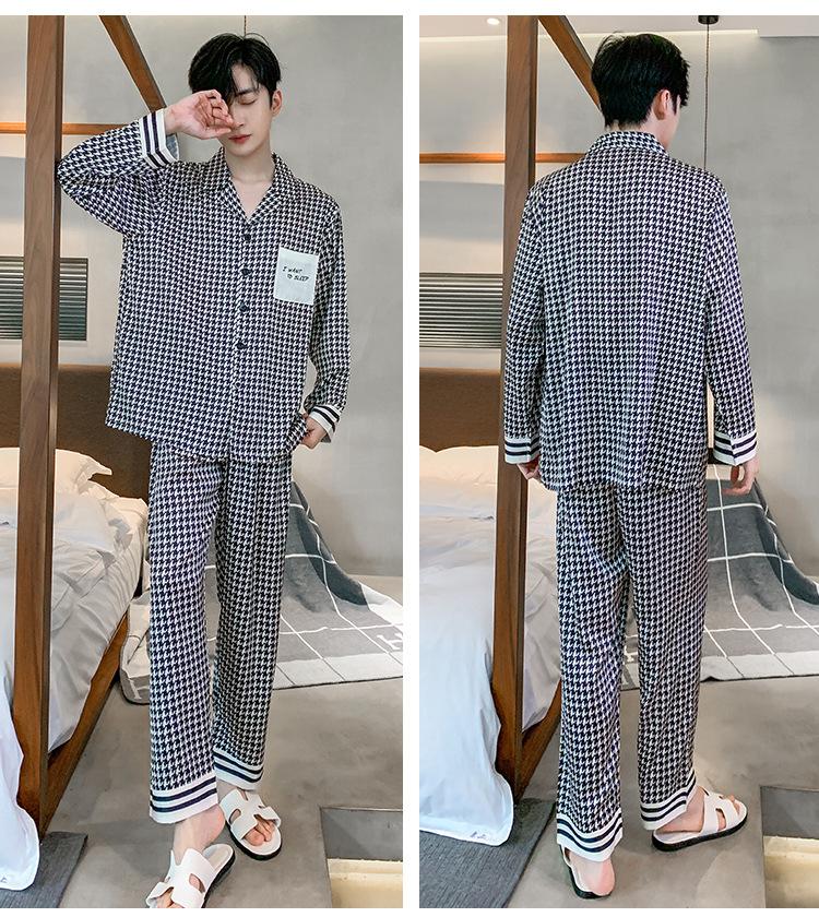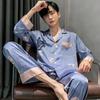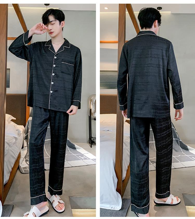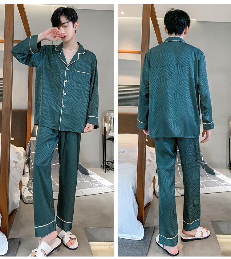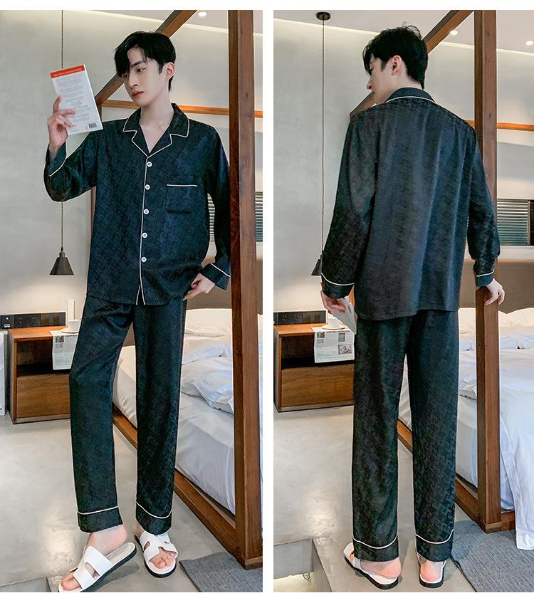 Pijamas de seda de hielo para hombre, primavera y otoño, manga larga, seda fina de imitación, solapa para las cuatro estaciones, ropa de hogar, novedad de 2022