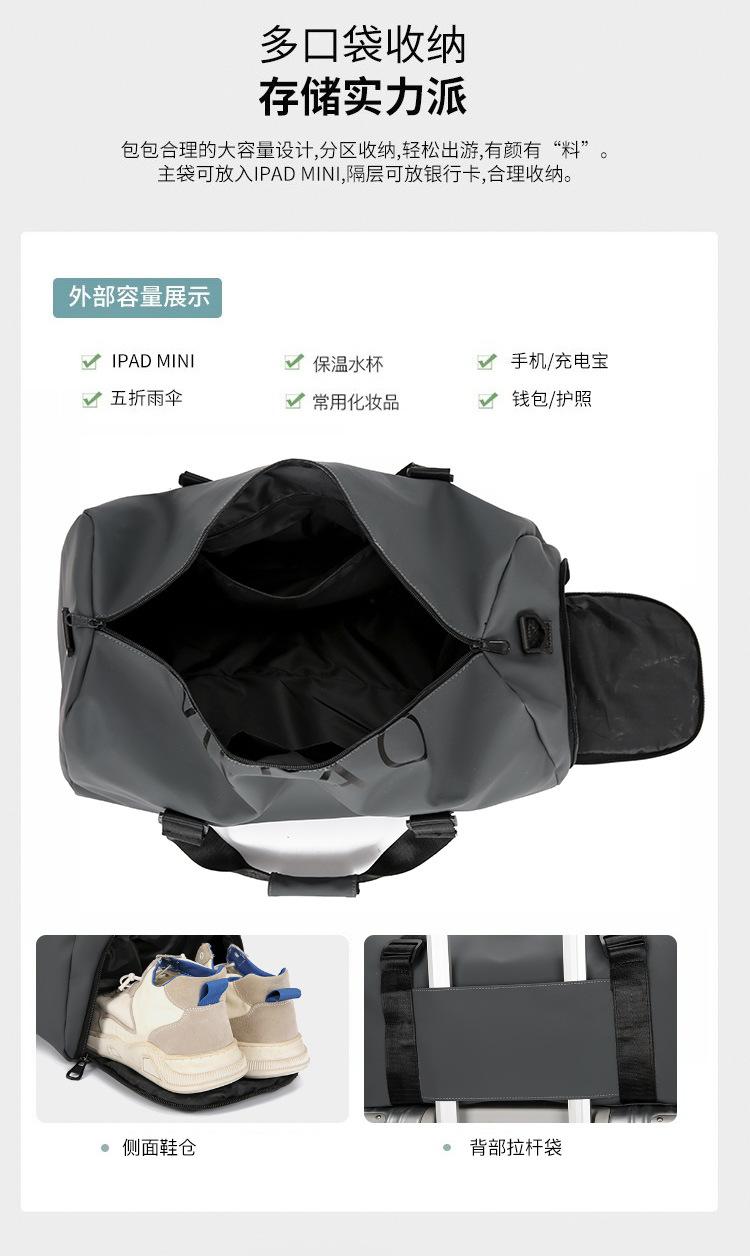 Bolsa de viaje portátil para almacén de zapatos de corta distancia, bolso de hombro de gran capacidad, bolsa deportiva de fitness, bolsa portátil impermeable, color sólido