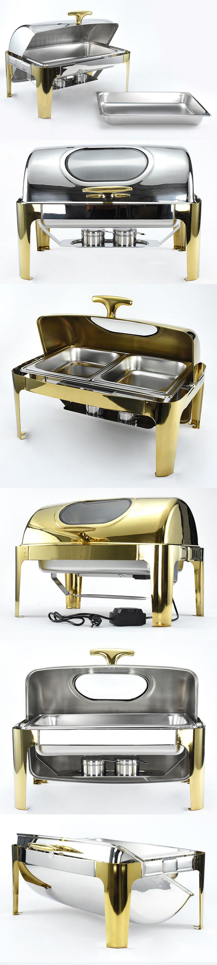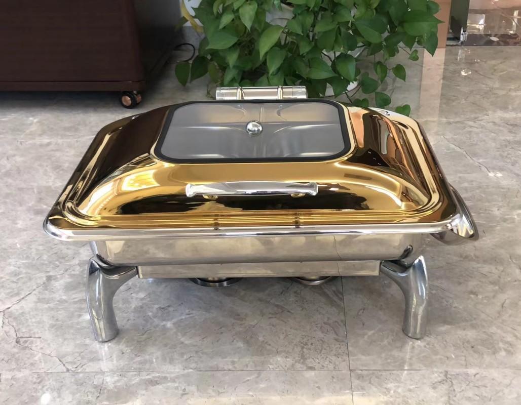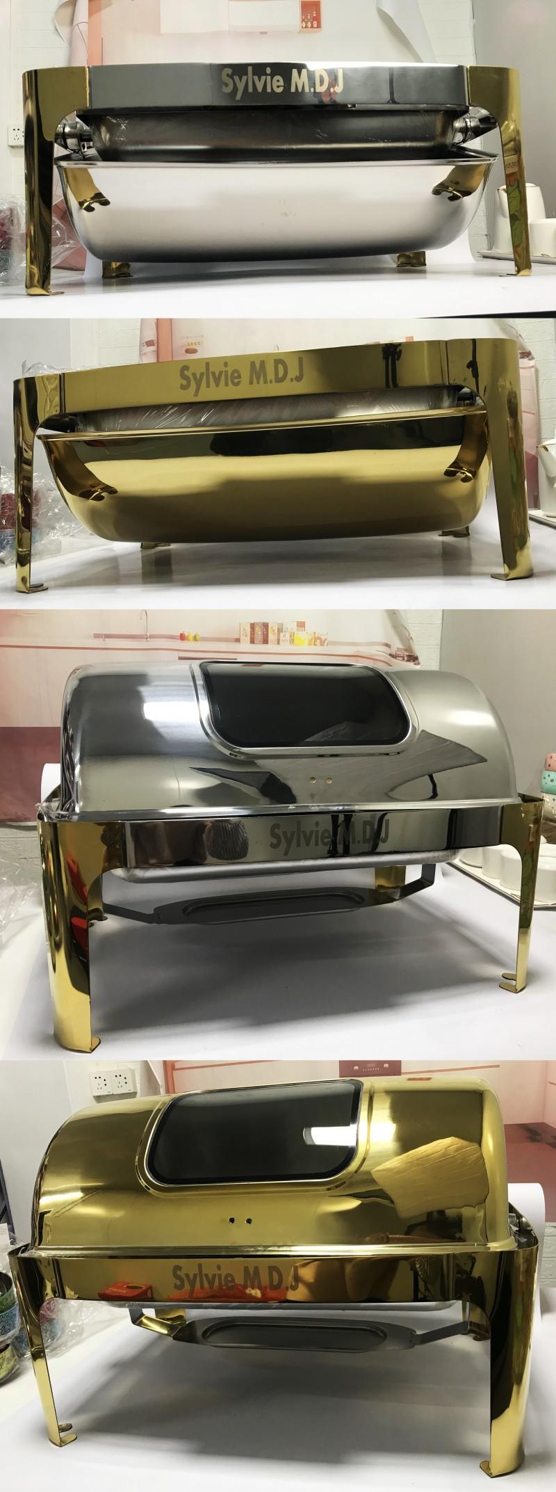 Compra Estufa de Comedor con Tapa Abatible de Acero Inoxidable con Logo Personalizado Transfronterizo Buffet Hotel Estufa Buffy Dorada Calentamiento con Alcohol y Estufa de Aislamiento al por mayor en Joom.pro