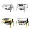 Estufa de Comedor con Tapa Abatible de Acero Inoxidable con Logo Personalizado Transfronterizo Buffet Hotel Estufa Buffy Dorada Calentamiento con Alcohol y Estufa de Aislamiento