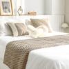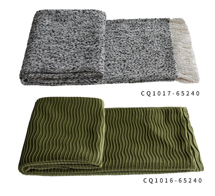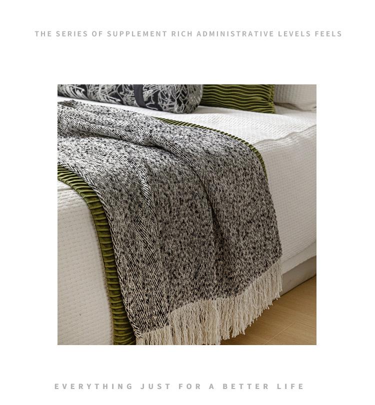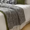 65*240cm gray cotton and linen texture tassel blanket, 65*210cm forest green water ripple bed flag for 1.5m be...