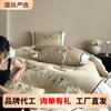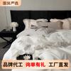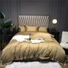 Juego de cama de cuatro piezas de algodón de fibra larga, ligero y lujoso, de 100% algodón satinado, funda de edredón bordada sencilla, sábana y funda de almohada.