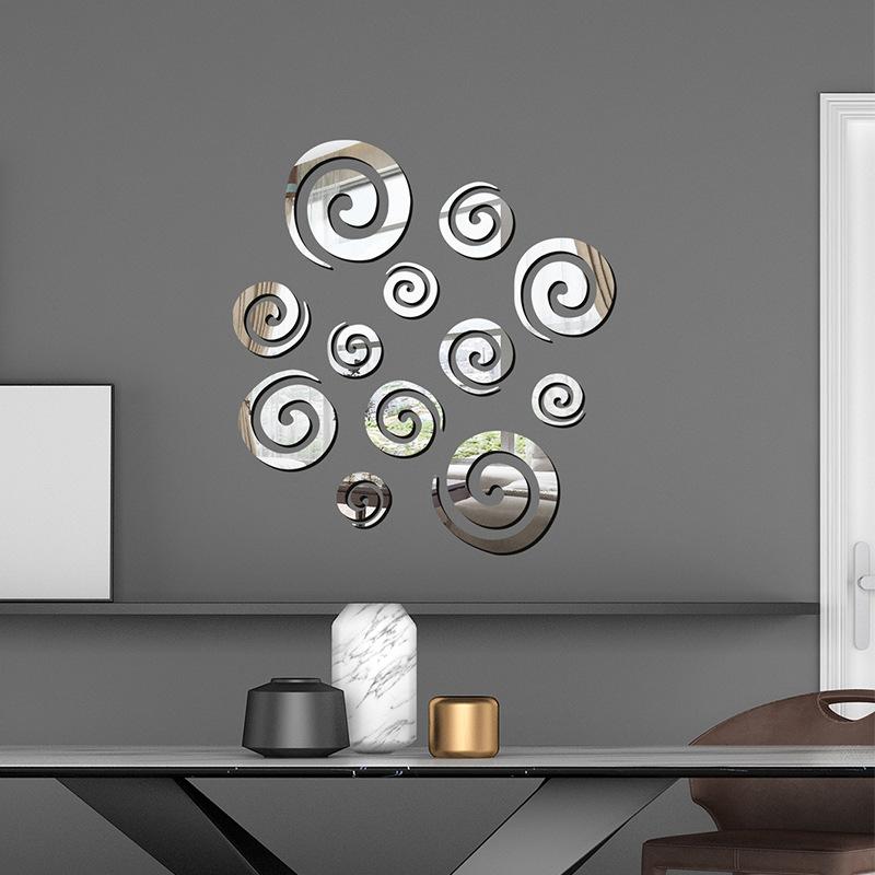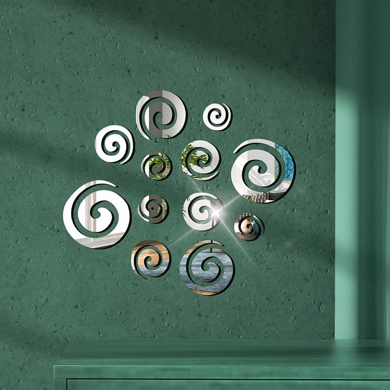 Fábrica de pegatinas de espejo para pared, venta al por mayor, nuevas pegatinas de espejo decorativas en espiral para dormitorio y sala de estar.