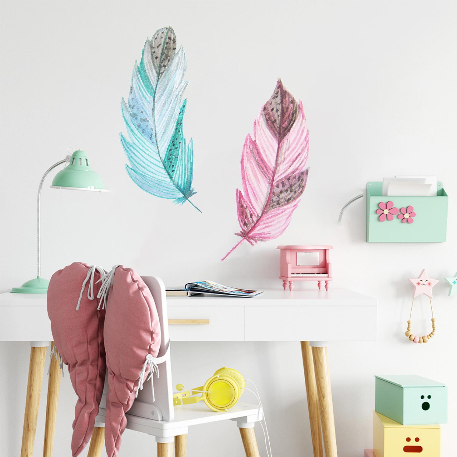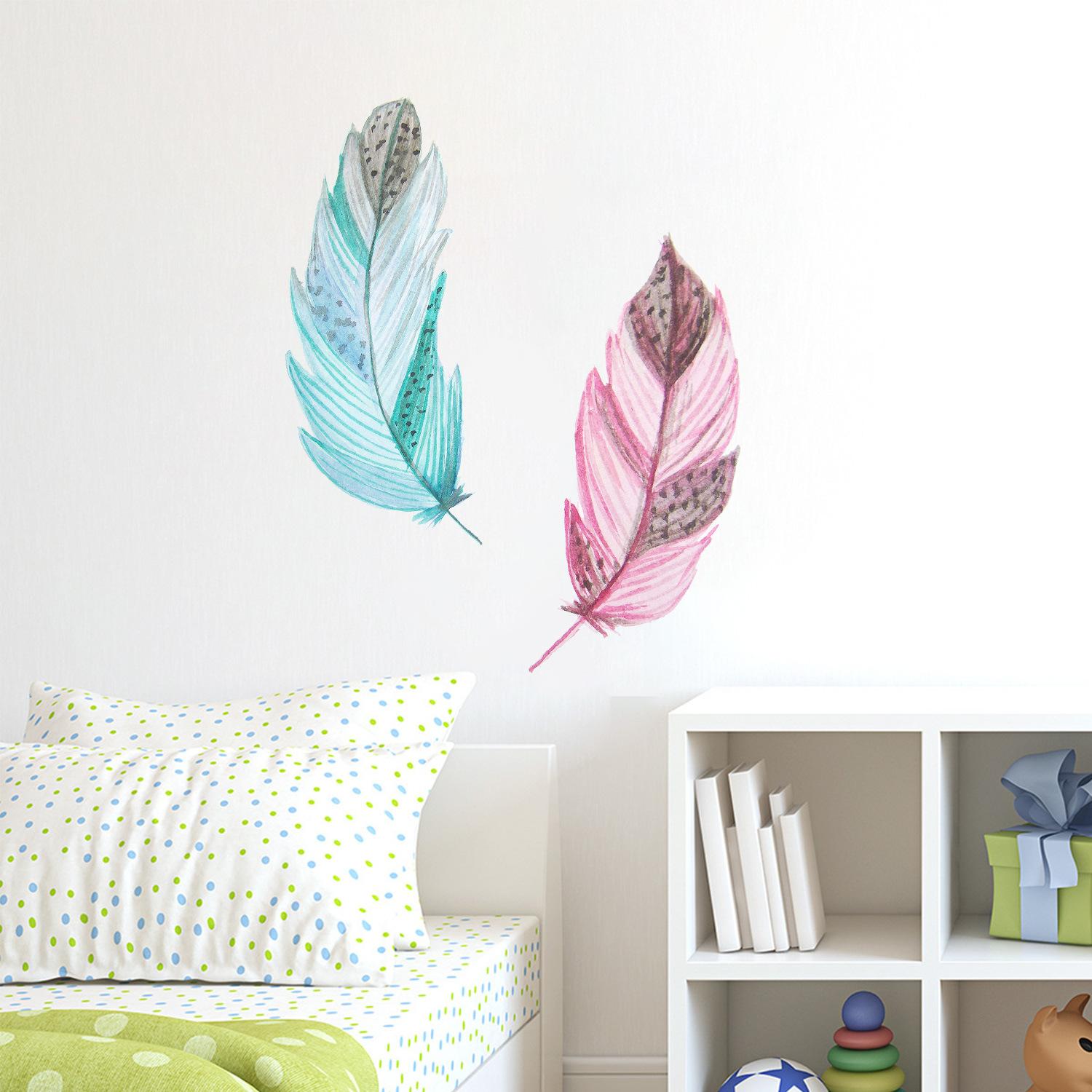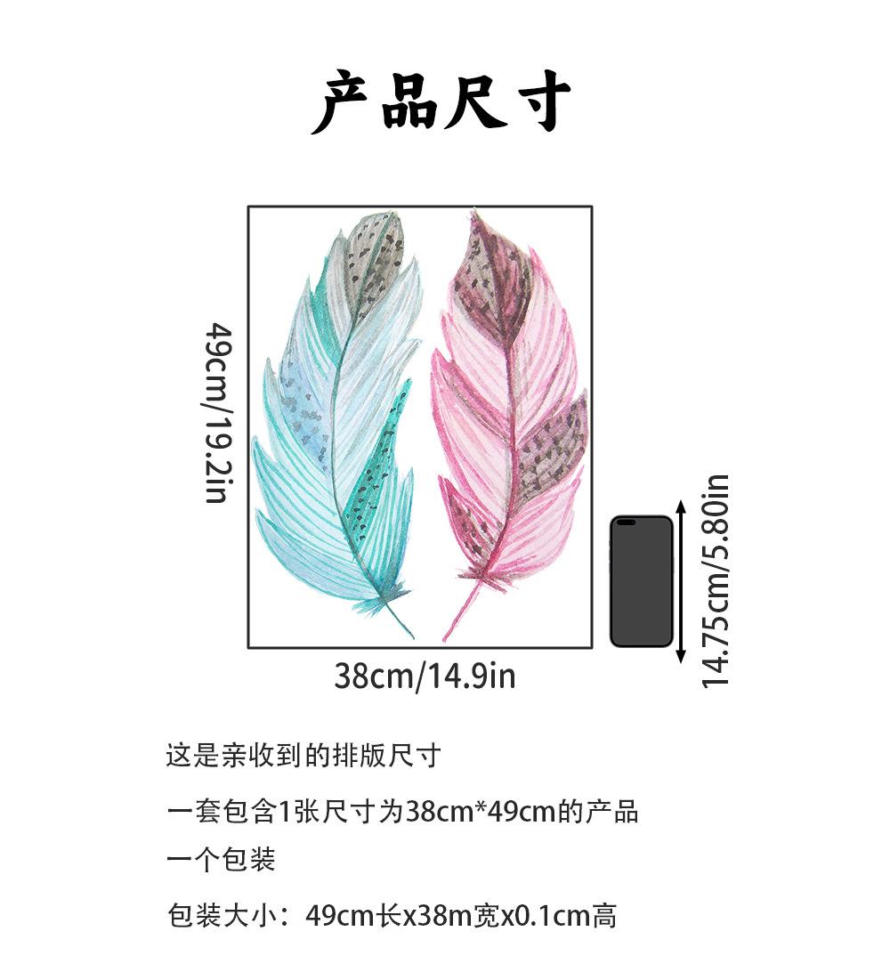 Pegatinas de pared con dos plumas de Amazon para comercio exterior transfronterizo, para dormitorio, sala de estar, decoración de pared, venta al por mayor