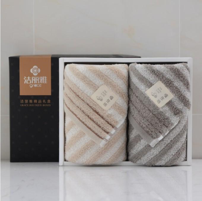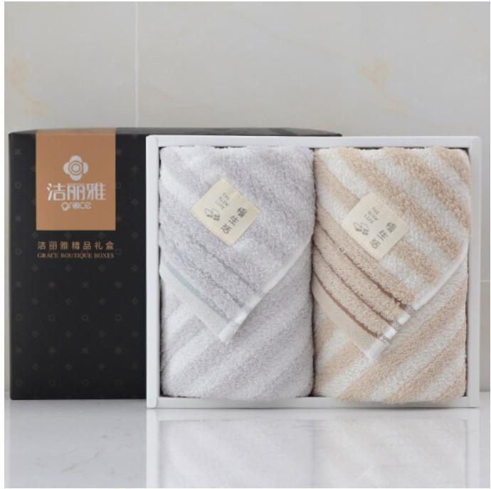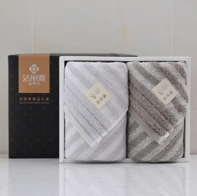 Caja de regalo de toalla Jieliya slow life 2 piezas de toalla facial tipo A de algodón puro algodón de fibra larga de Xinjiang caja de regalo para caballero toalla cómoda suave absorbente 74*34cm gris claro + marrón claro 110g/pieza