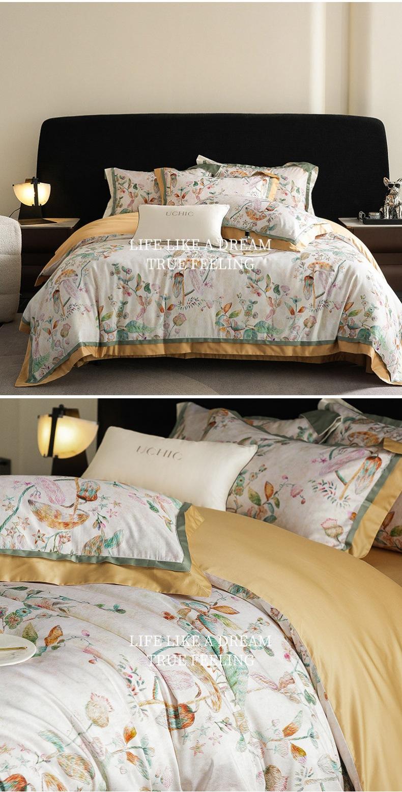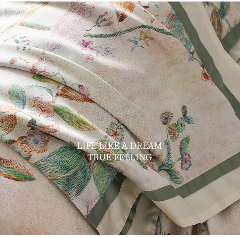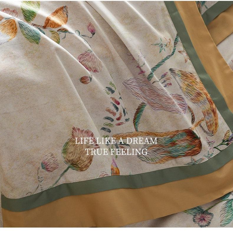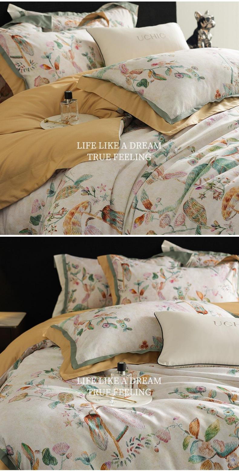 Juego de cuatro piezas de algodón satinado para las cuatro estaciones estilo americano con estampado digital floral colorido Cubre edredón de algodón puro Sábanas Ropa de cama