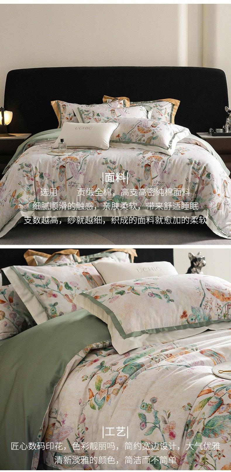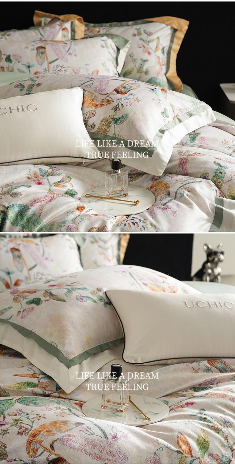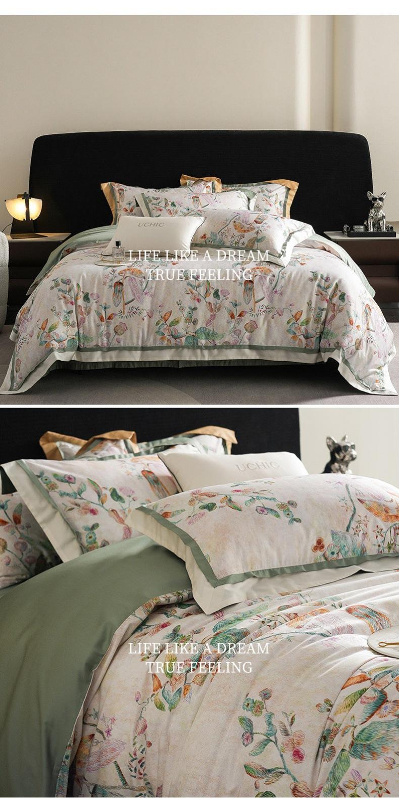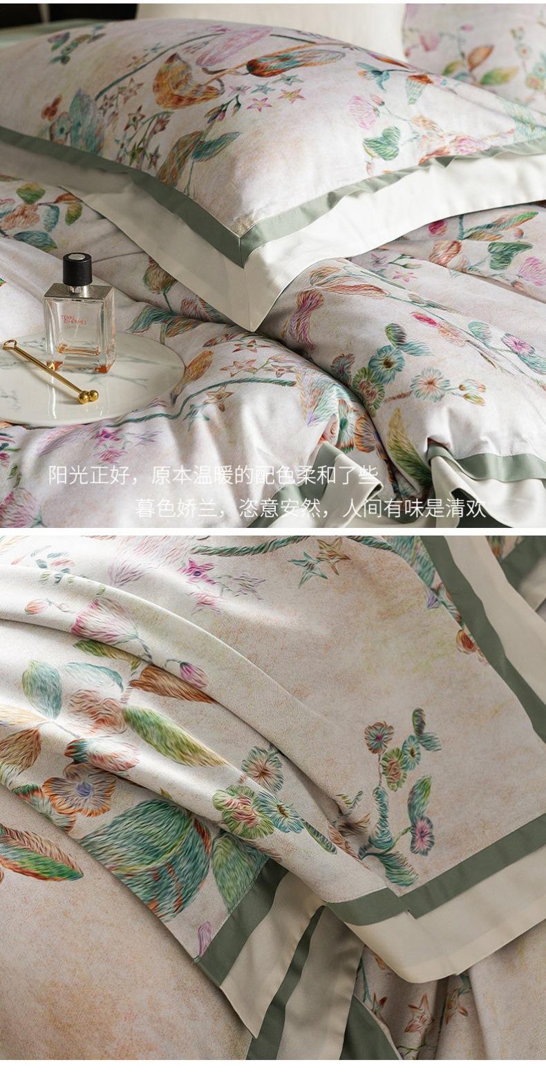 Juego de cuatro piezas de algodón satinado para las cuatro estaciones estilo americano con estampado digital floral colorido Cubre edredón de algodón puro Sábanas Ropa de cama