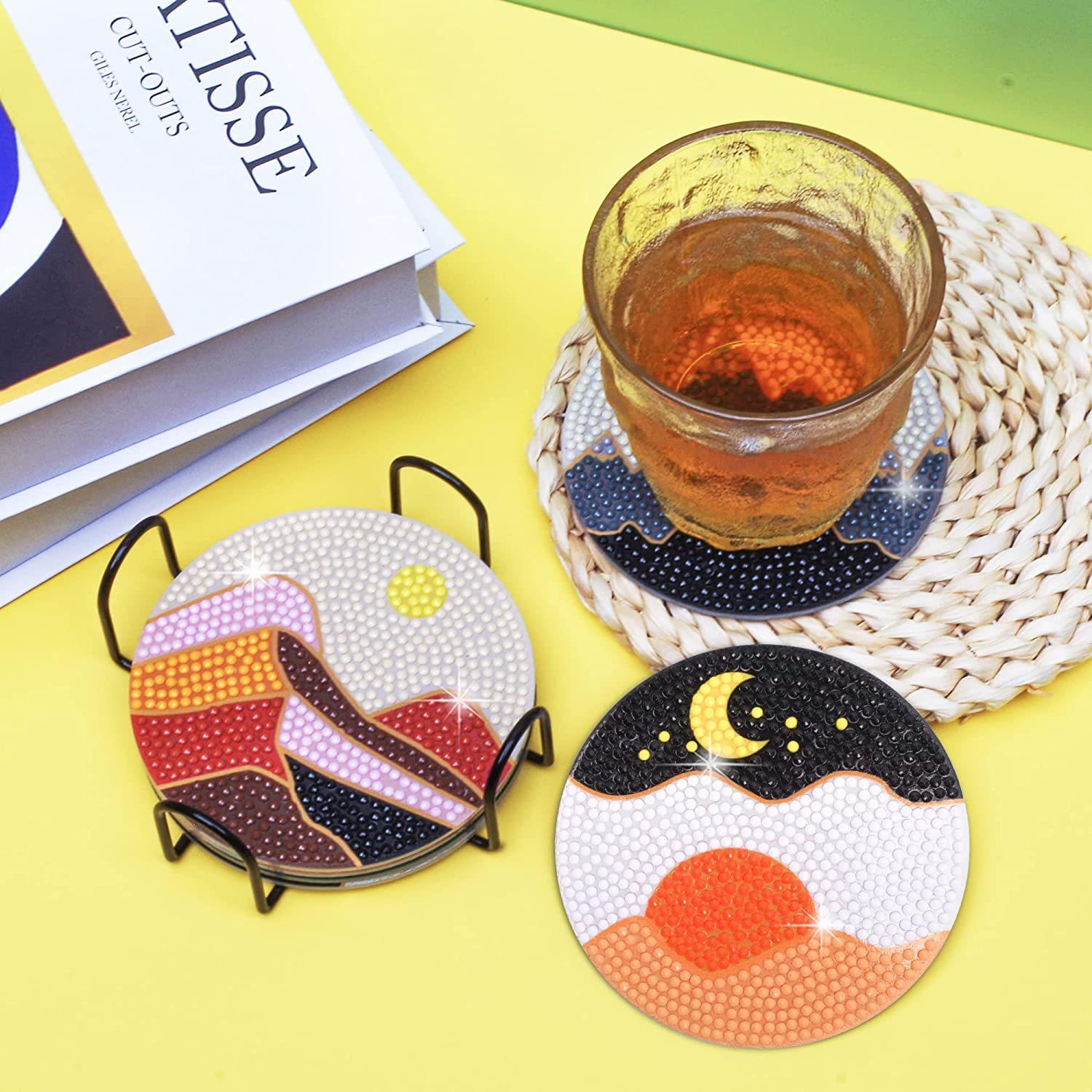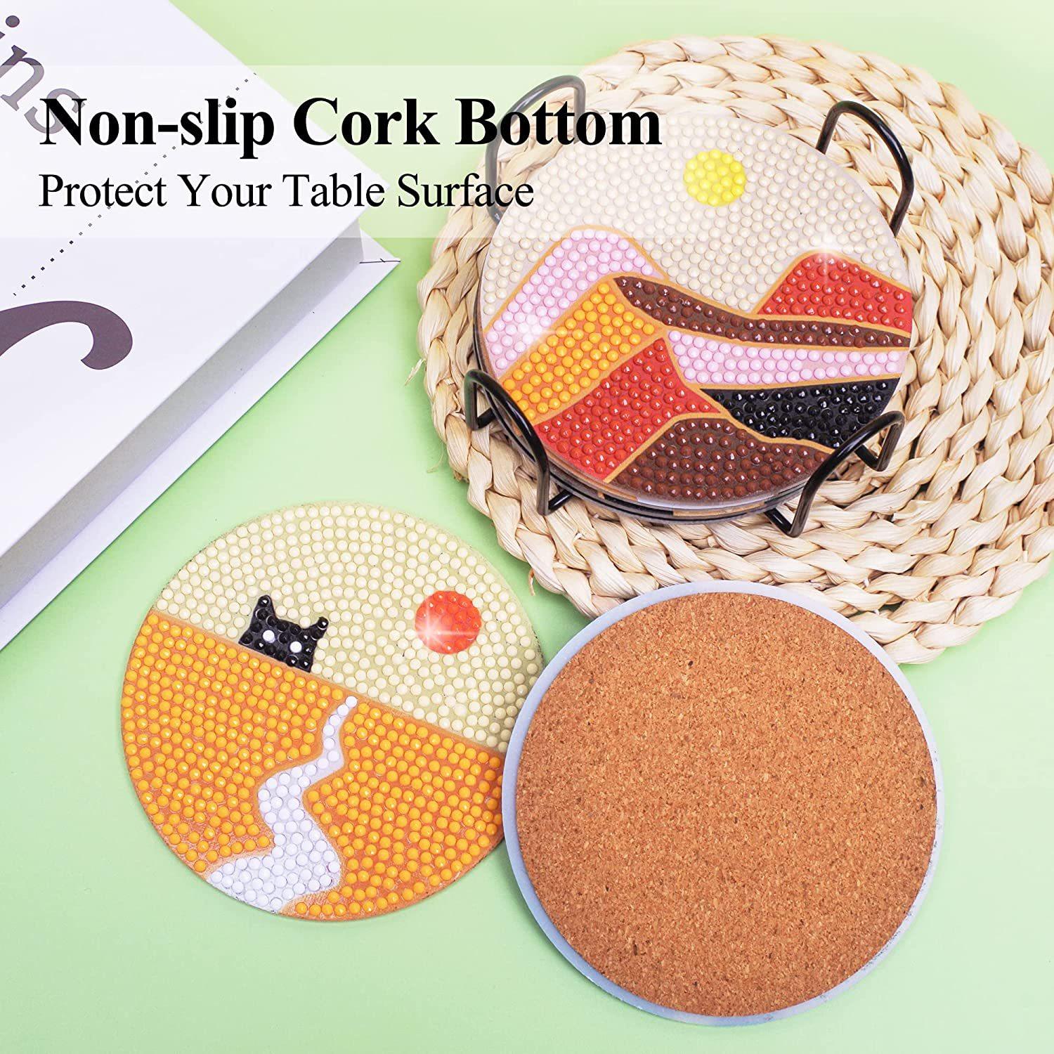 Posavasos de Arte Diamante Antideslizante con Fondo de Corcho Adhesivo Aislante Juego de Posavasos de Pintura de Diamante con Soporte Hecho a Mano DIY