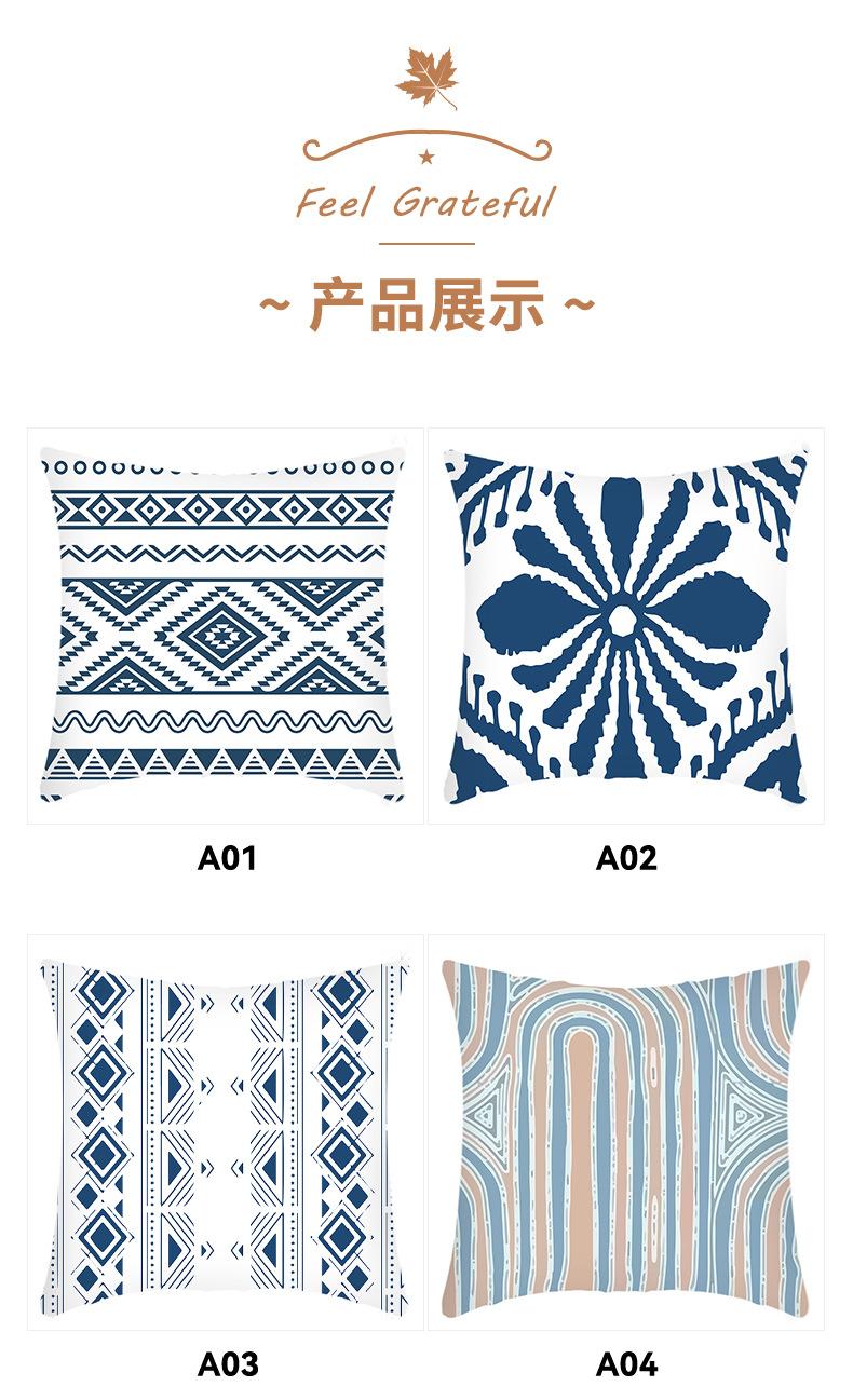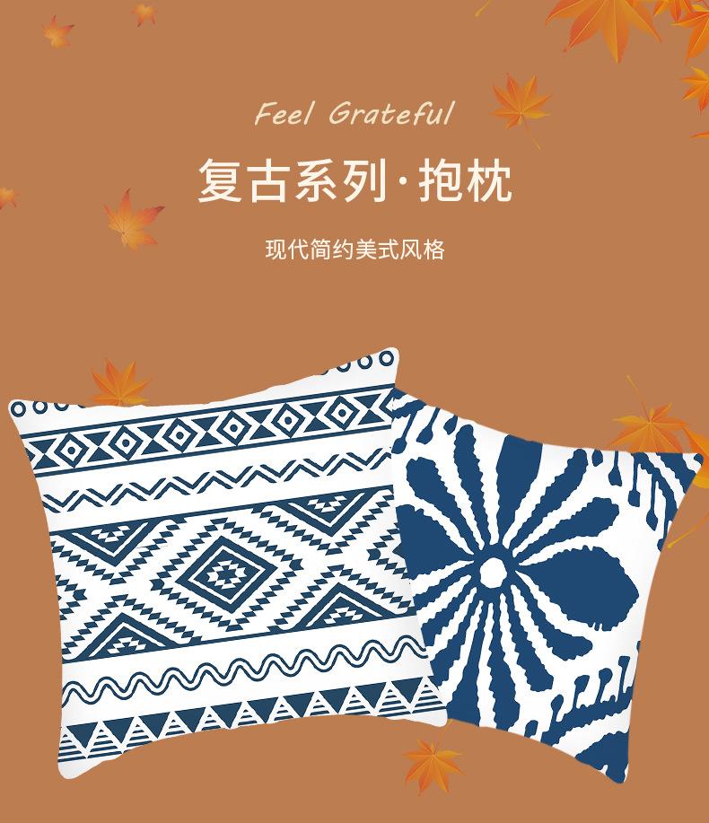 Compra Nueva funda de almohada con estampado retro azul de letras transfronterizas para sofá de casa. al por mayor en Joom.pro