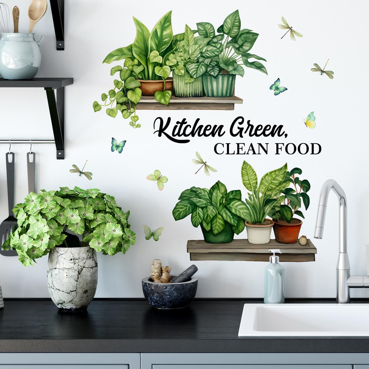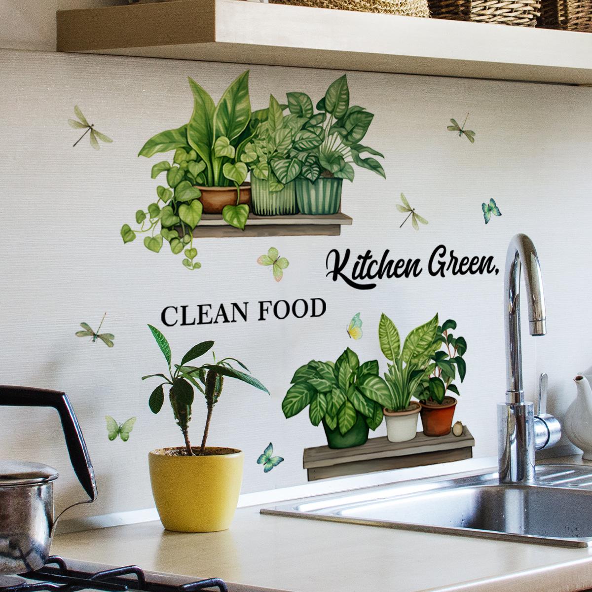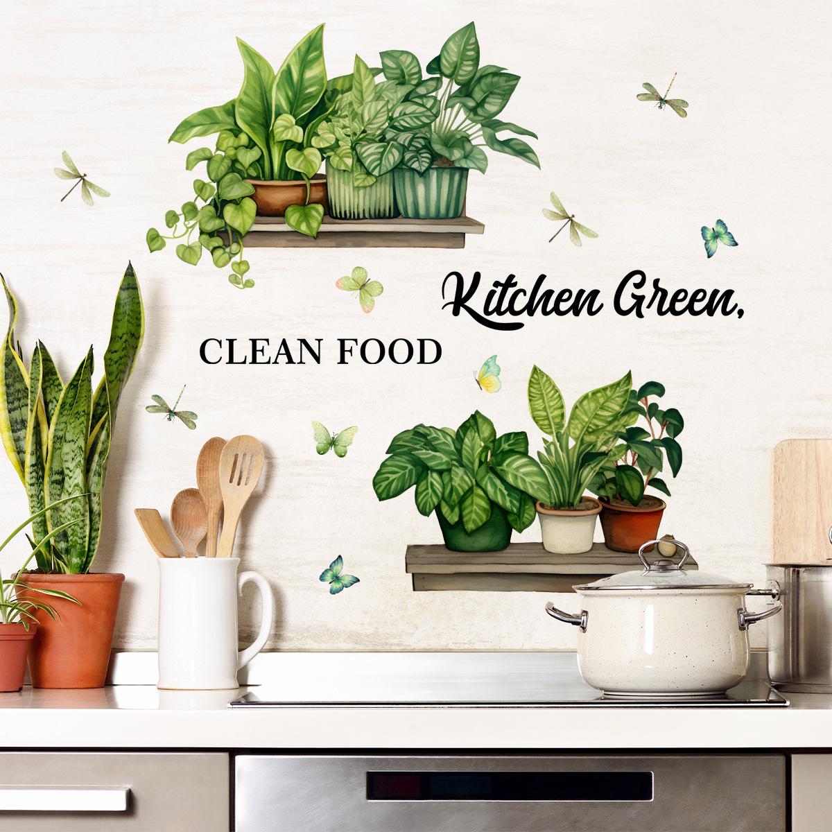 MS2495 Cocina inglesa Planta verde Planta en maceta Pegatinas de pared Fondo Pared Cocina Pegatinas de pared decorativas Pegatinas de pared autoadhesivas