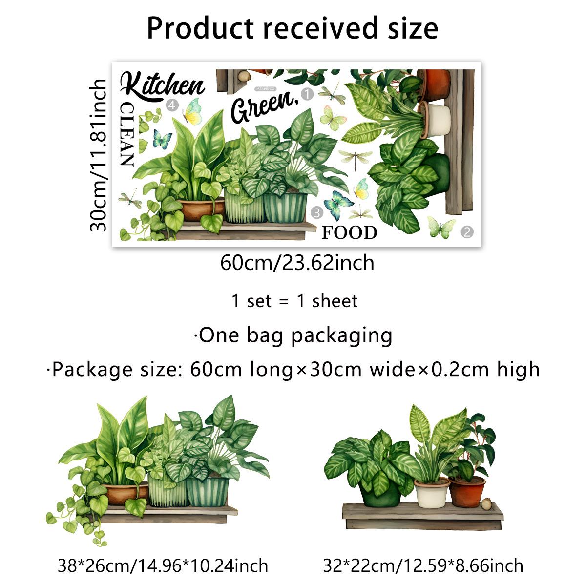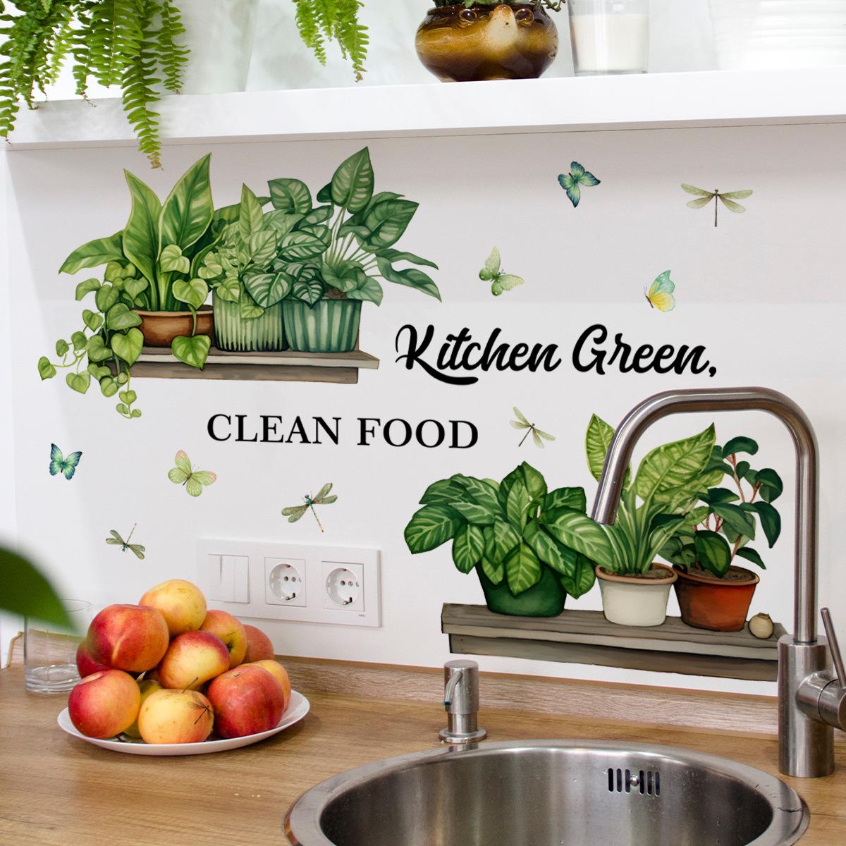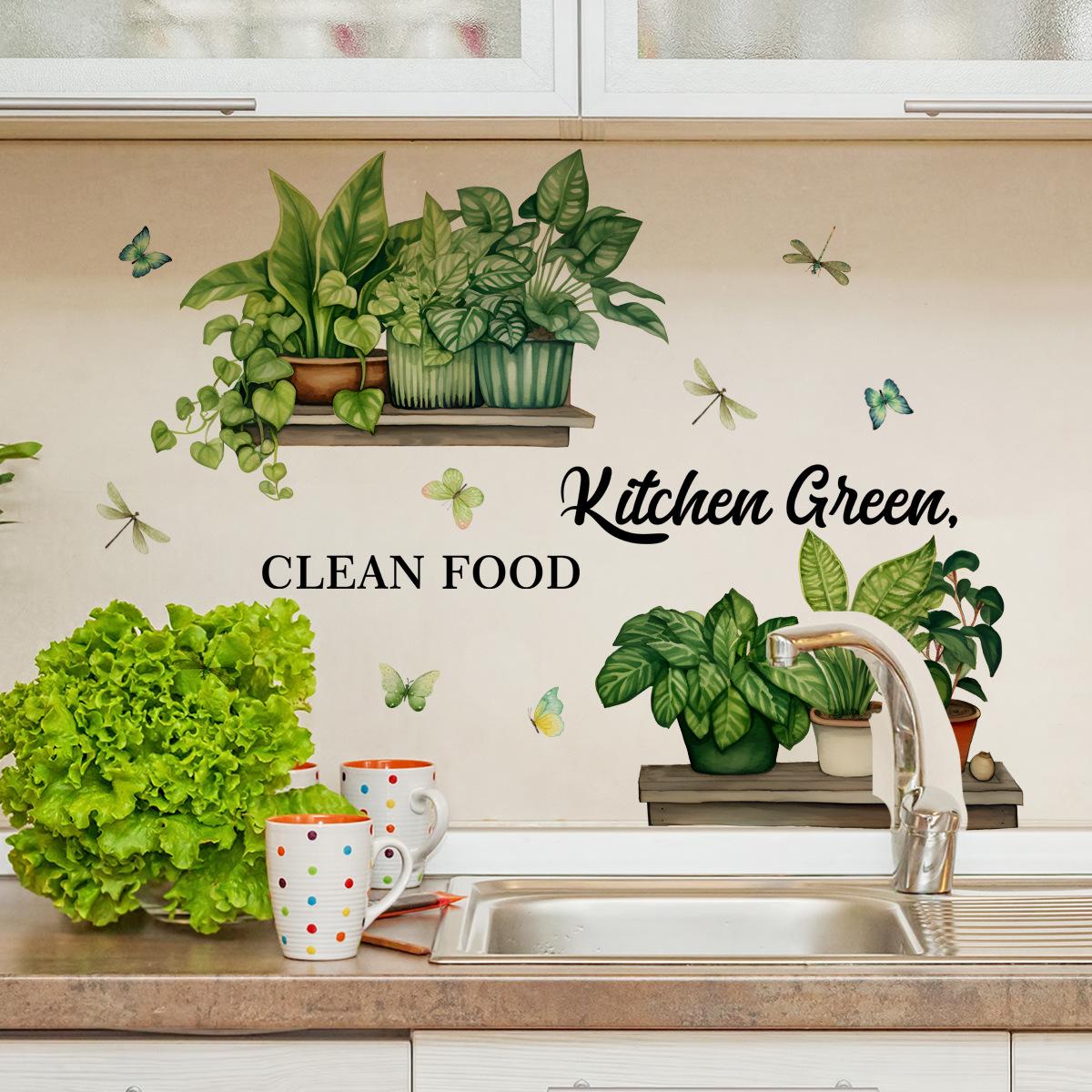 MS2495 Cocina inglesa Planta verde Planta en maceta Pegatinas de pared Fondo Pared Cocina Pegatinas de pared decorativas Pegatinas de pared autoadhesivas