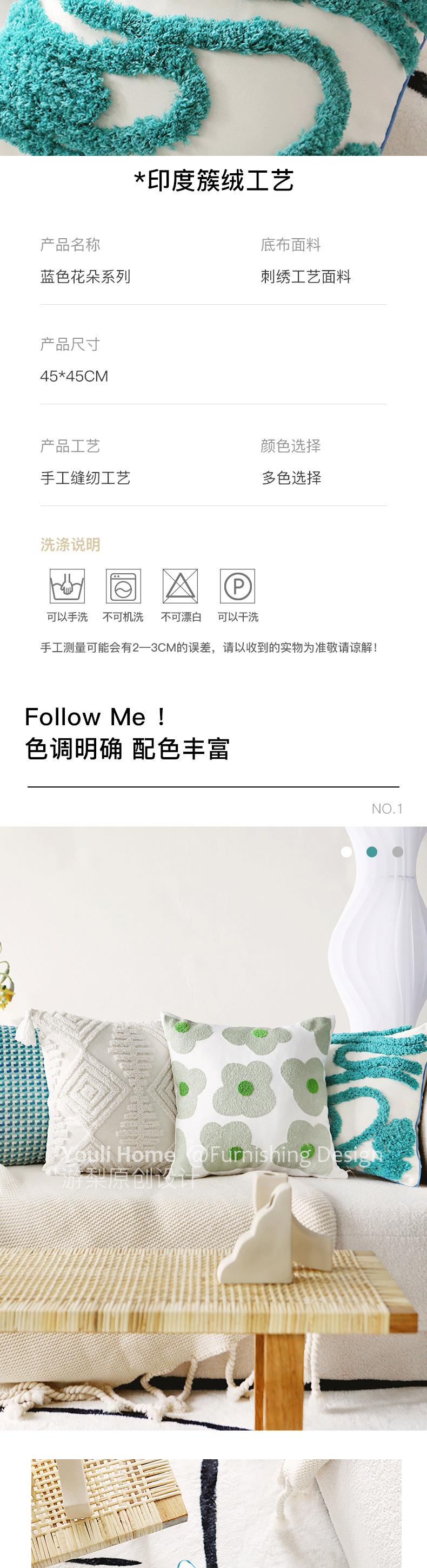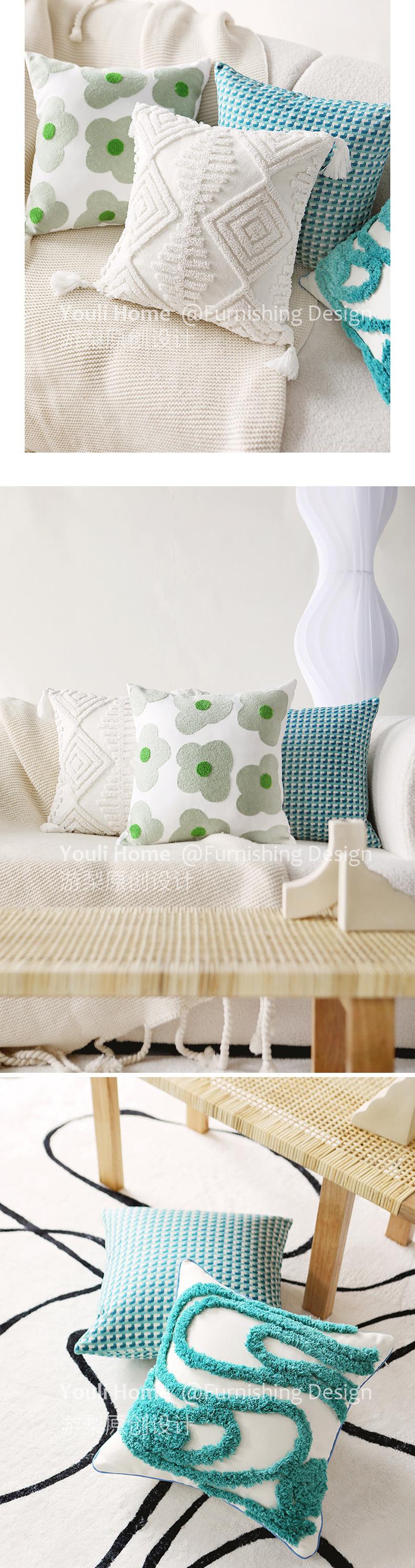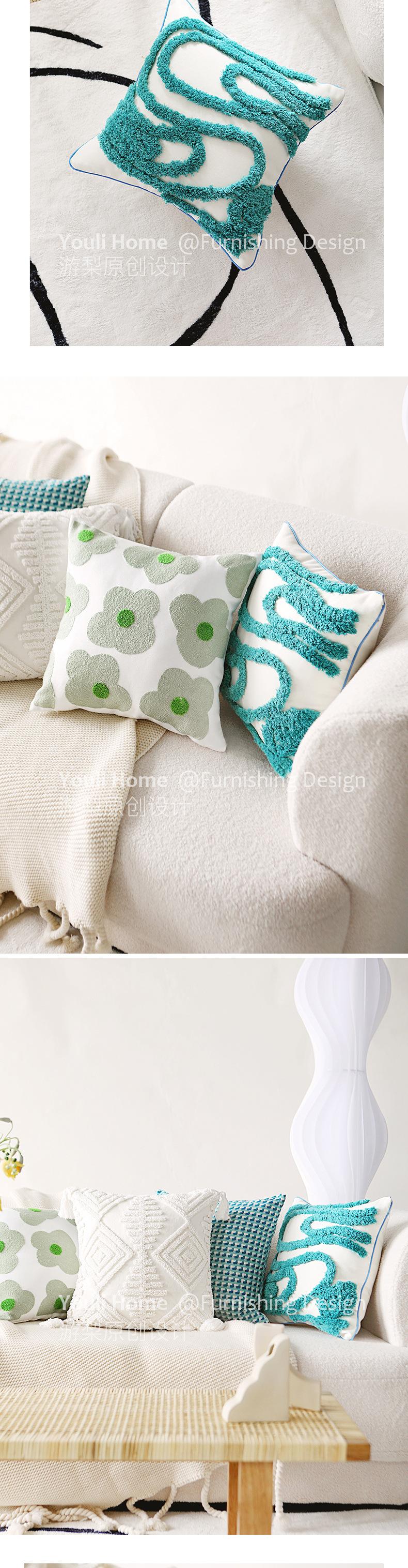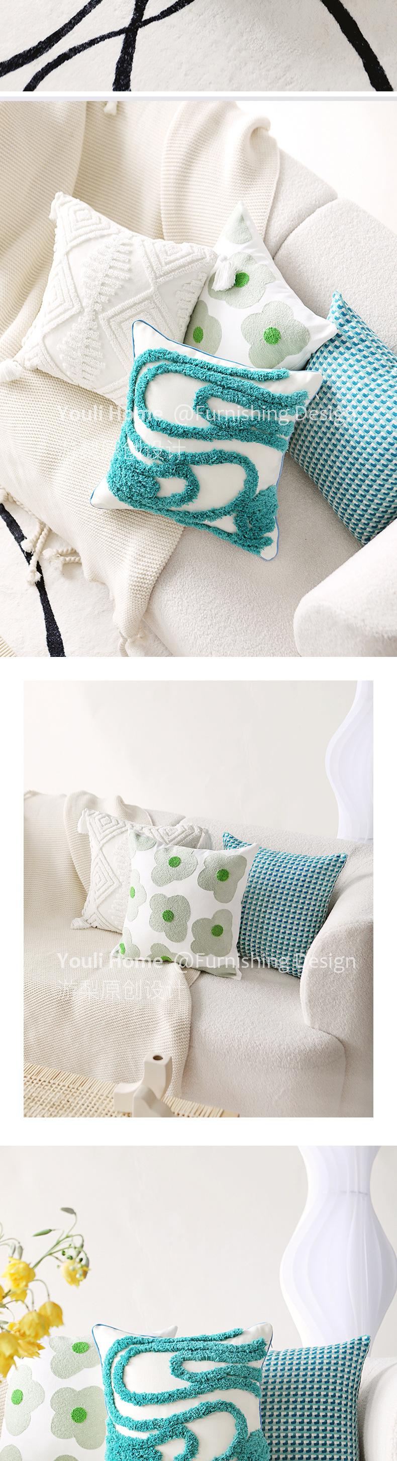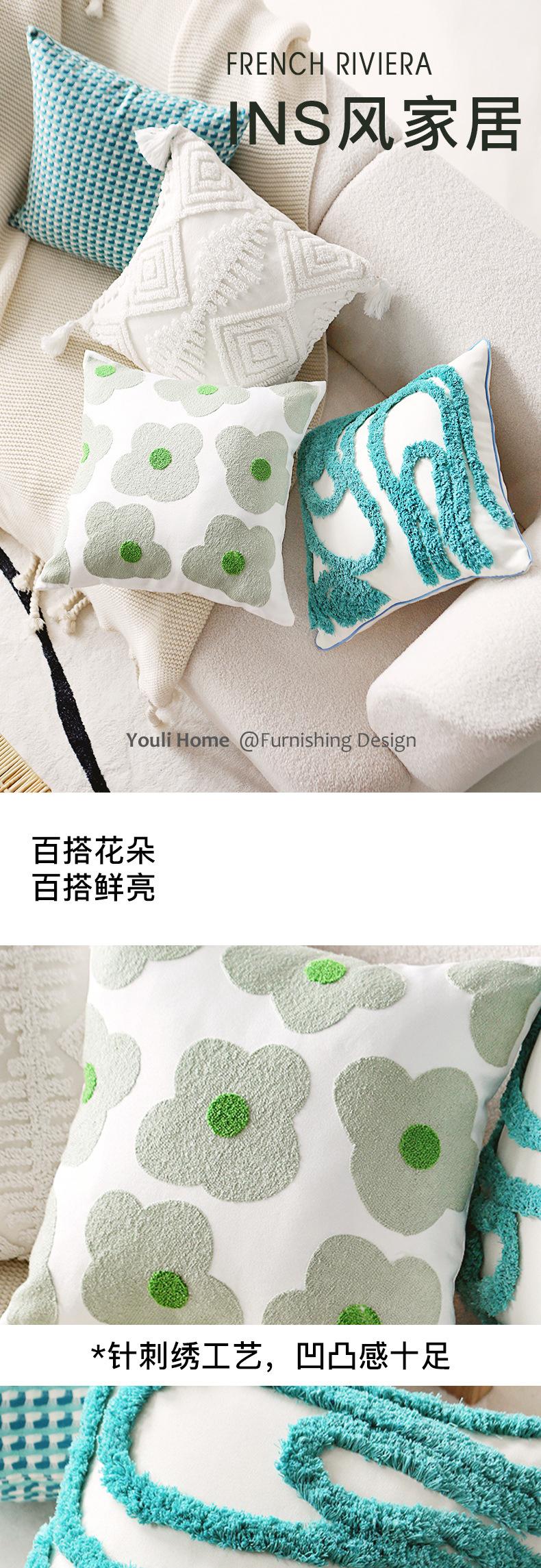 Funda de Almohada Verde Linda Flor Estilo ins Cojín Moderno Simple Sofá Cojín Sala de Estar Cojín Cama Cojín de Respaldo