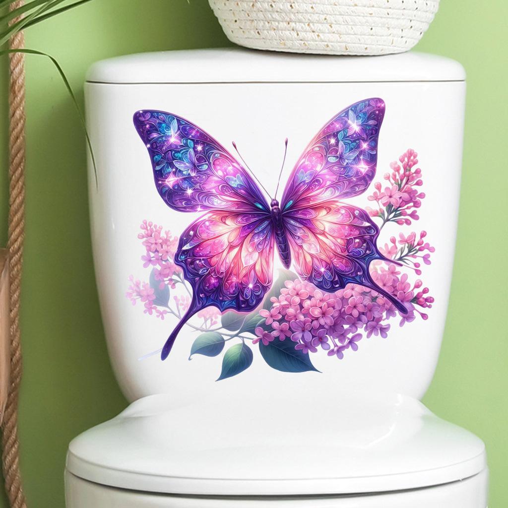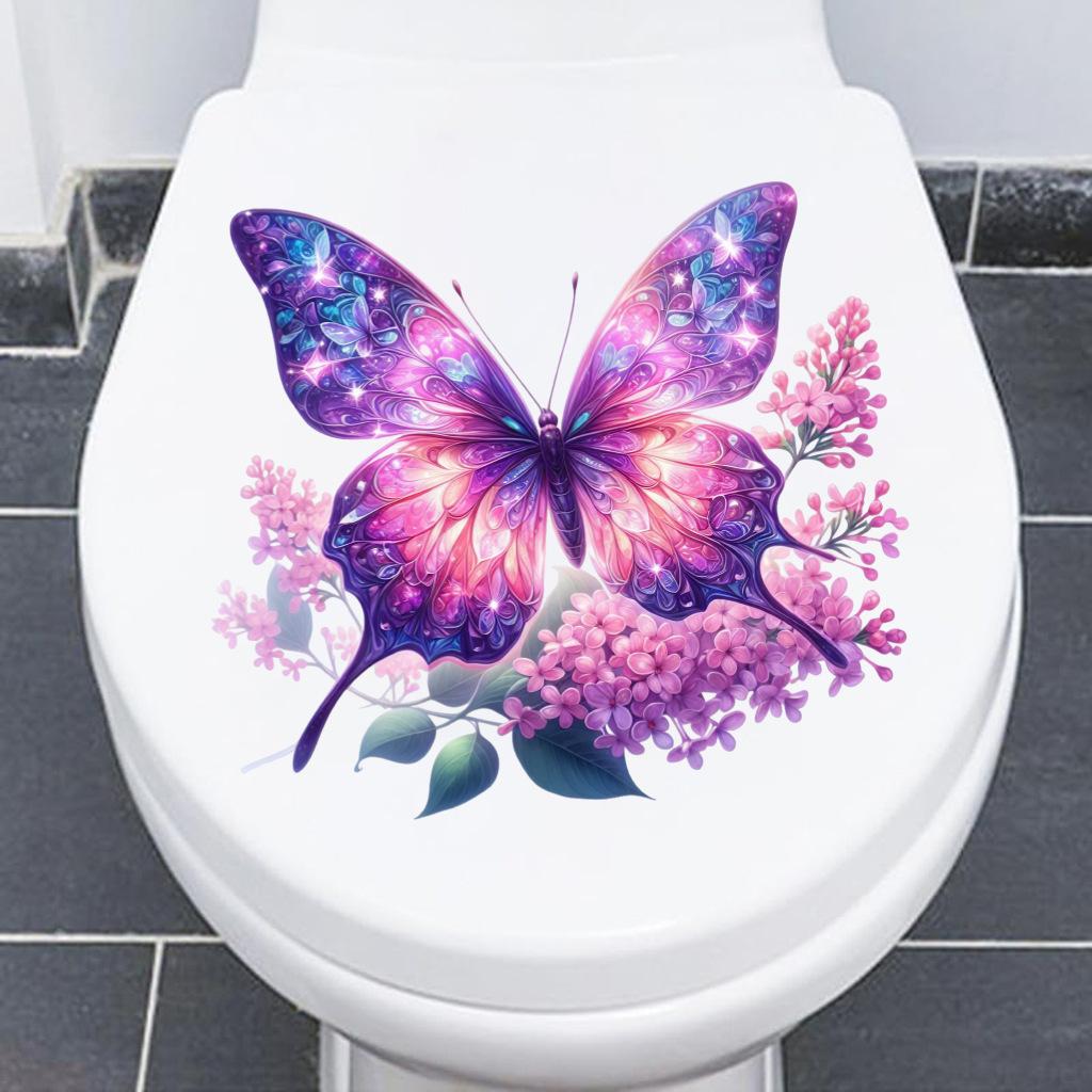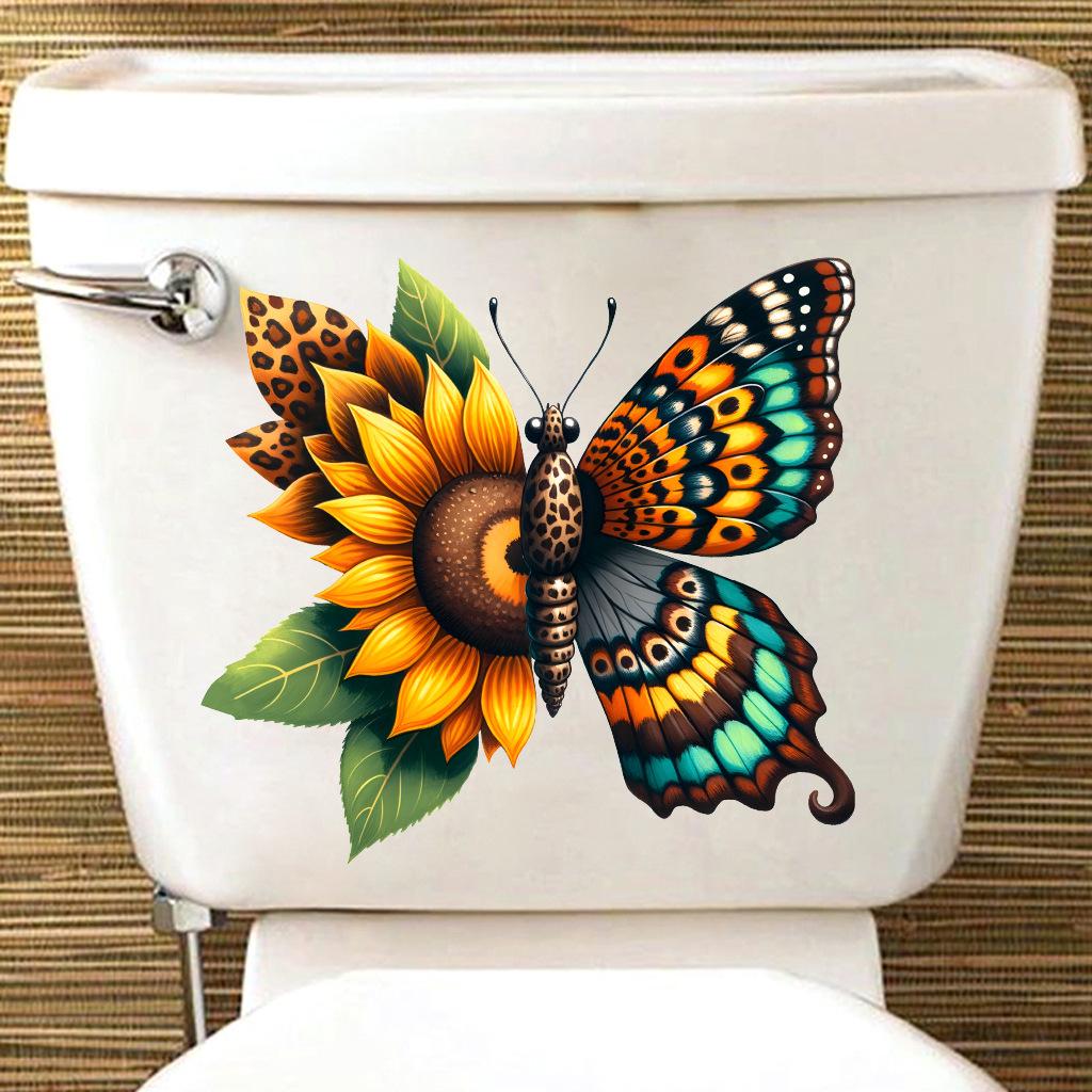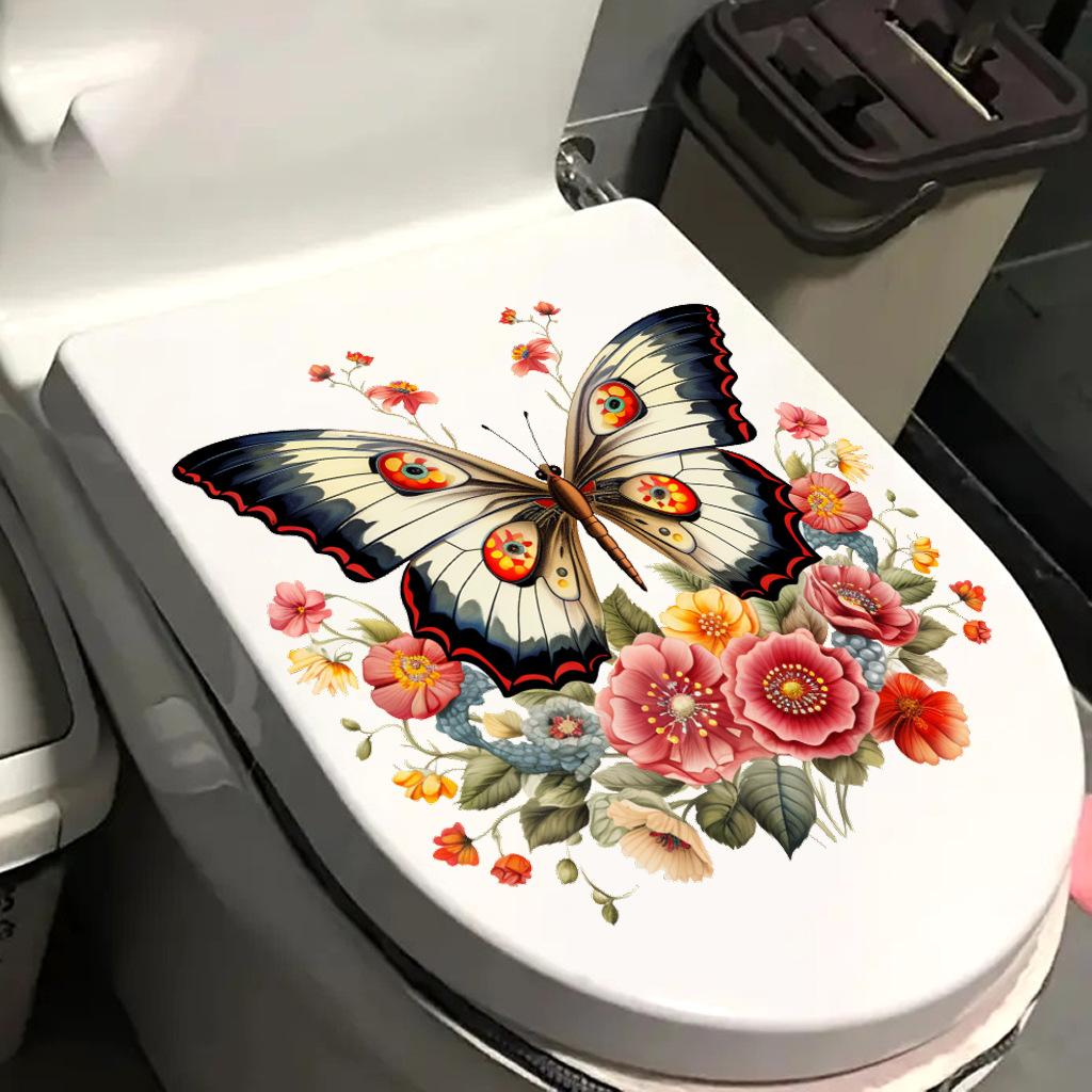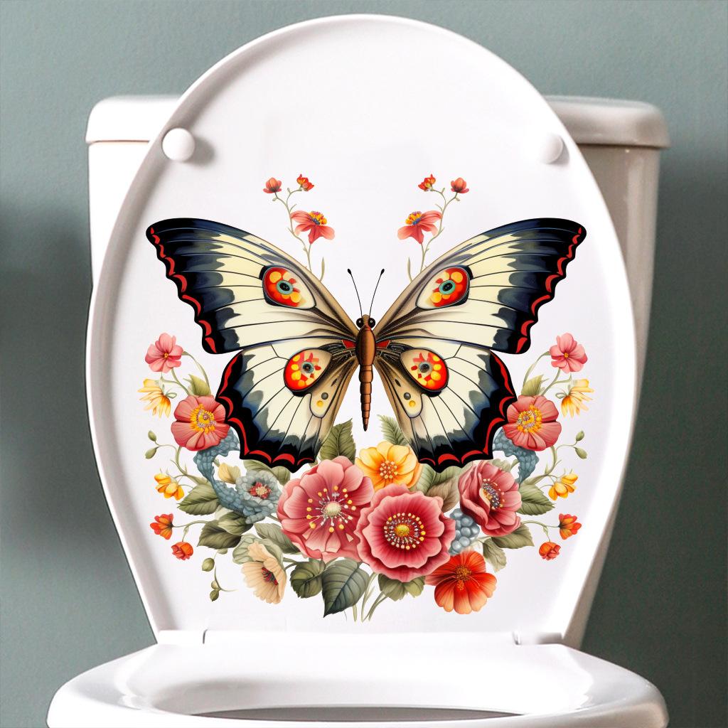 Ofer Nueva pegatina nórdica de PVC para inodoro con diseño de mariposas coloridas CH, pegatina decorativa para pared de inodoro con borde cruzado de colores
