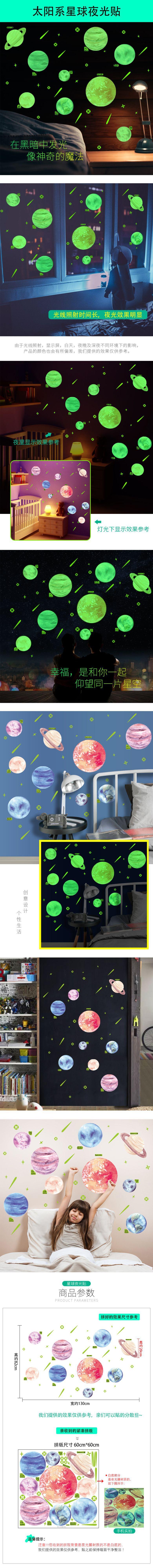 Fabricante de Calcomanías de Pared Venta al por Mayor Calcomanías de Pared Luminosas Nueve Planetas Luminosos Calcomanías de Pared Decorativas para Dormitorio Sk66007