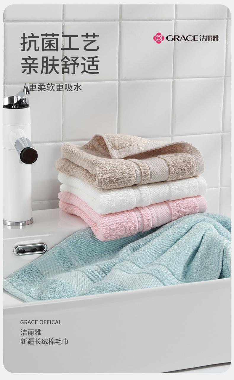 Toalla antibacteriana Jieliya 7264 de algodón puro para adultos, absorbente, gruesa, suave, toalla facial de algodón, venta al por mayor de algodón Xinjiang
