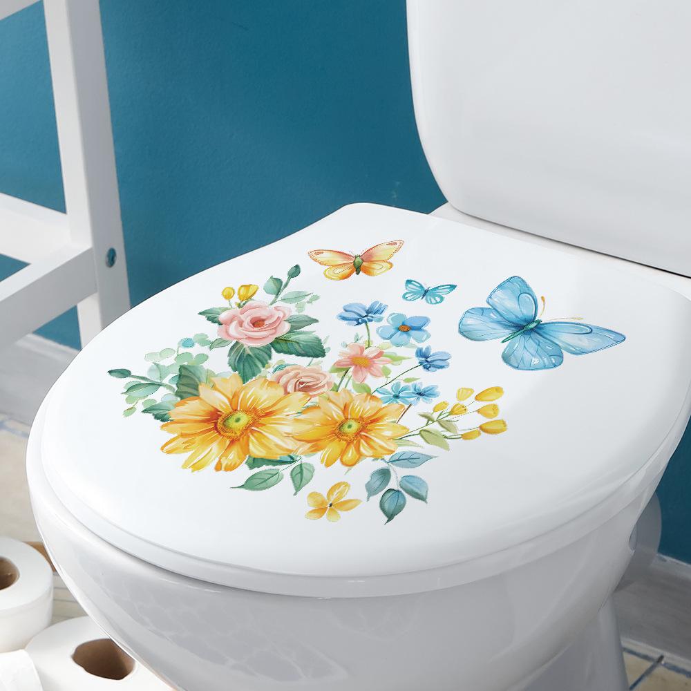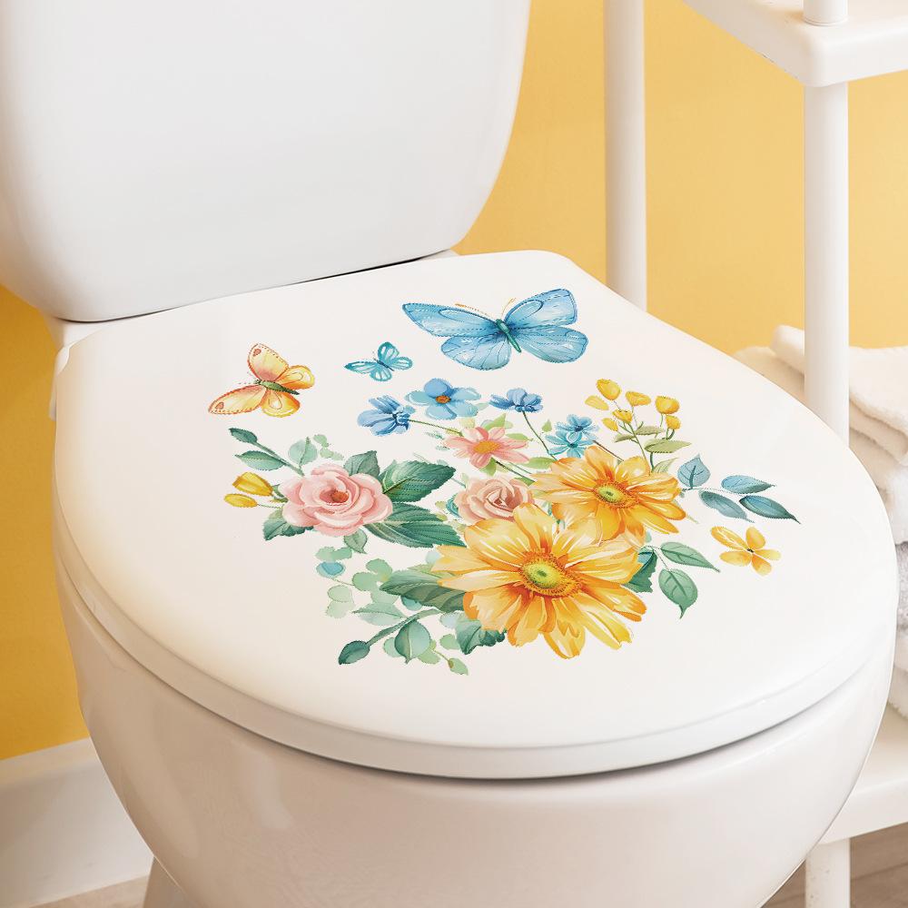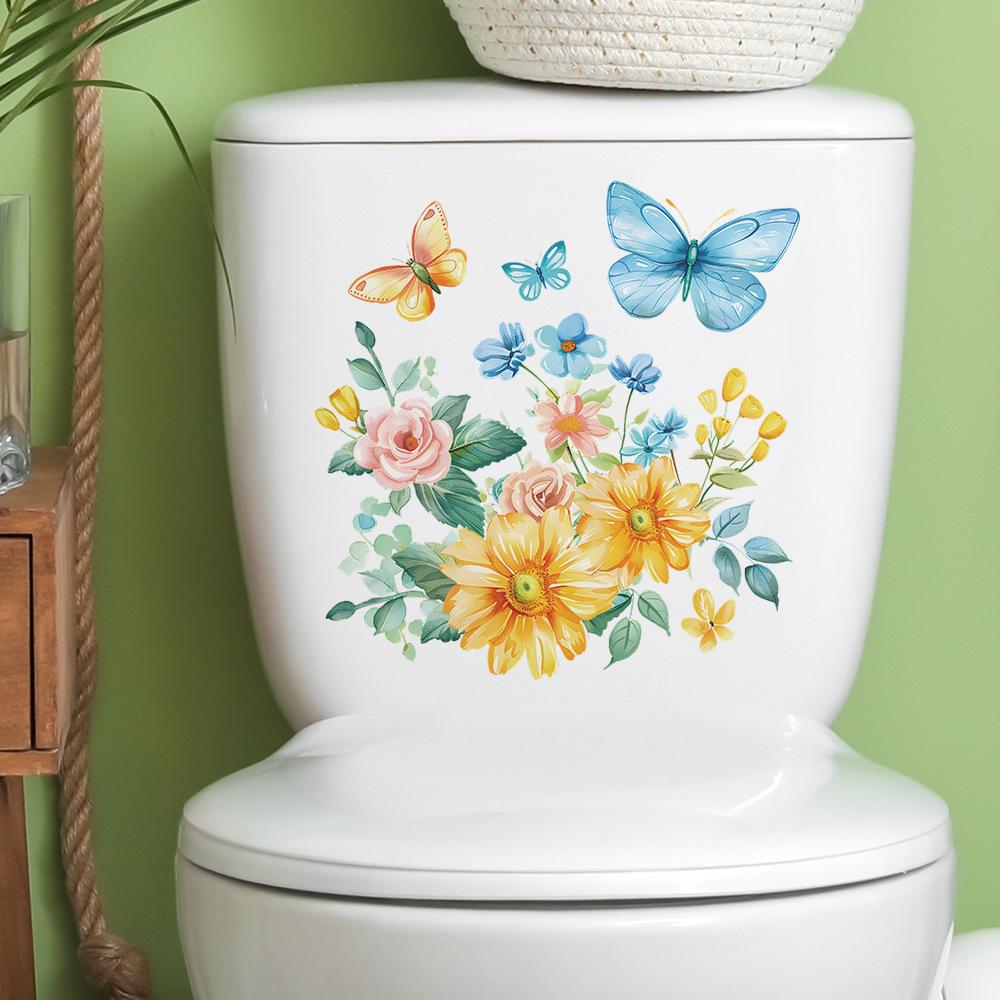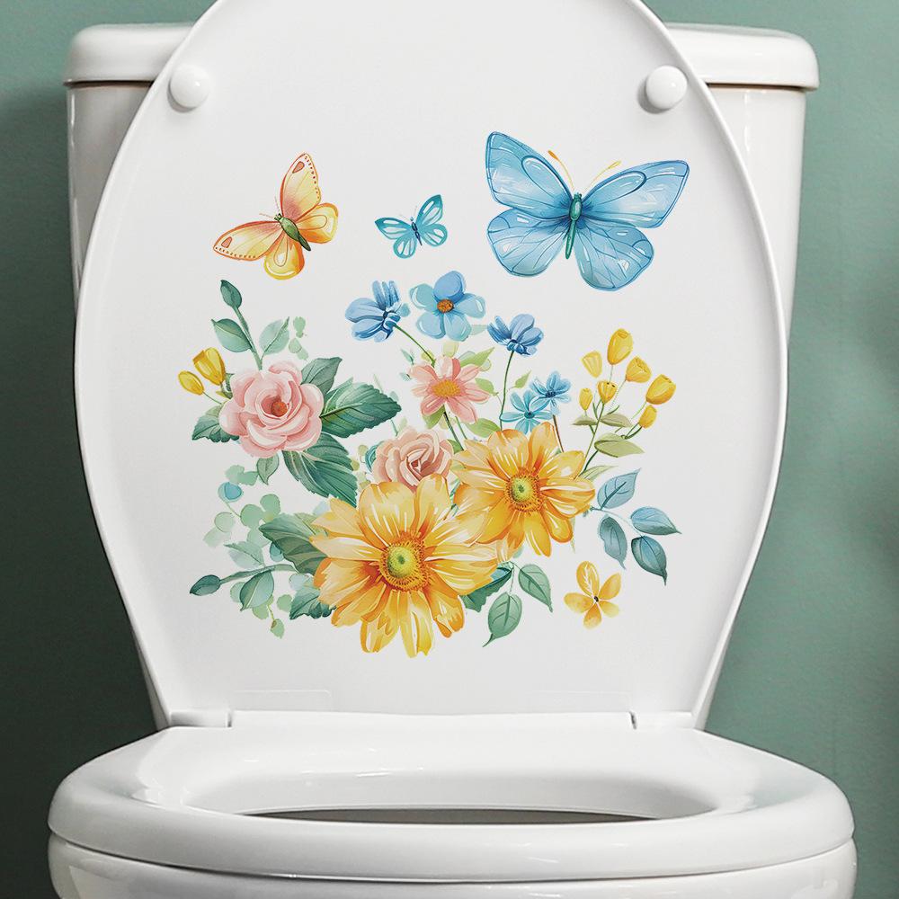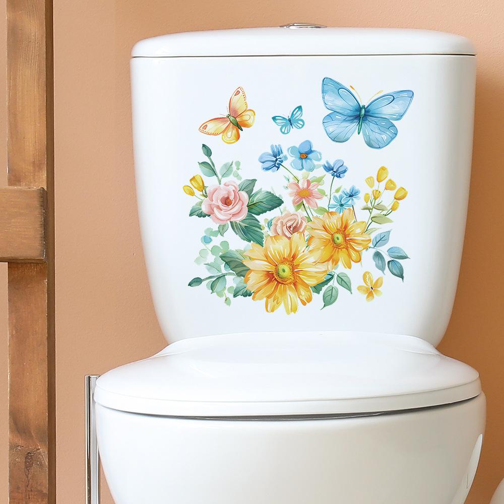 Nuevos MG-M008 flores pintadas mariposa pegatinas para inodoro baño baño embellecimiento pegatinas de pared al por mayor