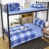 Juego de cama de algodón de tres piezas para dormitorio universitario, simple, a cuadros, para estudiantes, con funda de edredón para cama individual y cama inferior.