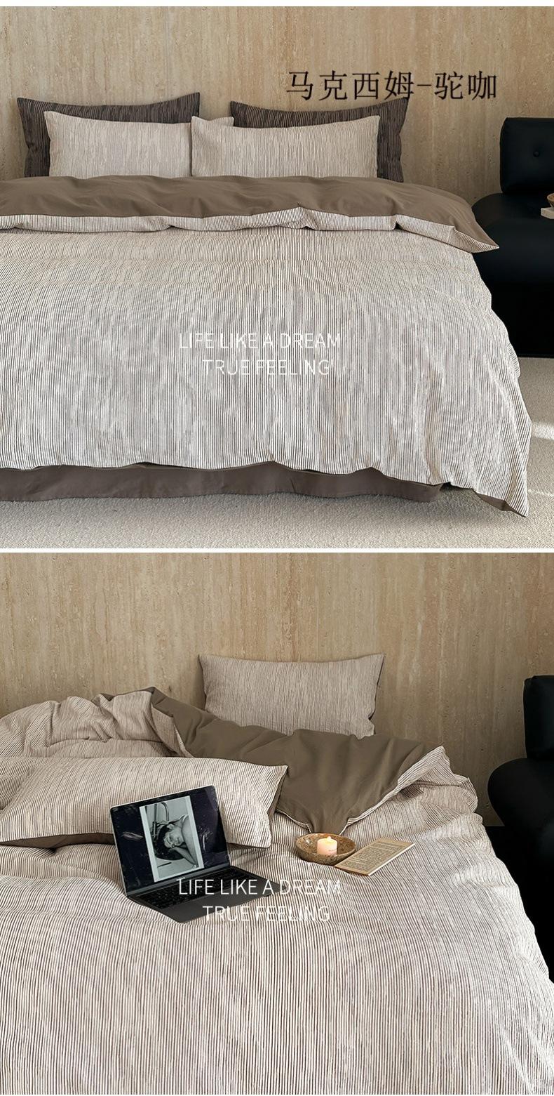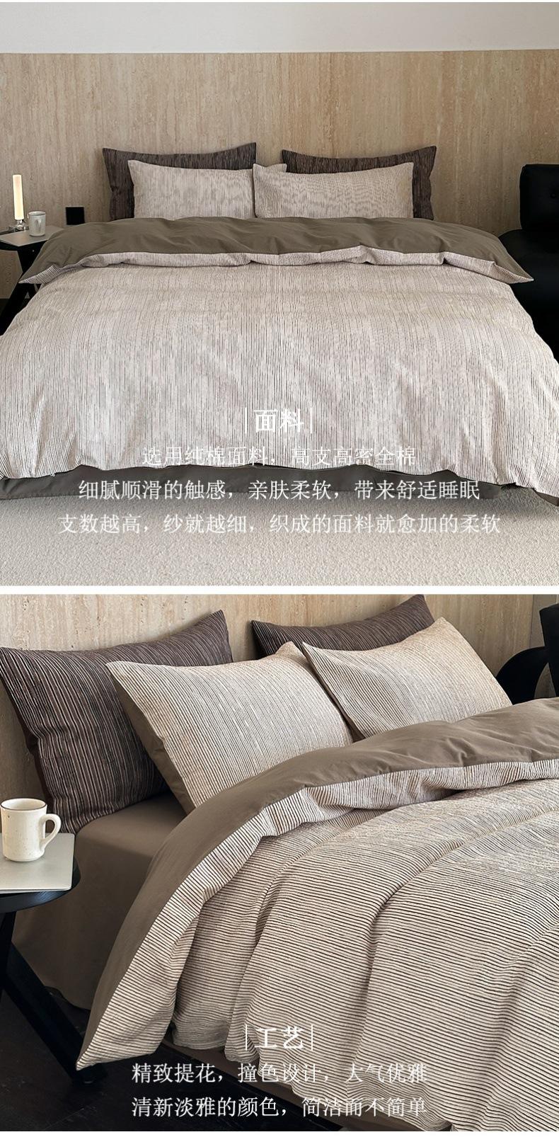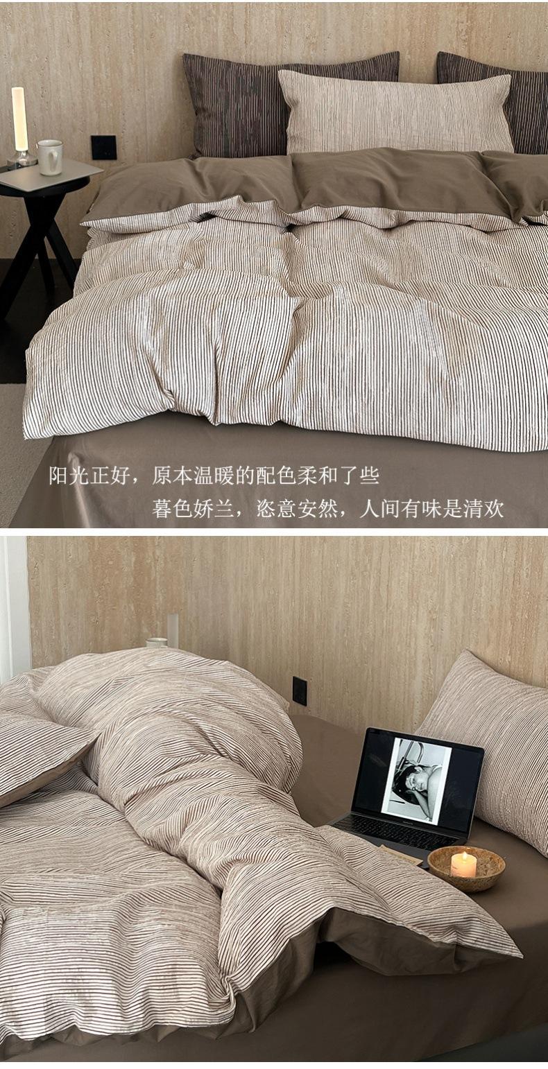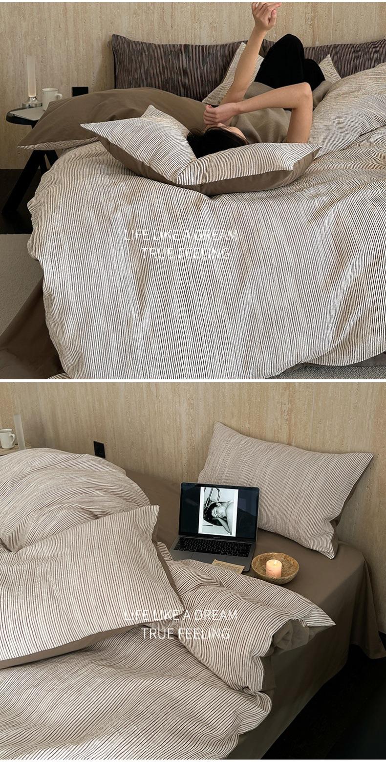 Estilo Simple Juego de Sábanas de Algodón Puro de Alta Calidad de Cuatro Piezas Color de Contraste Cubre Edredón Japonés Ropa de Cama Cómoda 1.8m