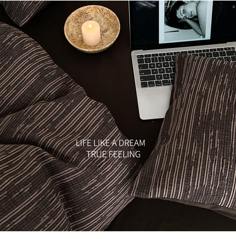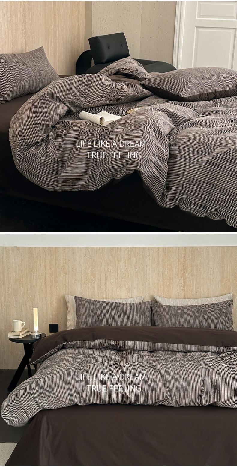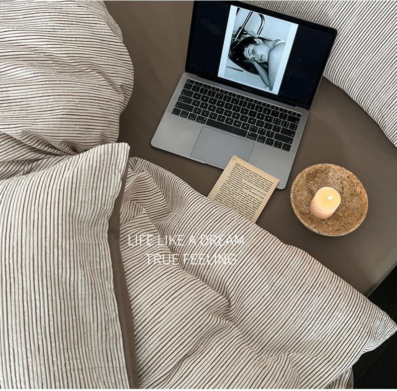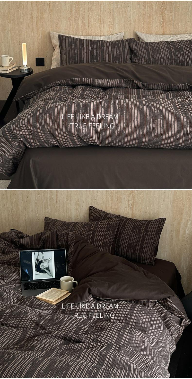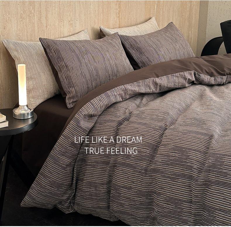 Estilo Simple Juego de Sábanas de Algodón Puro de Alta Calidad de Cuatro Piezas Color de Contraste Cubre Edredón Japonés Ropa de Cama Cómoda 1.8m