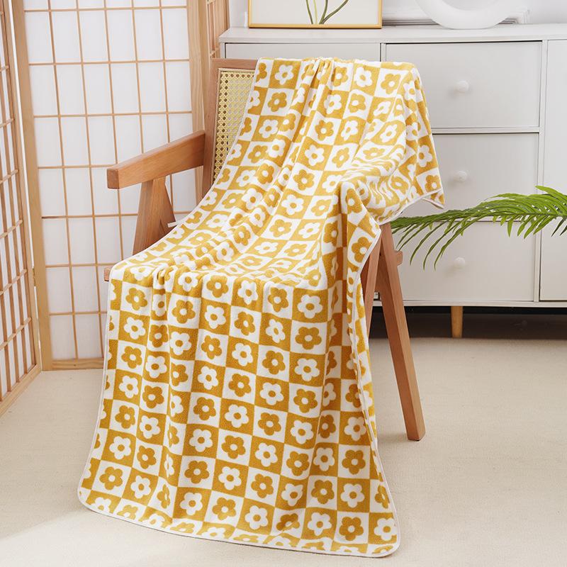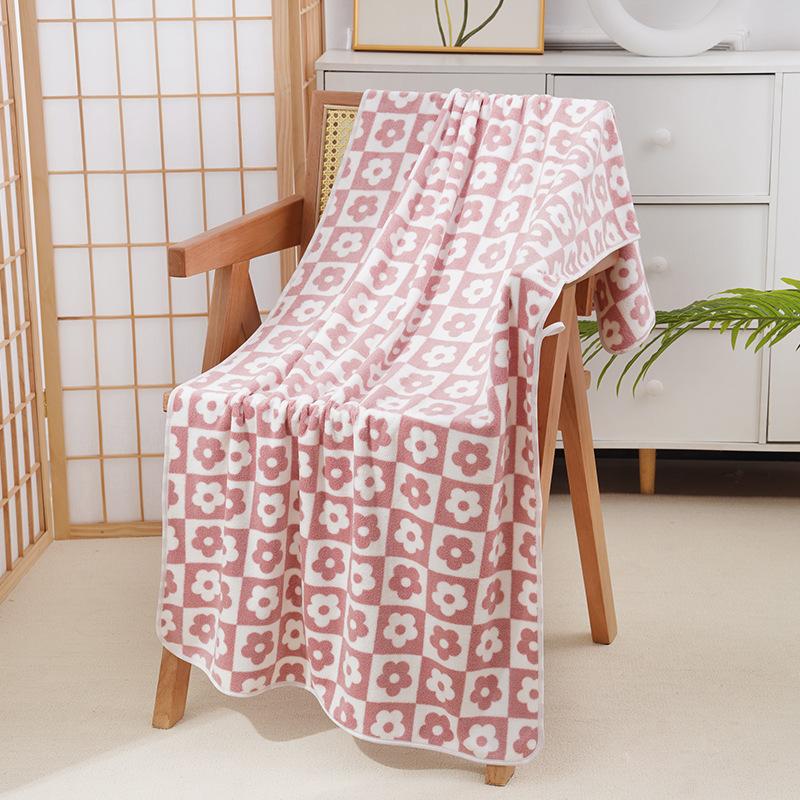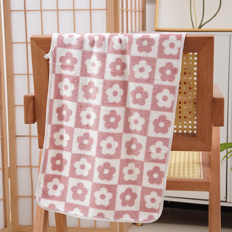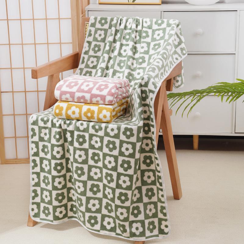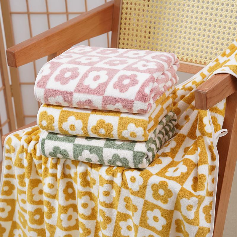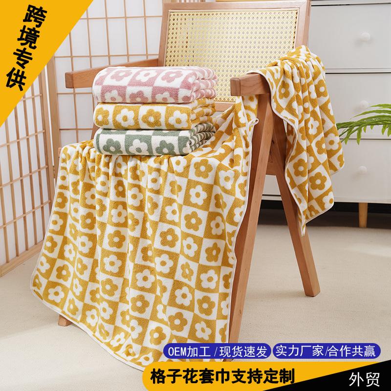 Toalla de Terciopelo Coral con Estampado de Cuadros Juego de Toallas de Baño Suave Absorbente Toalla Gaoyang Suministro Transfronterizo de Verano