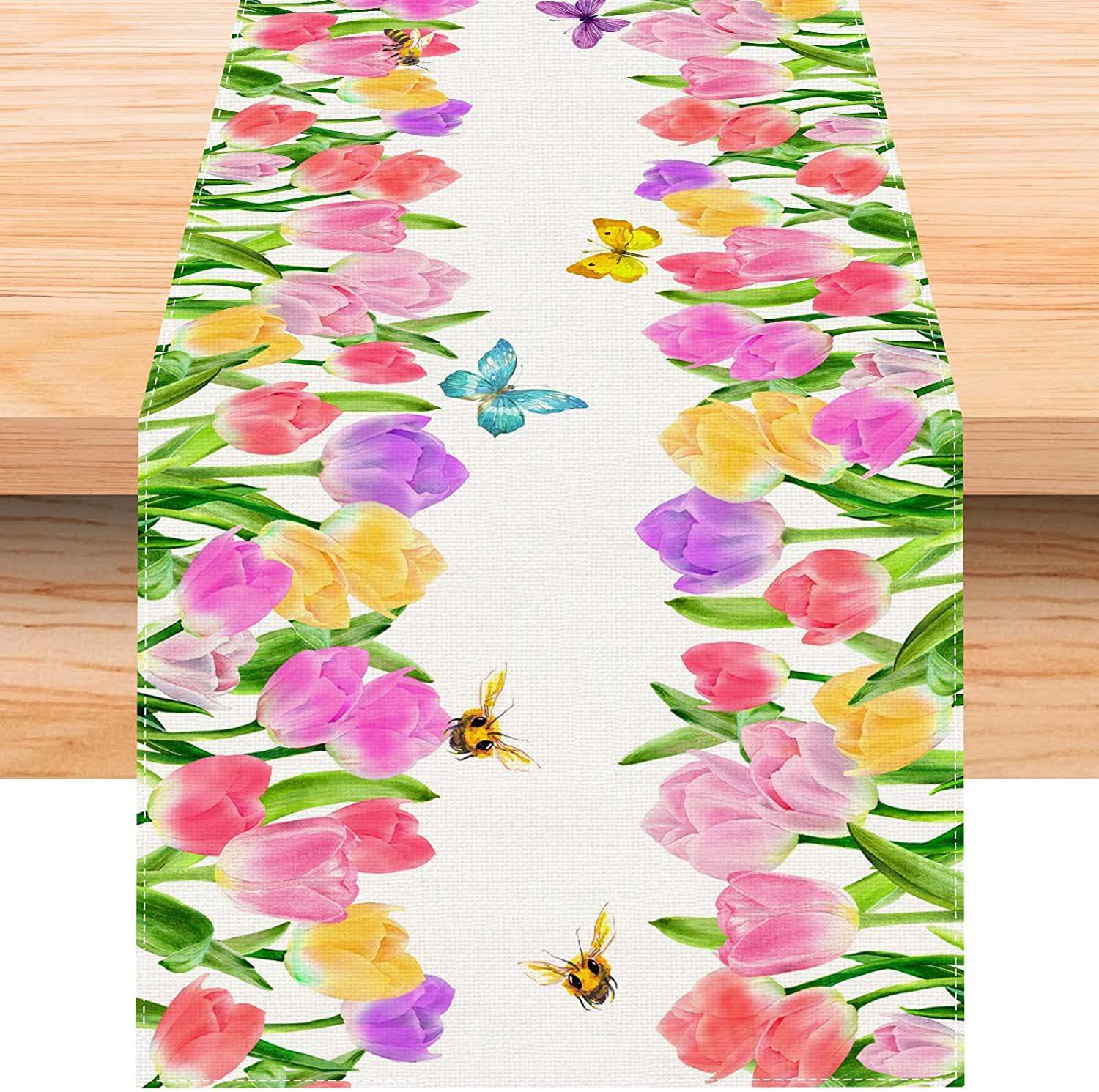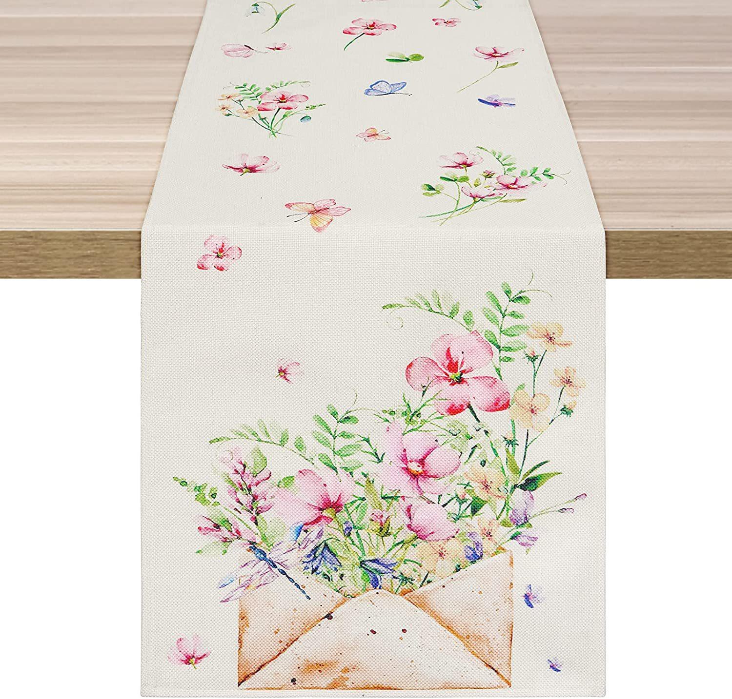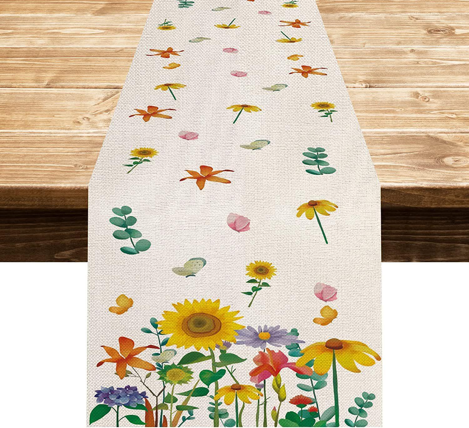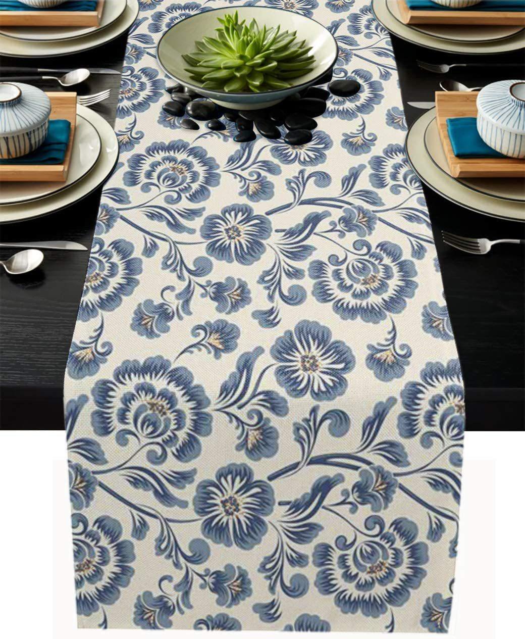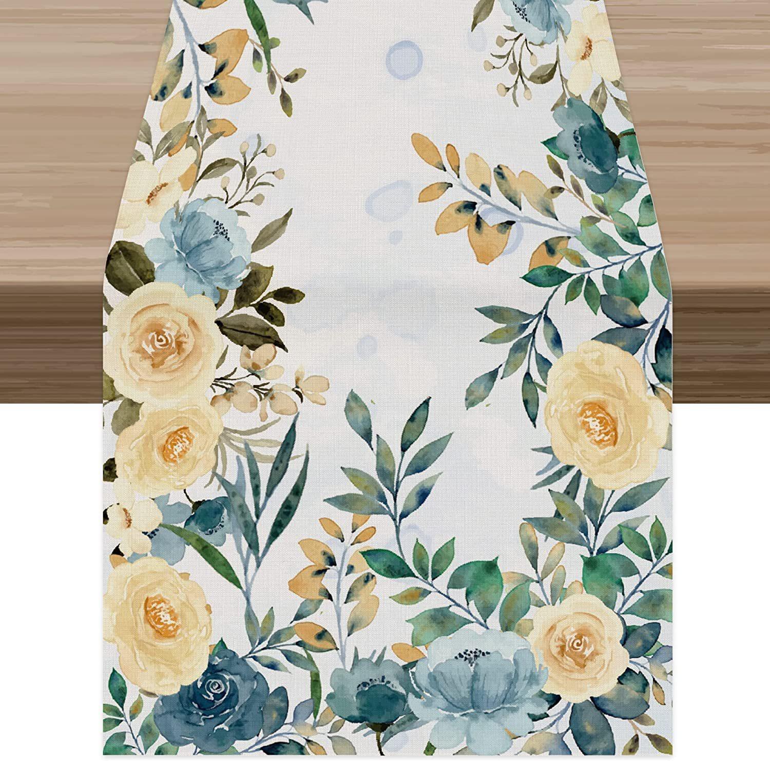 Camino de Mesa Lino Nuevo Color Pastoral Flores Primavera y Verano Camino de Mesa Decoración Hogar Exterior Restaurante Camino de Mesa Decorativo