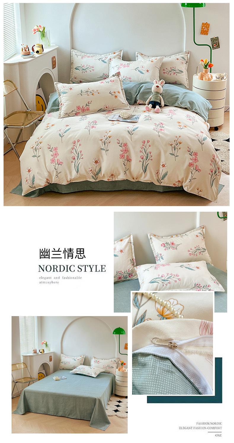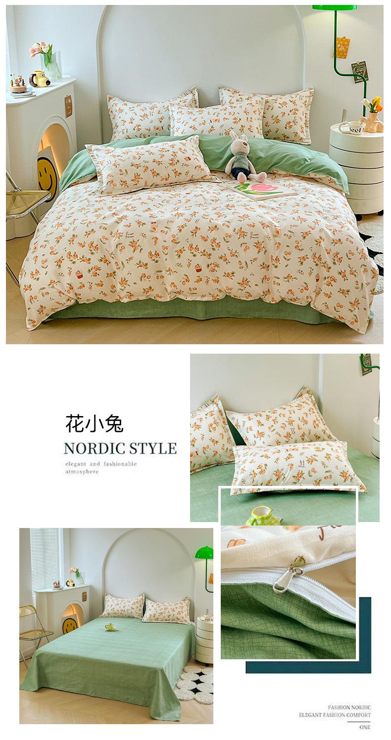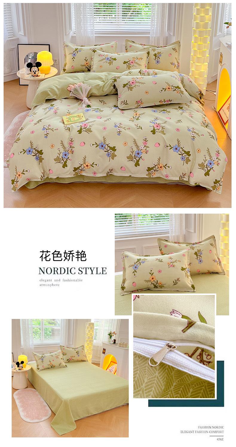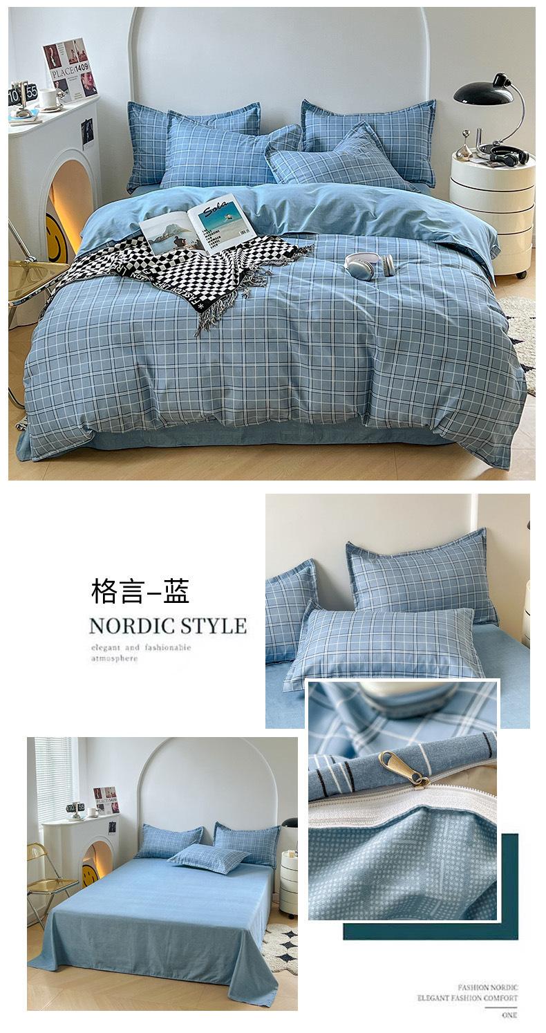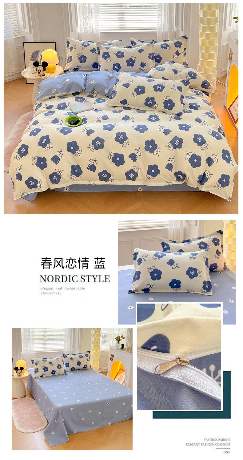 Juego de cuatro piezas de cama de algodón fresco cepillado, juego de tres piezas para dormitorio doméstico de funda nórdica y sábana bajera de algodón lavado engrosado, venta al por mayor