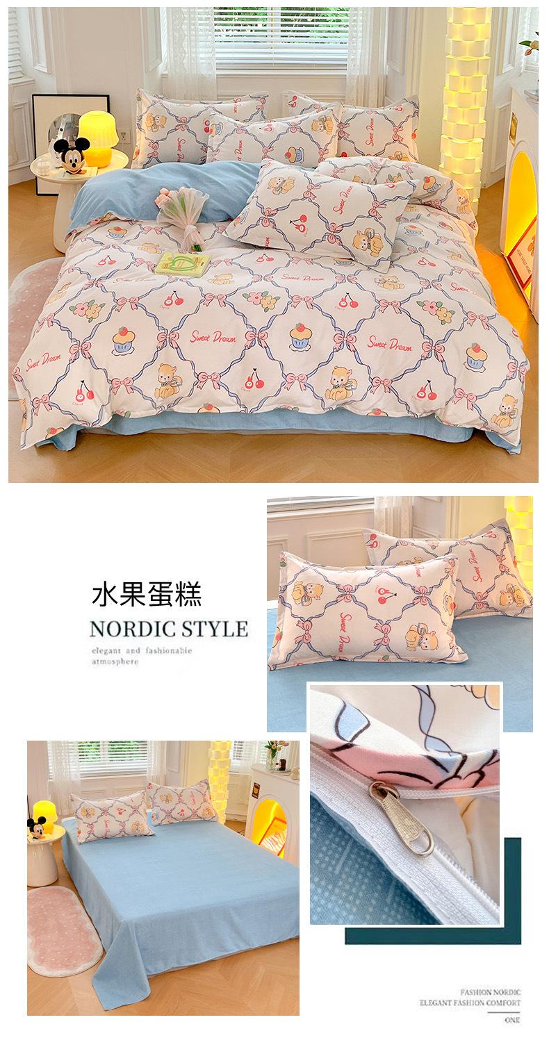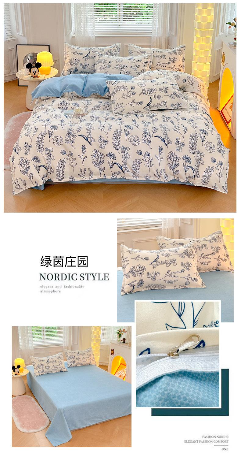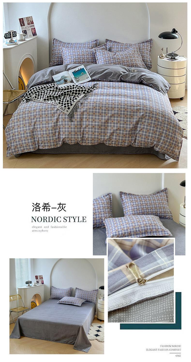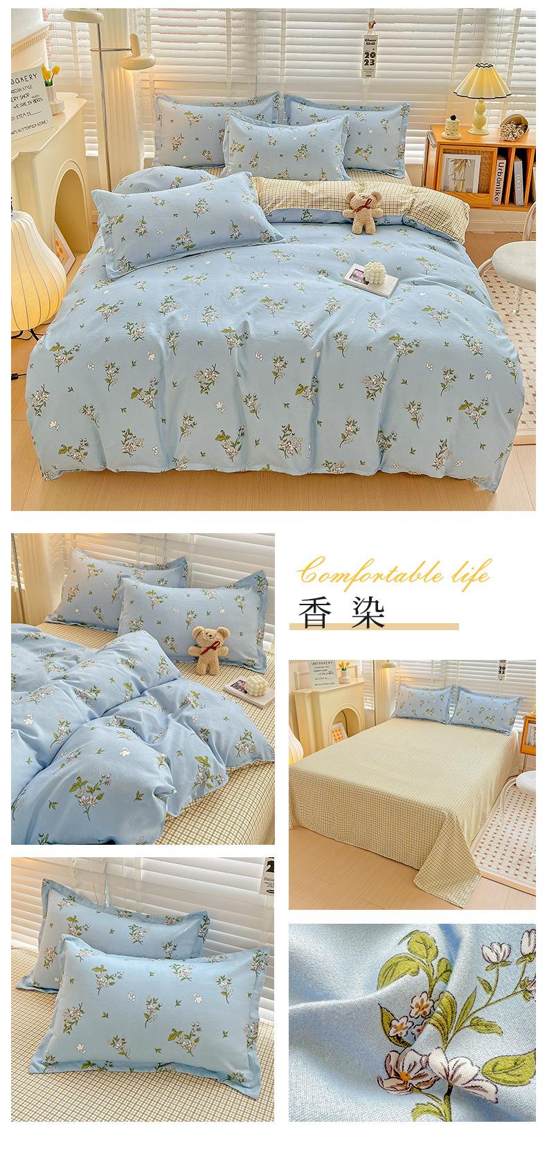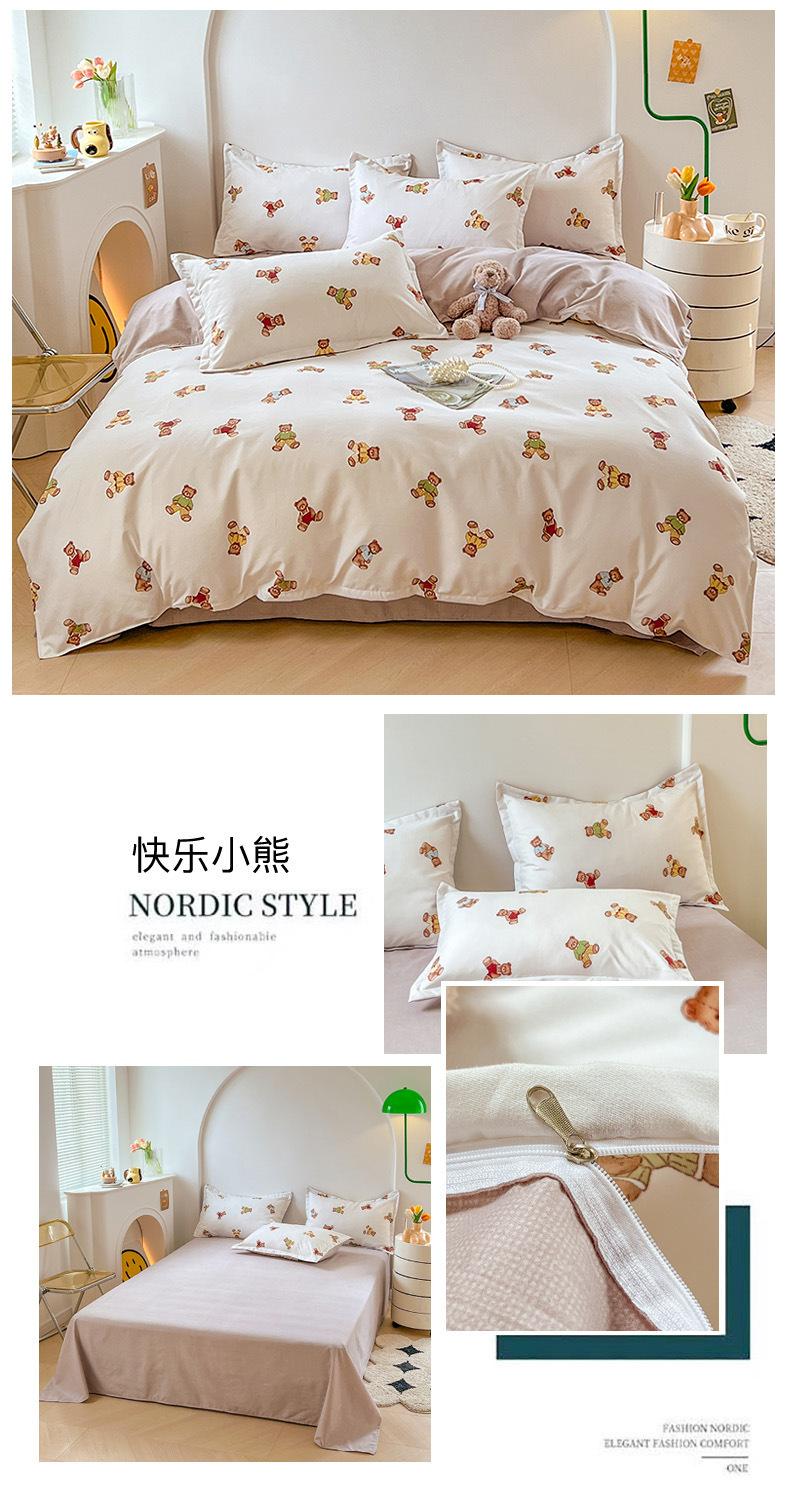 Juego de cuatro piezas de cama de algodón fresco cepillado, juego de tres piezas para dormitorio doméstico de funda nórdica y sábana bajera de algodón lavado engrosado, venta al por mayor