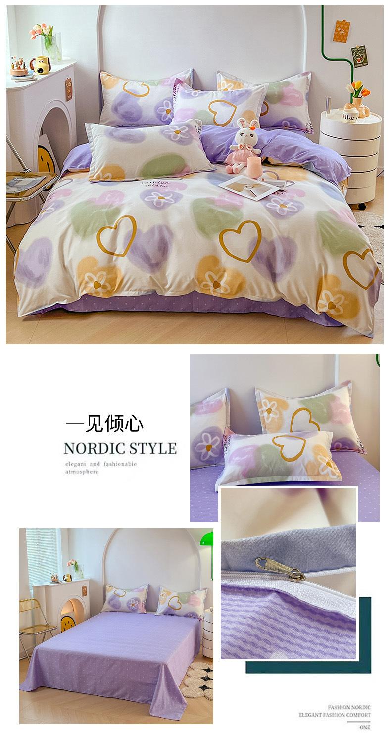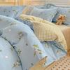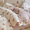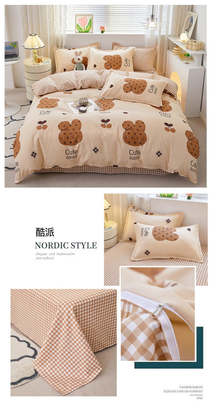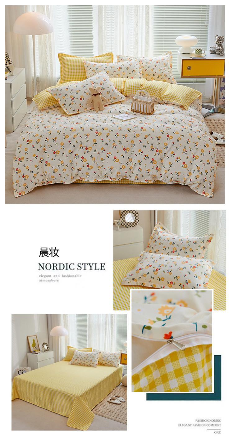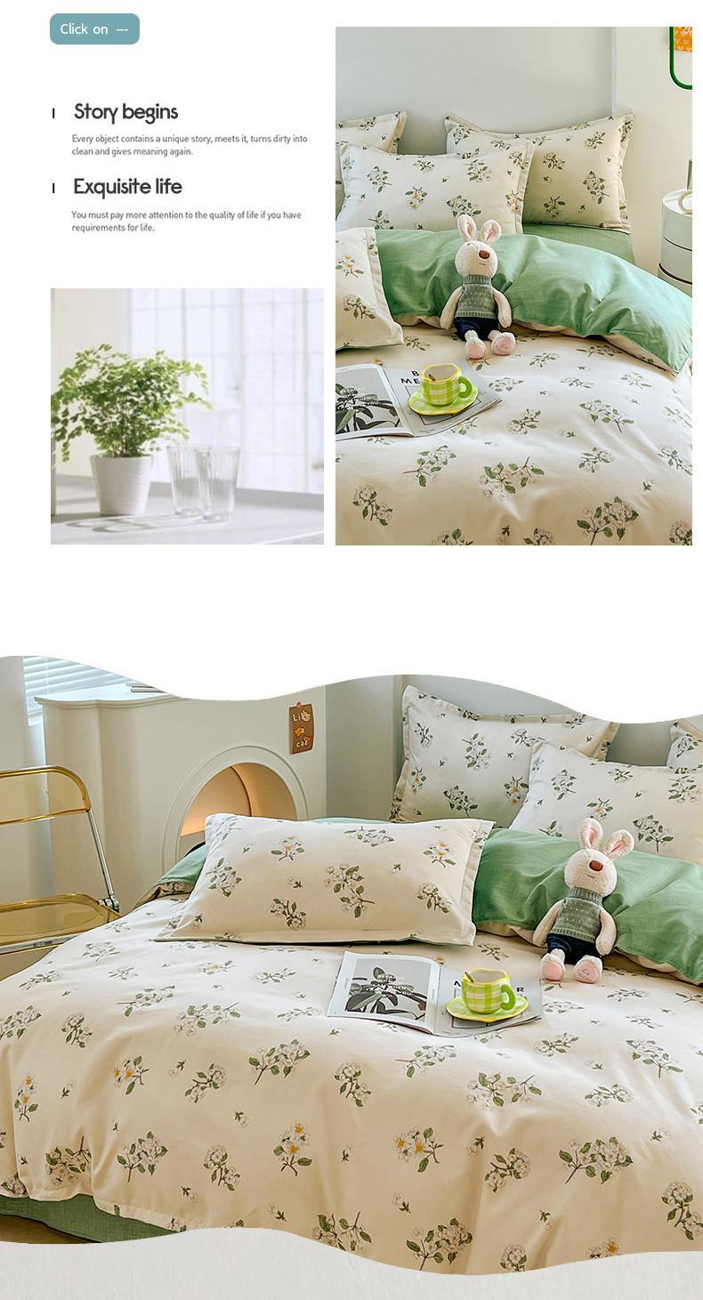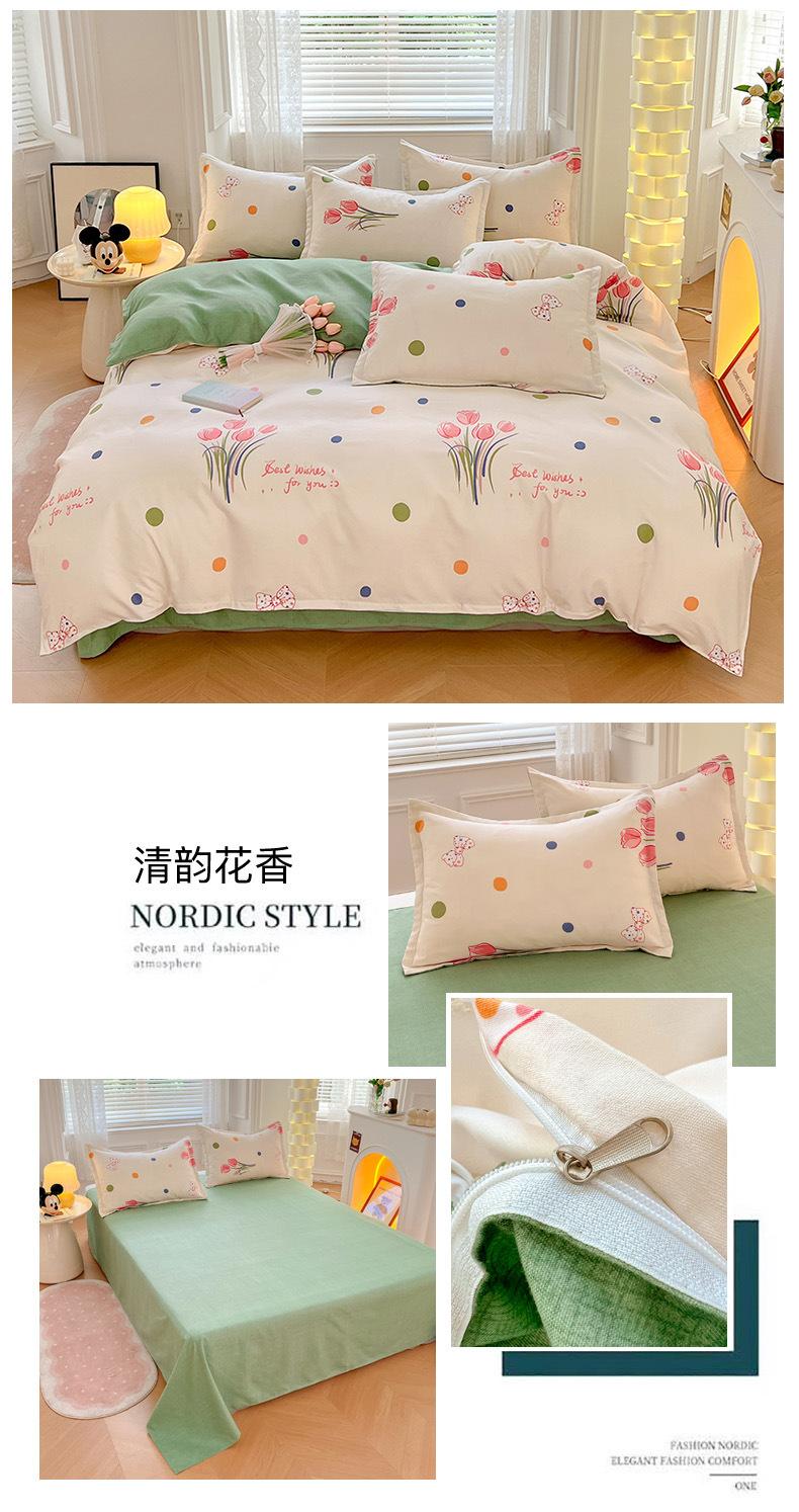 Juego de cuatro piezas de cama de algodón fresco cepillado, juego de tres piezas para dormitorio doméstico de funda nórdica y sábana bajera de algodón lavado engrosado, venta al por mayor