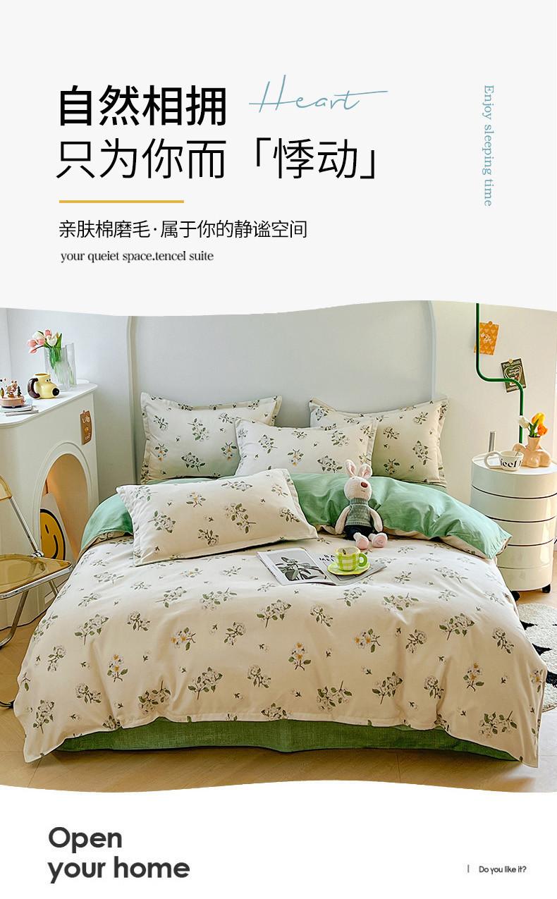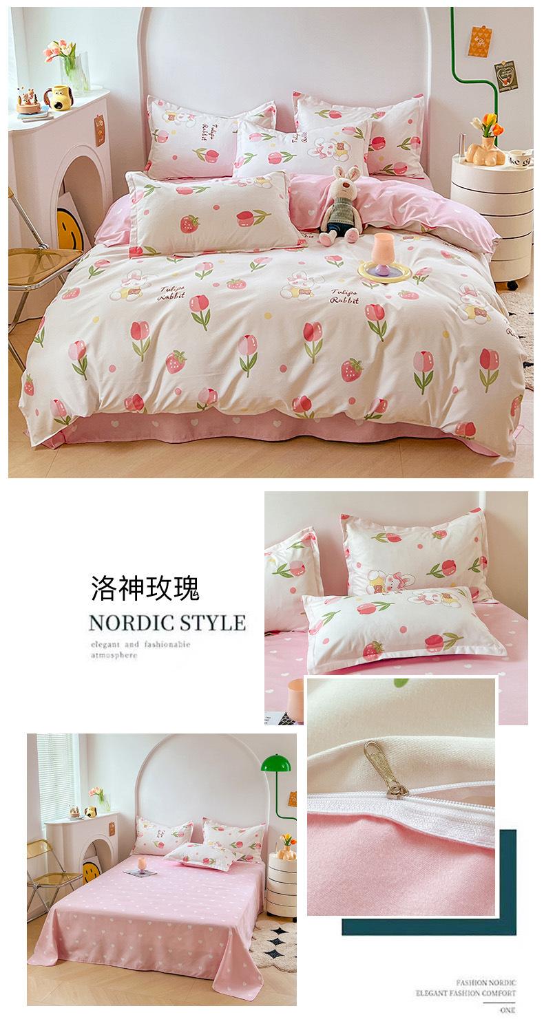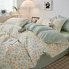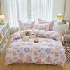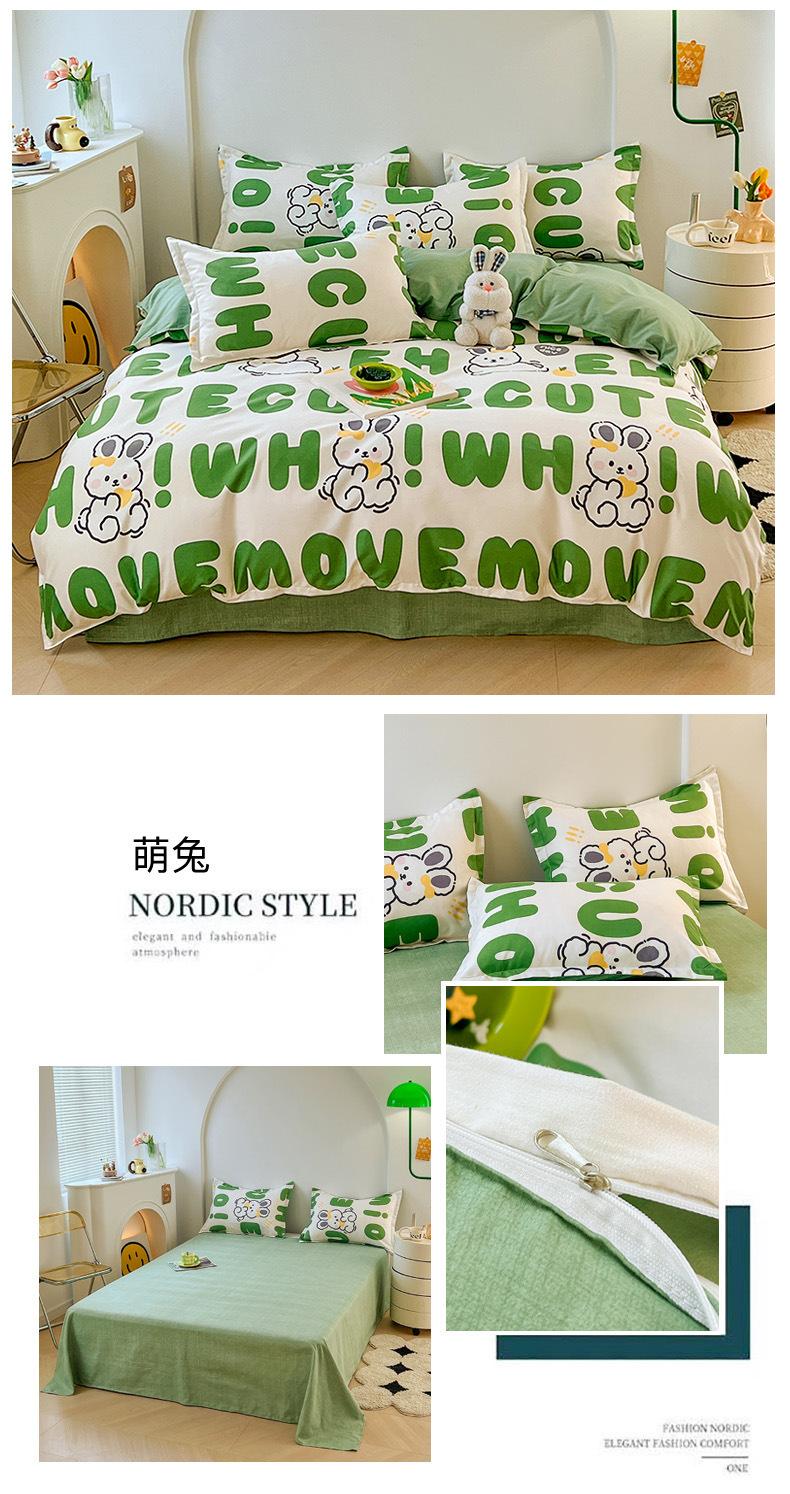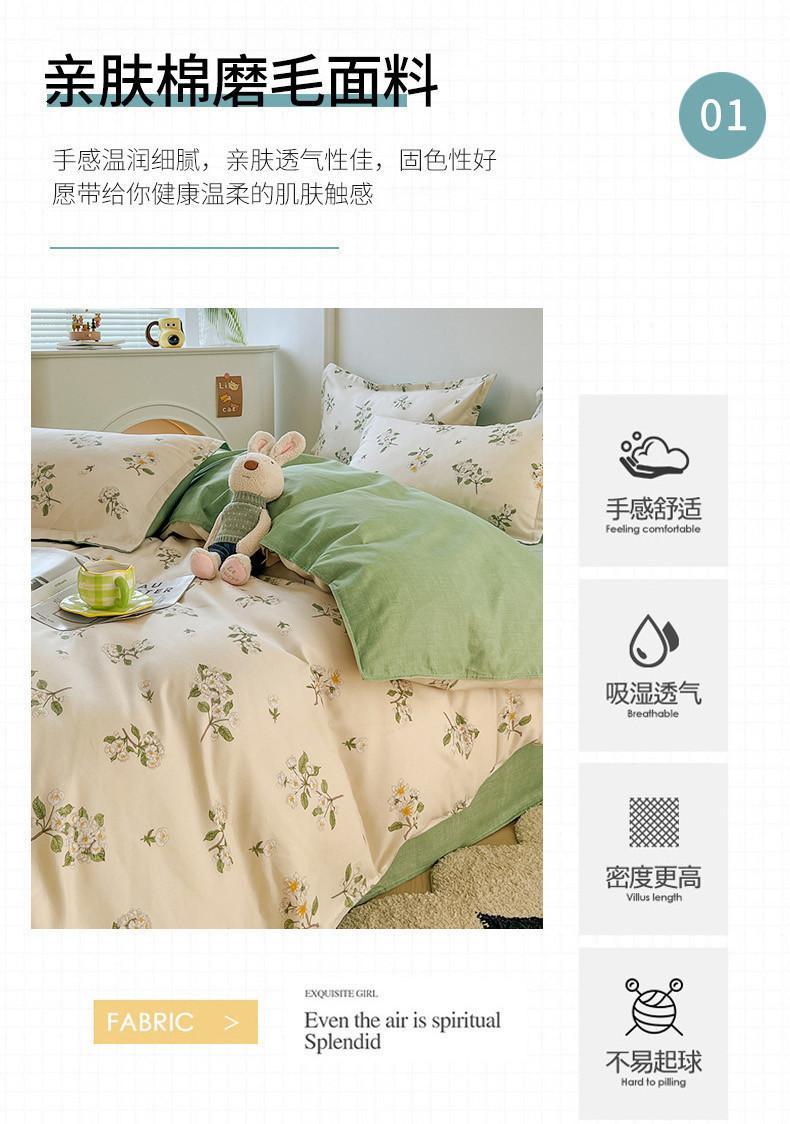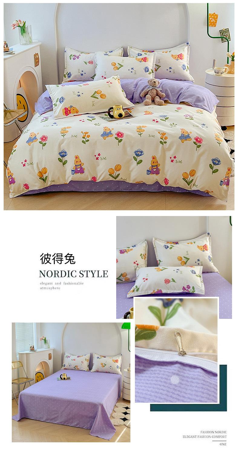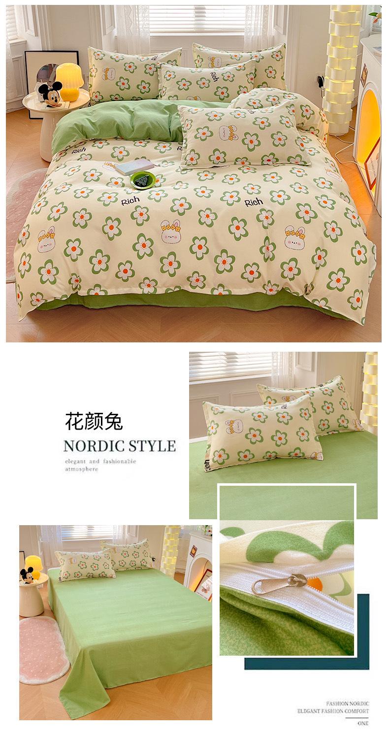 Juego de cuatro piezas de cama de algodón fresco cepillado, juego de tres piezas para dormitorio doméstico de funda nórdica y sábana bajera de algodón lavado engrosado, venta al por mayor