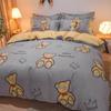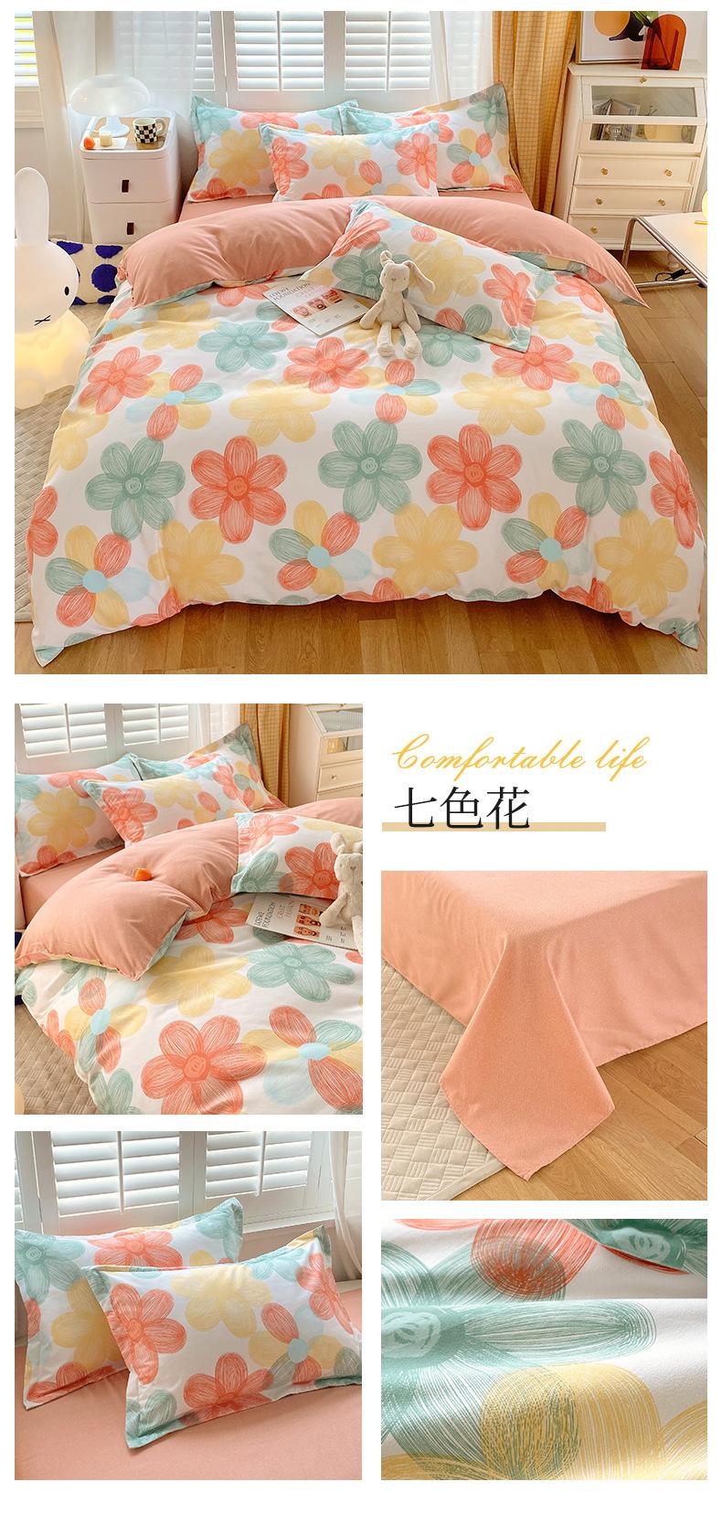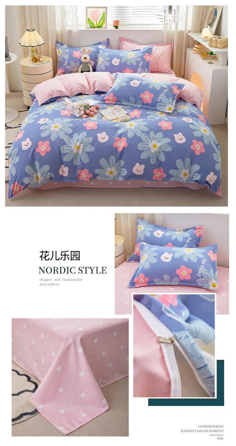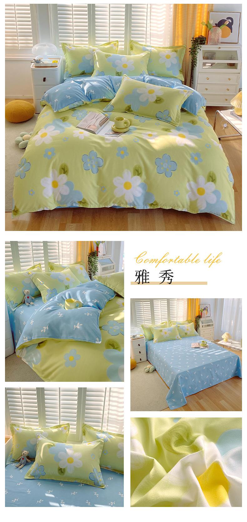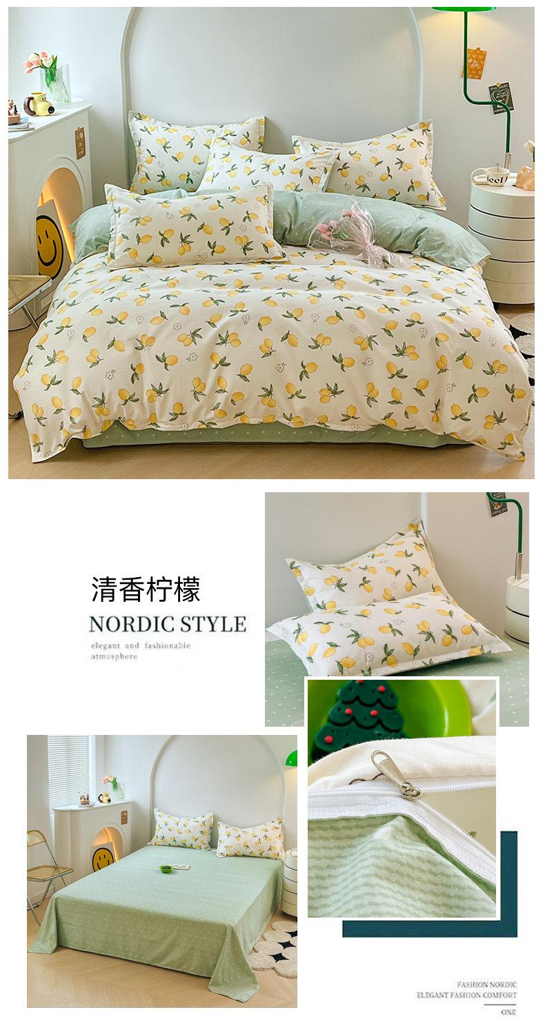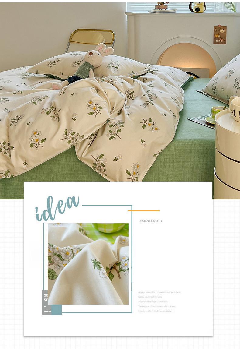 Juego de cuatro piezas de cama de algodón fresco cepillado, juego de tres piezas para dormitorio doméstico de funda nórdica y sábana bajera de algodón lavado engrosado, venta al por mayor