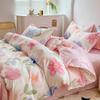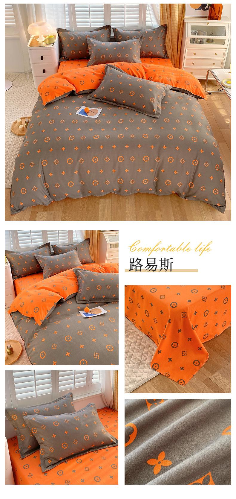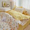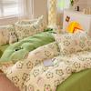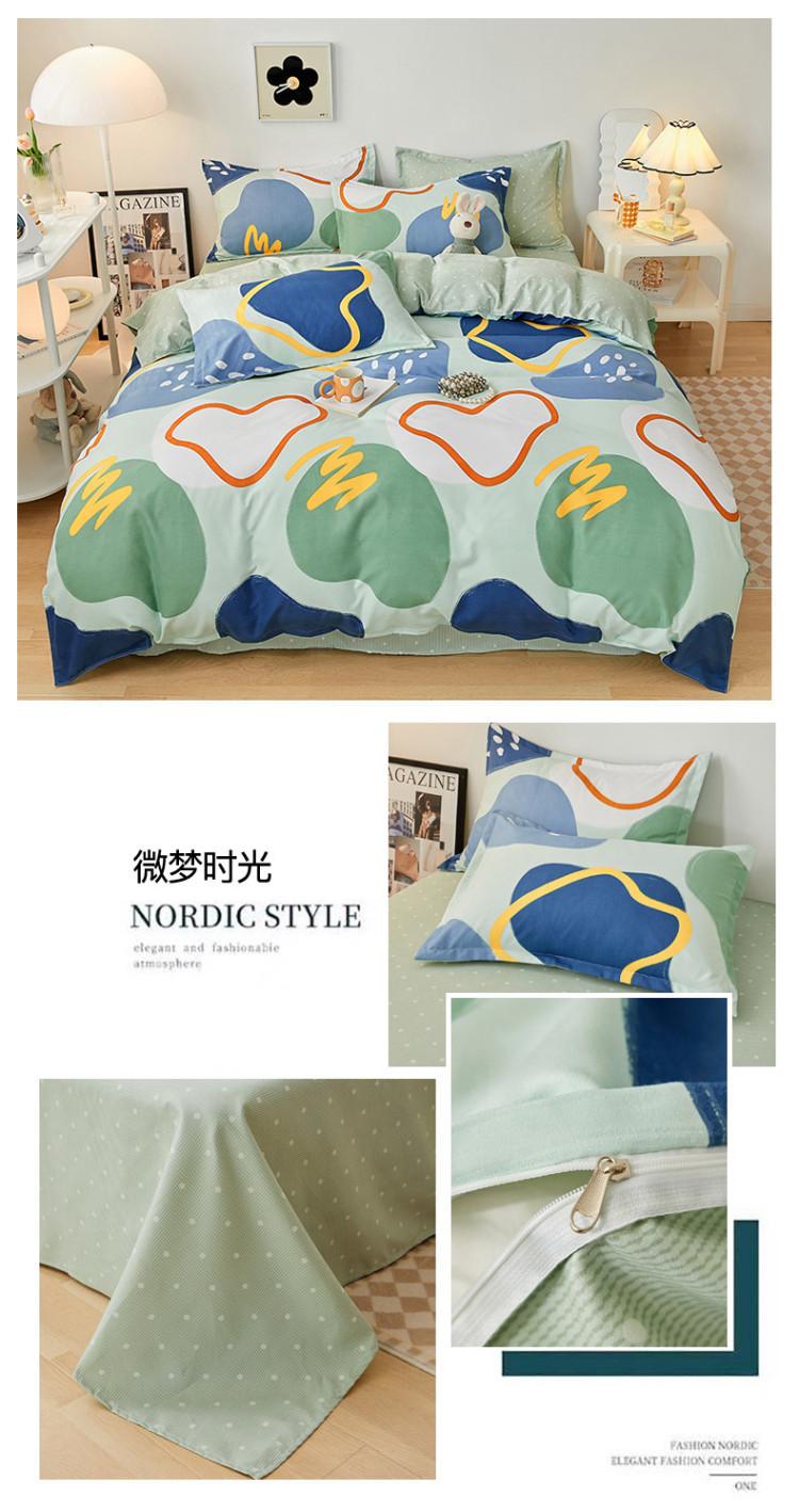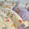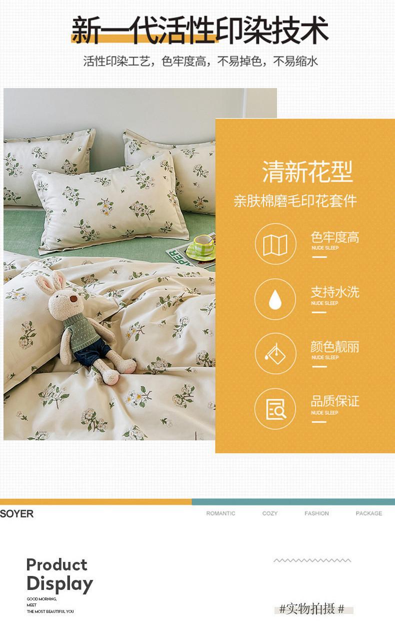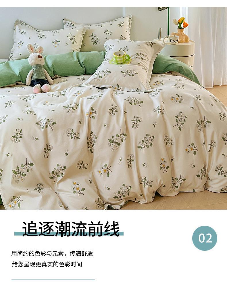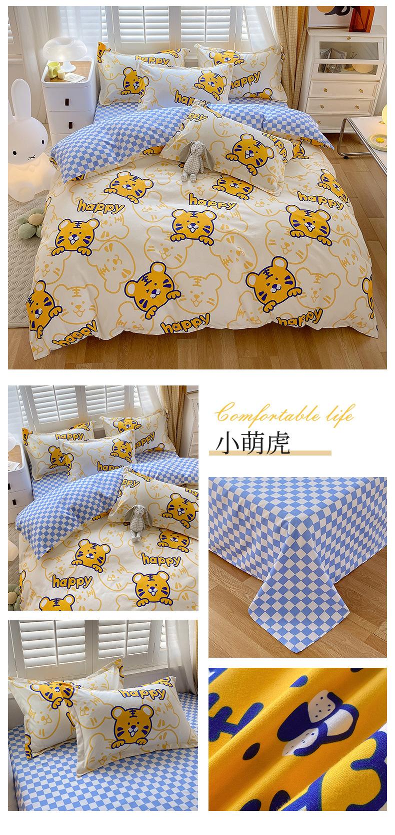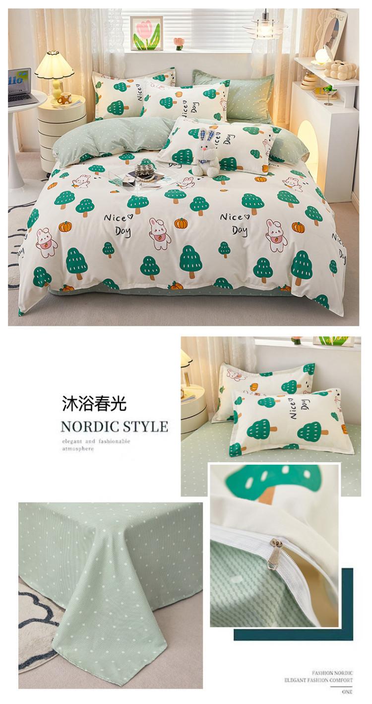 Juego de cuatro piezas de cama de algodón fresco cepillado, juego de tres piezas para dormitorio doméstico de funda nórdica y sábana bajera de algodón lavado engrosado, venta al por mayor