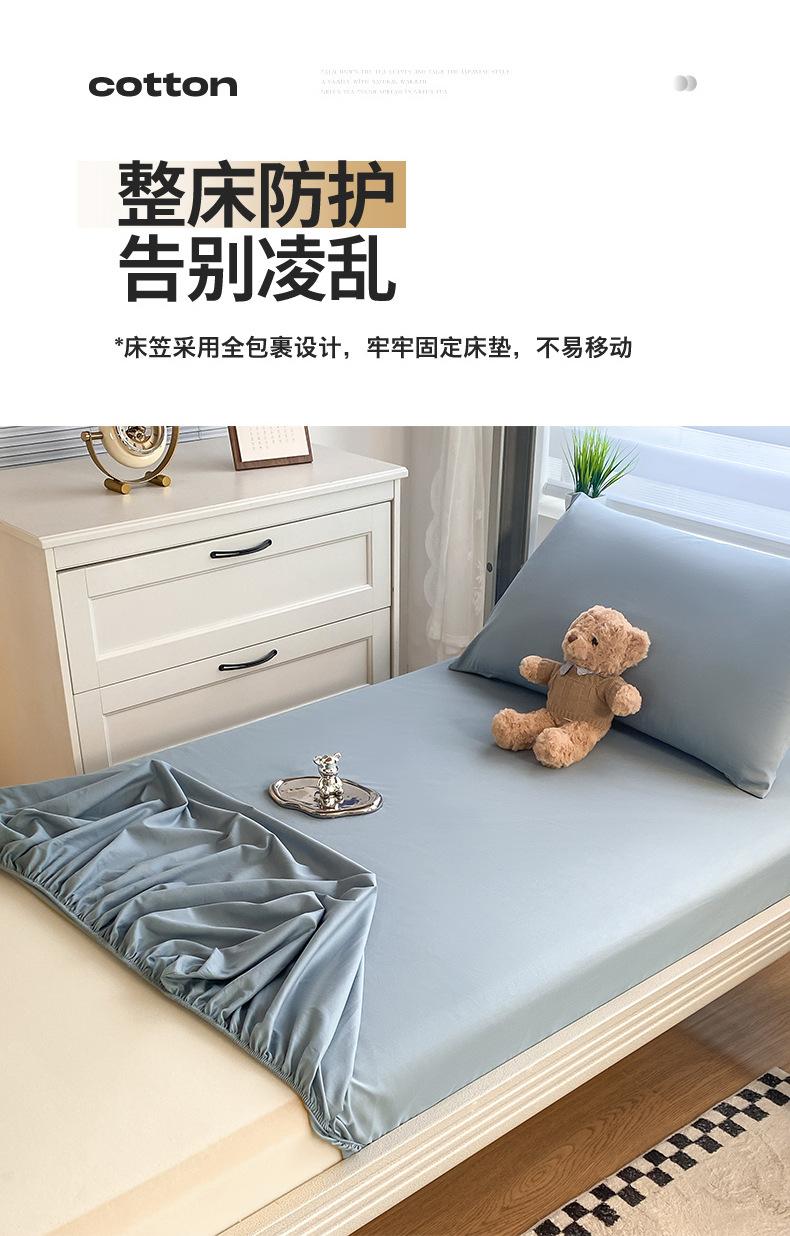 Color Sólido Cama de Dormitorio Estudiantil Sombrero Juego de Tres Piezas 40% Algodón de Fibra Larga Cubrecama Individual Hogar Protector de Colchón Simmons