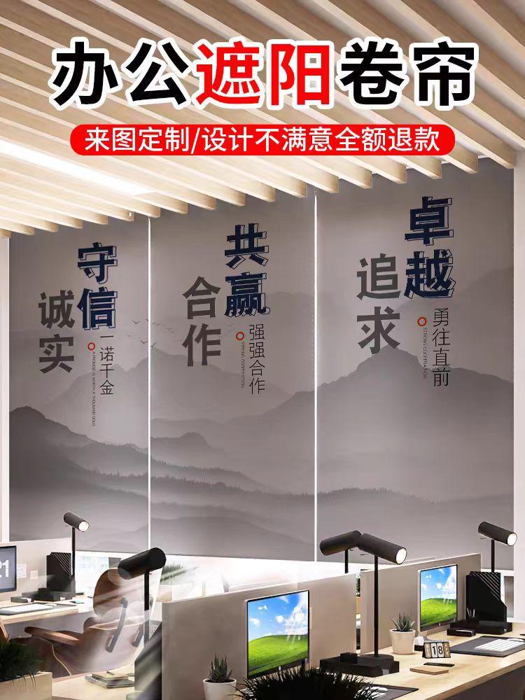 Procesamiento de sombreado de cortinas enrollables, impresión de logotipos, cortinas de oficina, contenedor, departamento de proyectos, cortinas enrollables