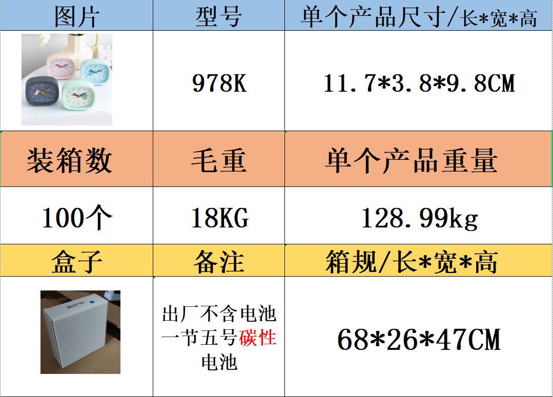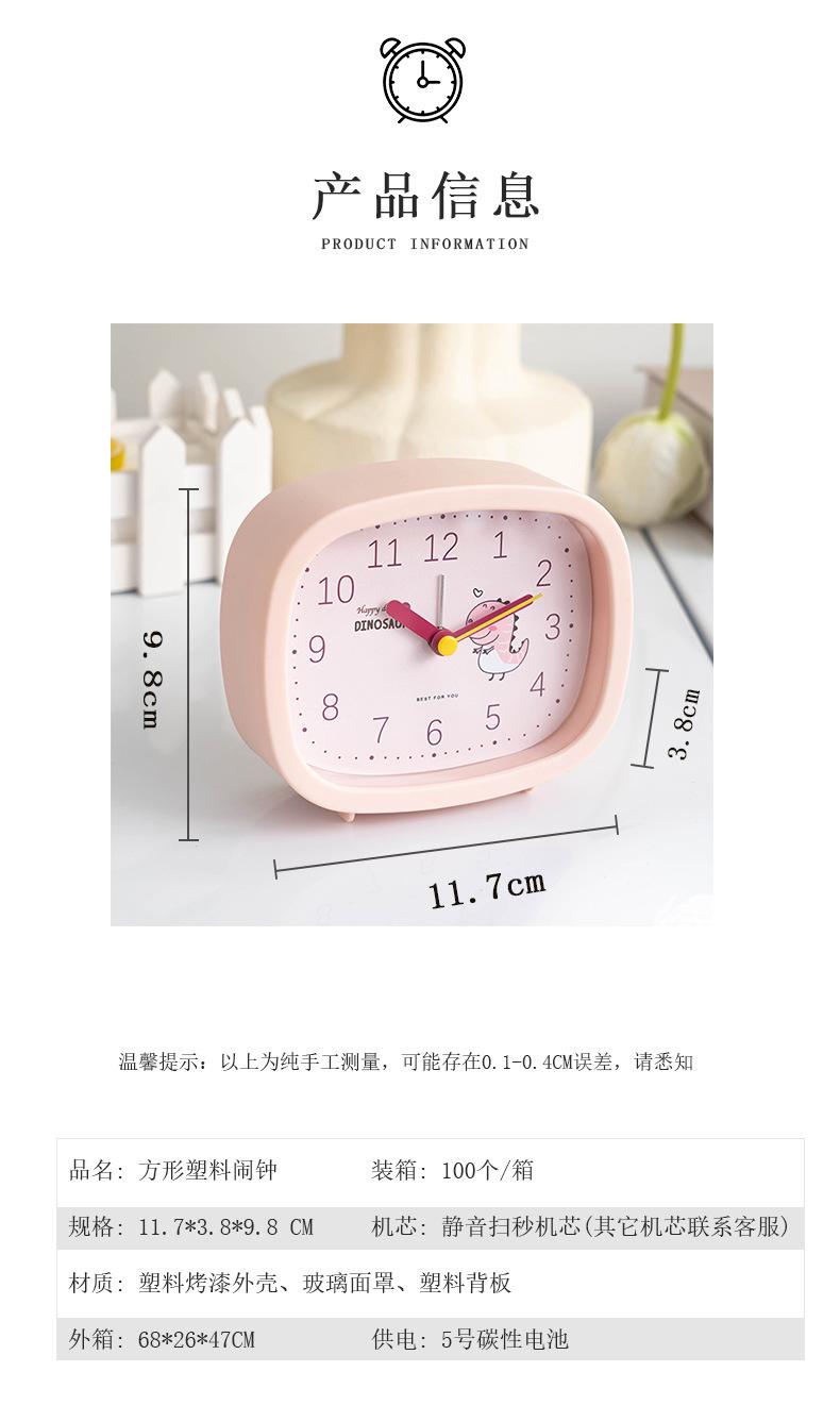 Reloj despertador cuadrado de plástico con aguja de color directo de fábrica, reloj de noche transparente para estudiantes, reloj despertador creativo y bonito de moda.