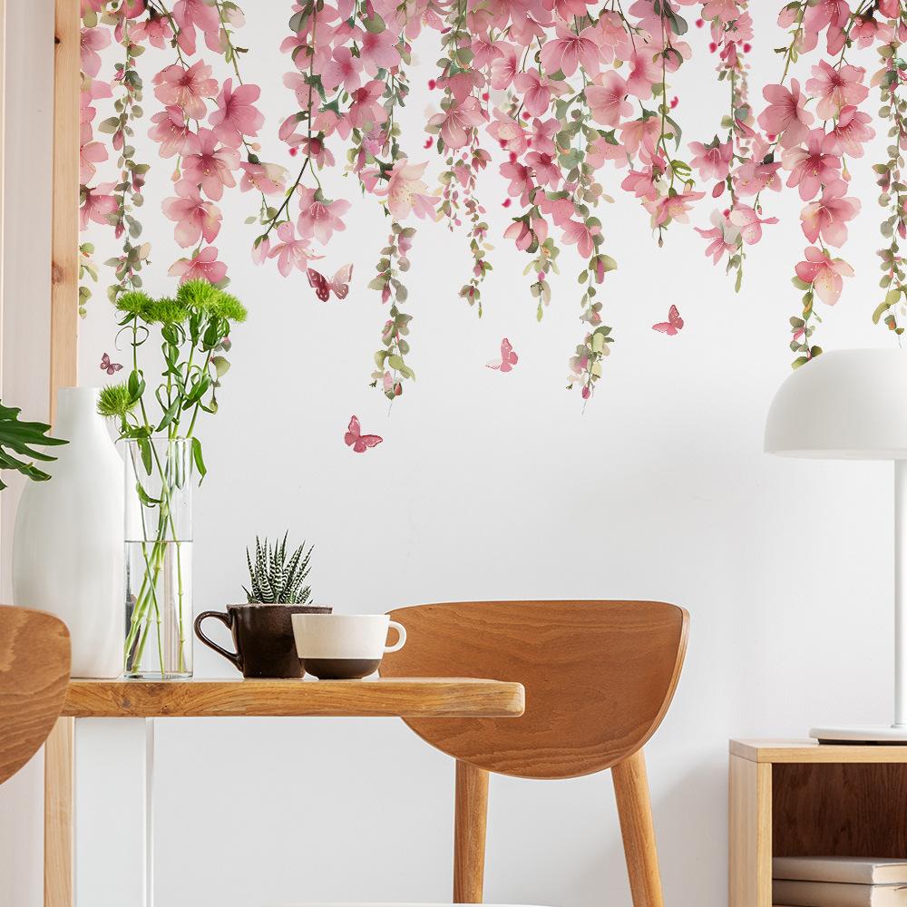 Nuevas pegatinas de pared decorativas de comercio exterior con flores pintadas, hojas, ramas, porche, sala de estar, fondo del hogar, venta al por mayor, autoadhesivas