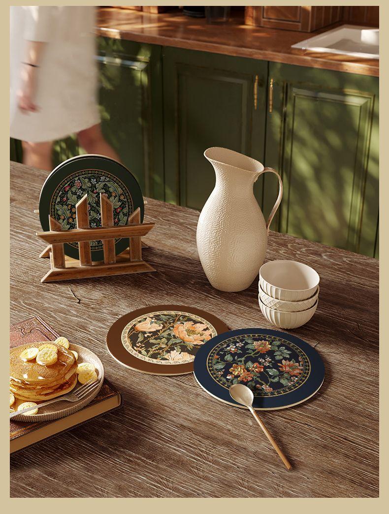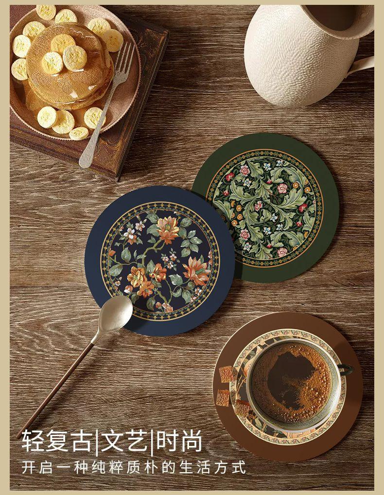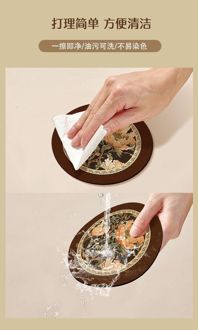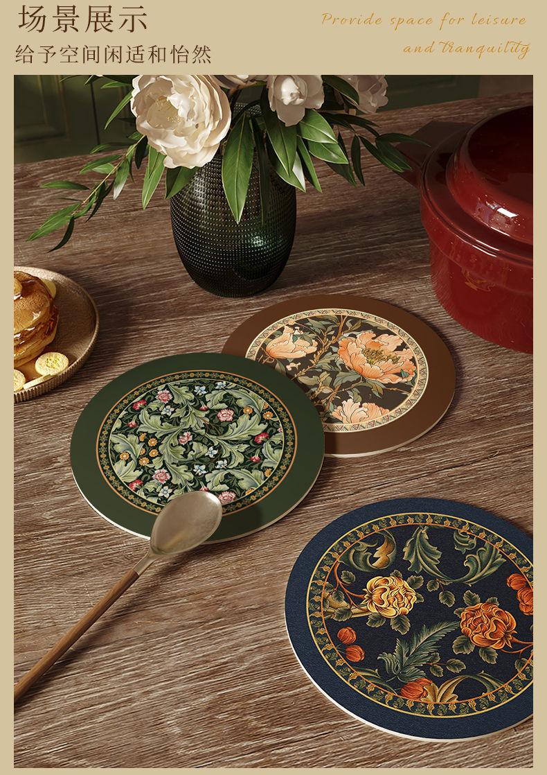 Posavasos nuevo estilo chino, tapete para tazón, tapete para taza de té, tapete de cuero impermeable y a prueba de aceite, tapete redondo con aislamiento térmico, tapete para mesa de comedor, tapete para plato