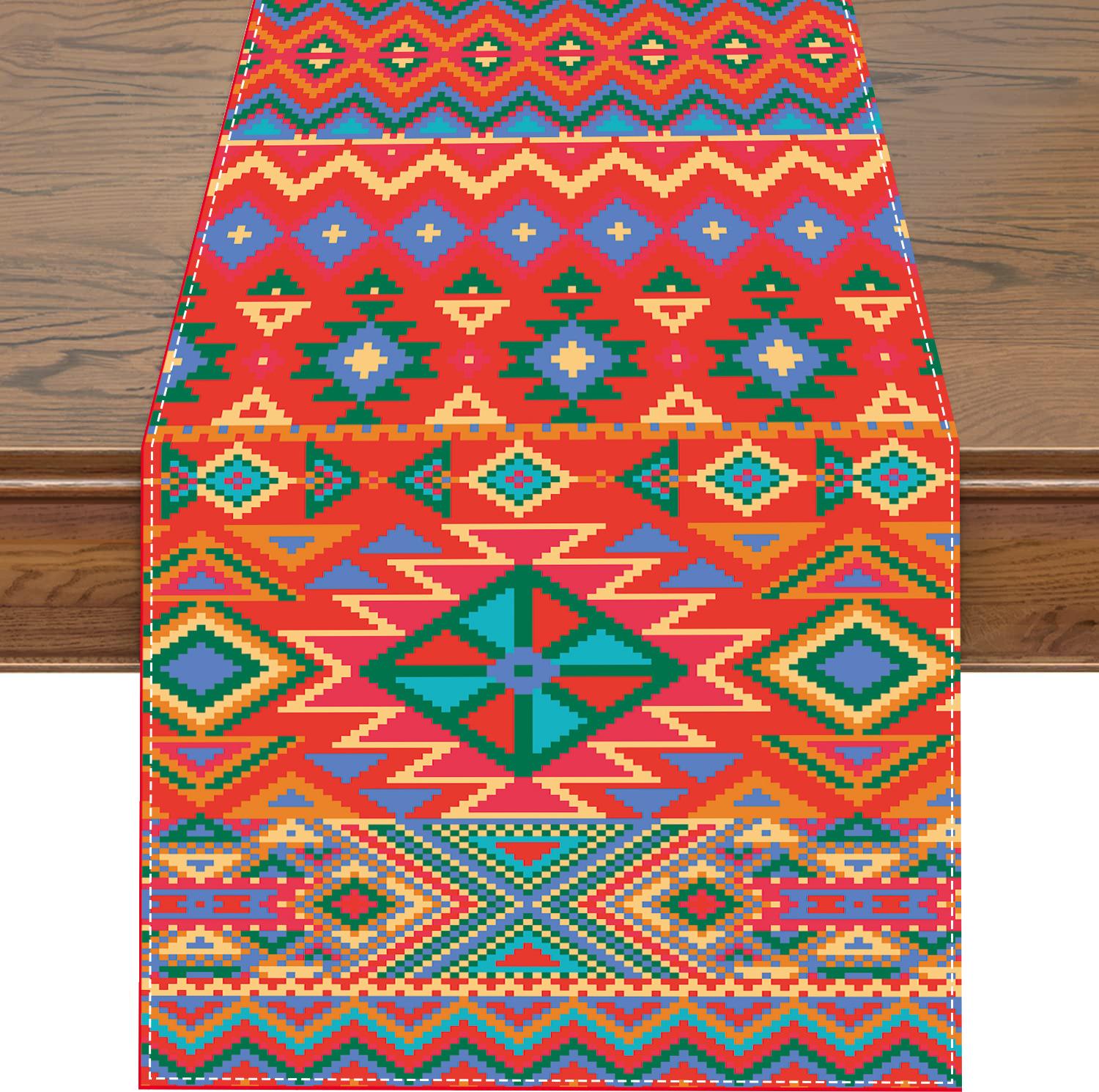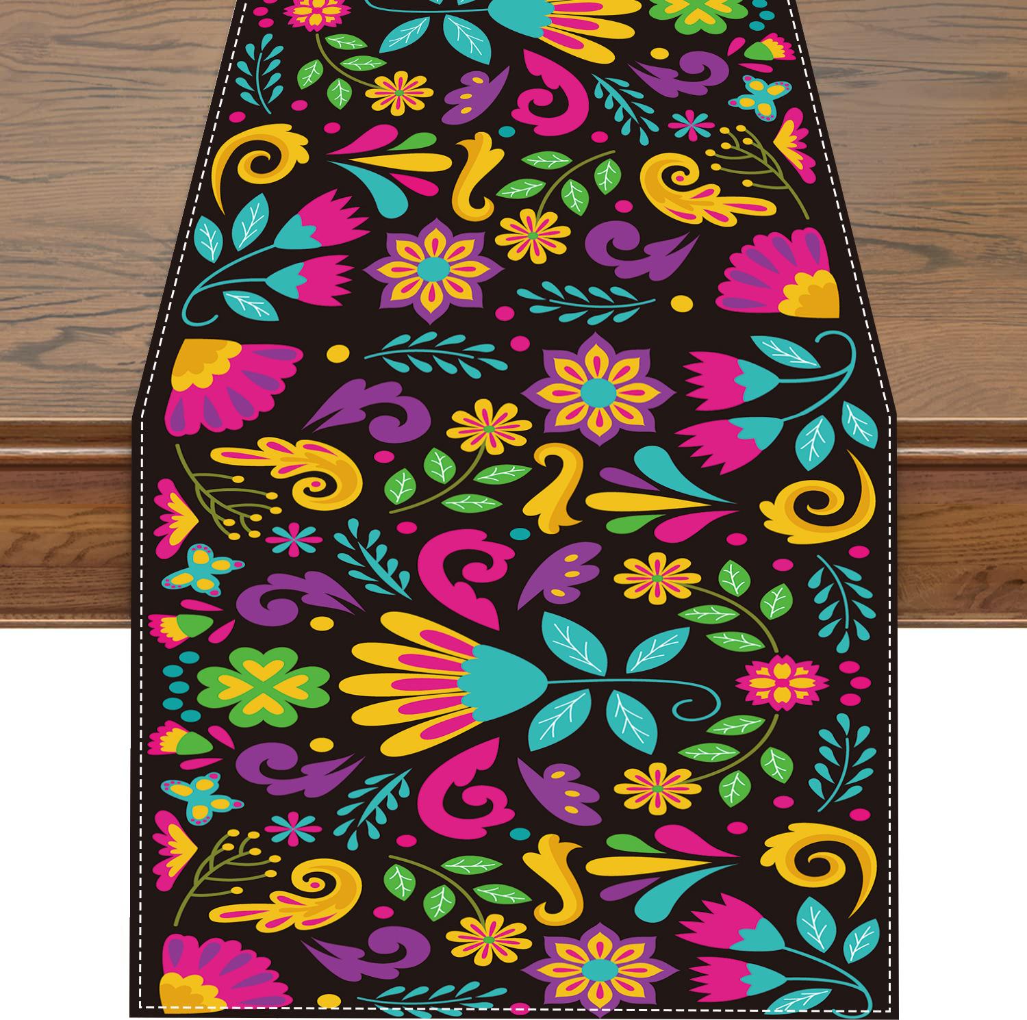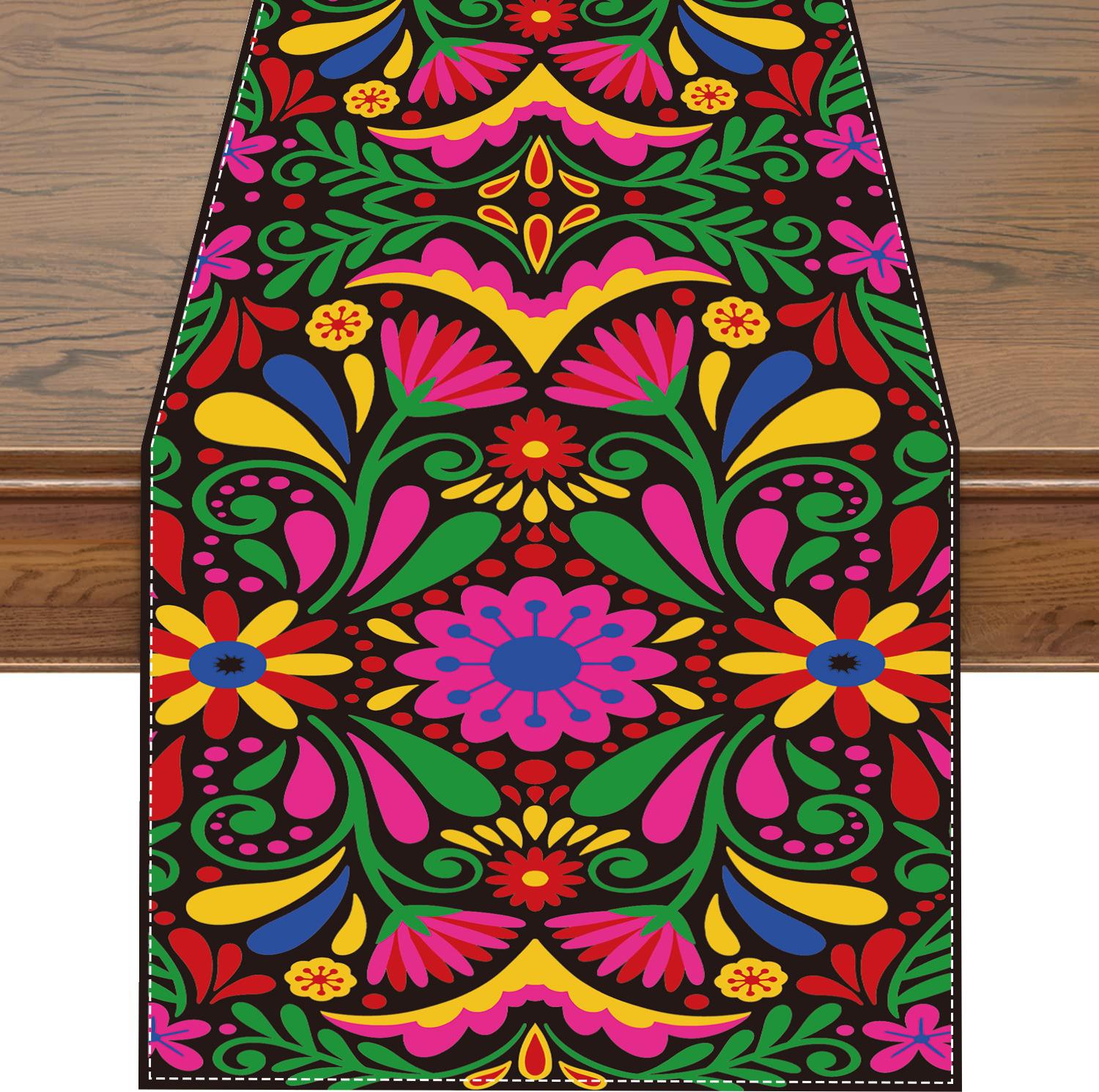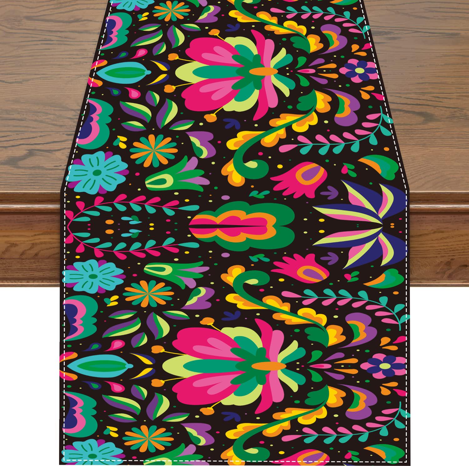 Nuevo y popular camino de mesa de lino colorido, decoración del hogar, decoración de restaurante, mantel, mantel, mantel, bandera de té, estilo mexicano