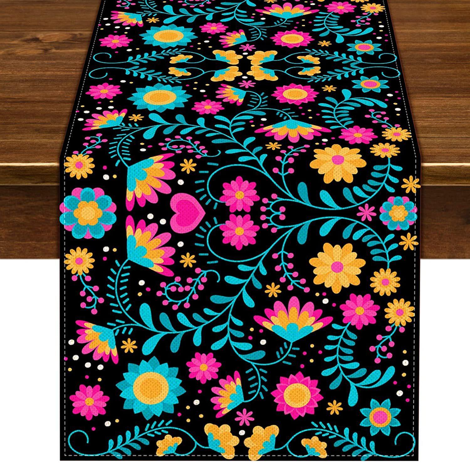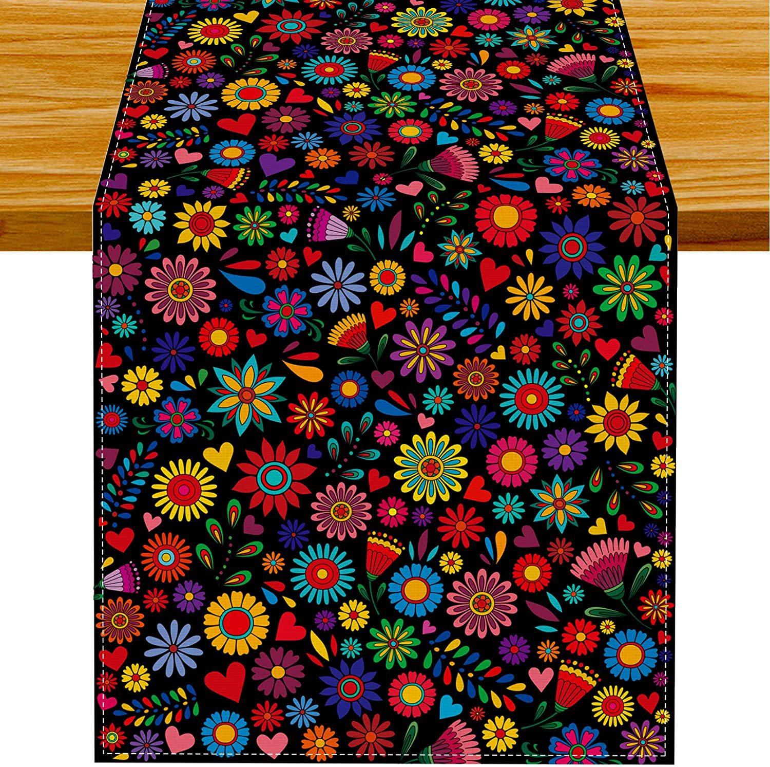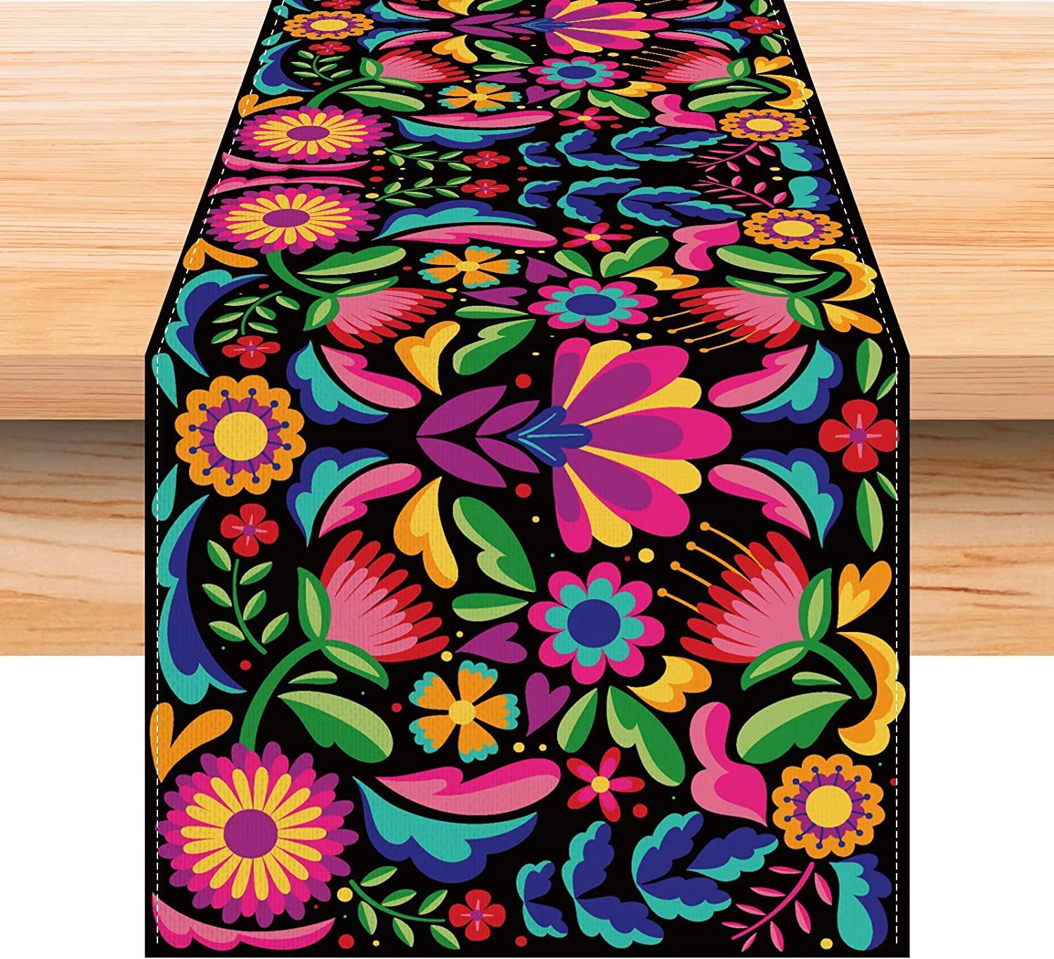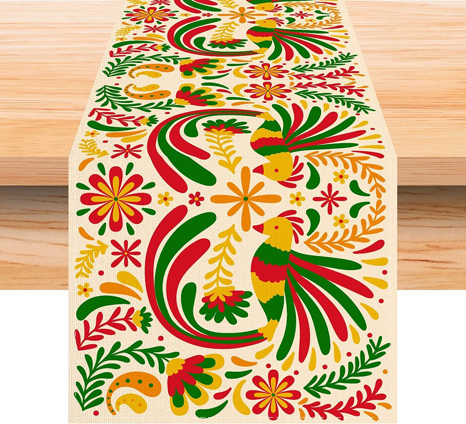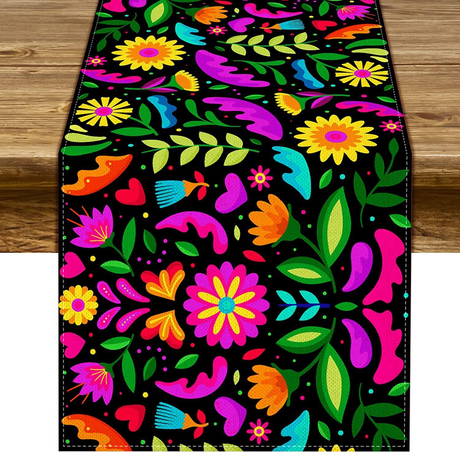 Nuevo y popular camino de mesa de lino colorido, decoración del hogar, decoración de restaurante, mantel, mantel, mantel, bandera de té, estilo mexicano