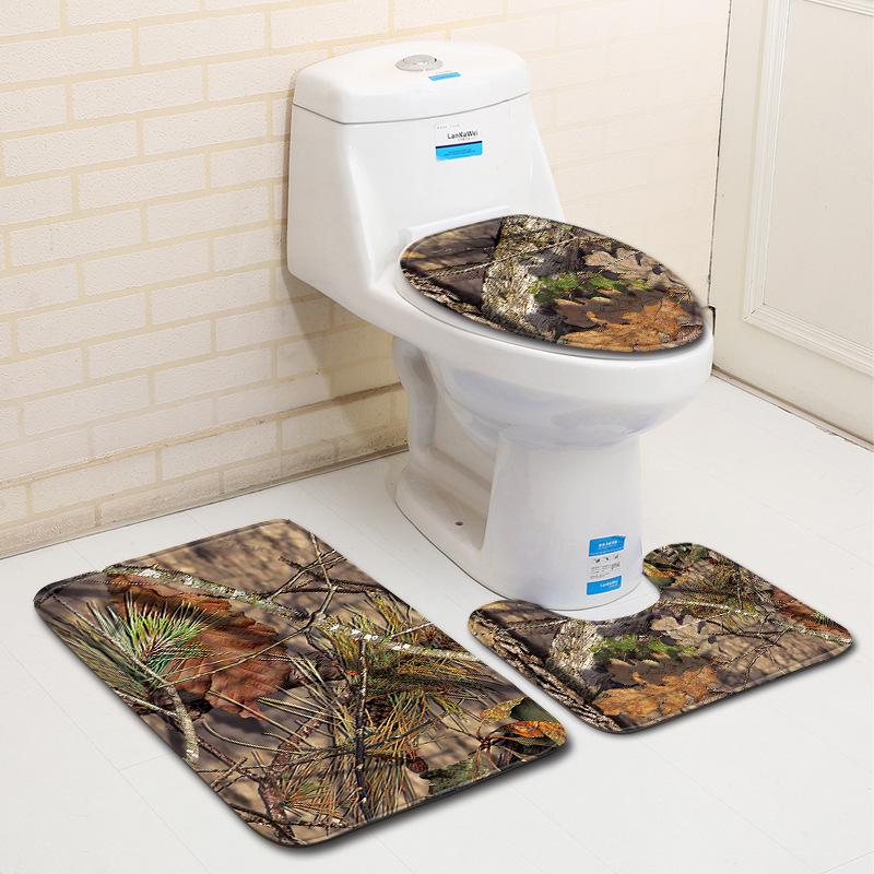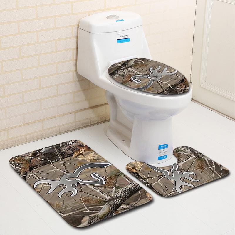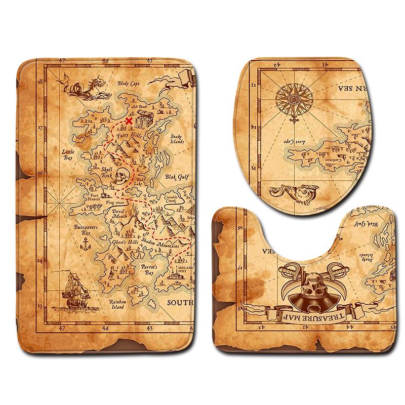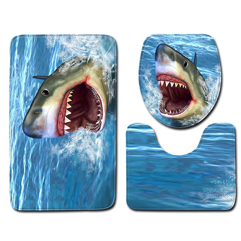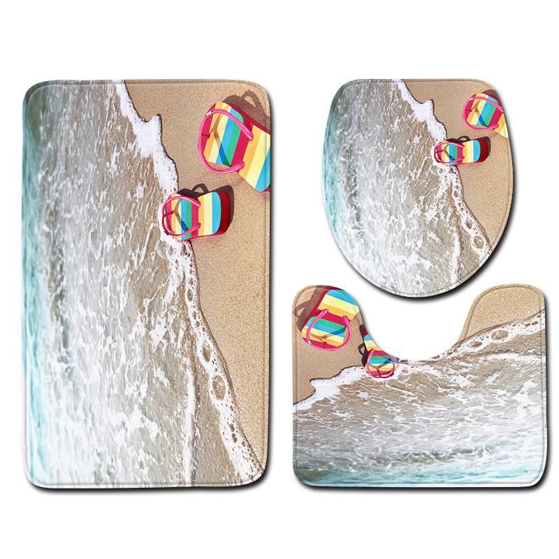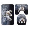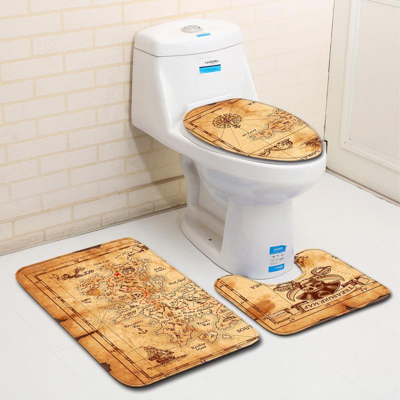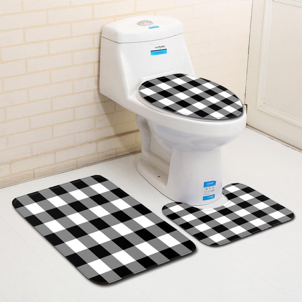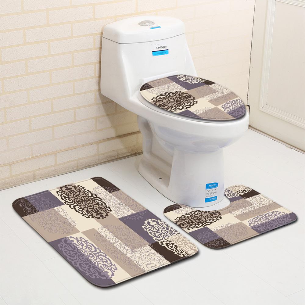 Felpudo de baño de tres piezas, estilo moderno y creativo, antideslizante, suave, con patrón personalizado.