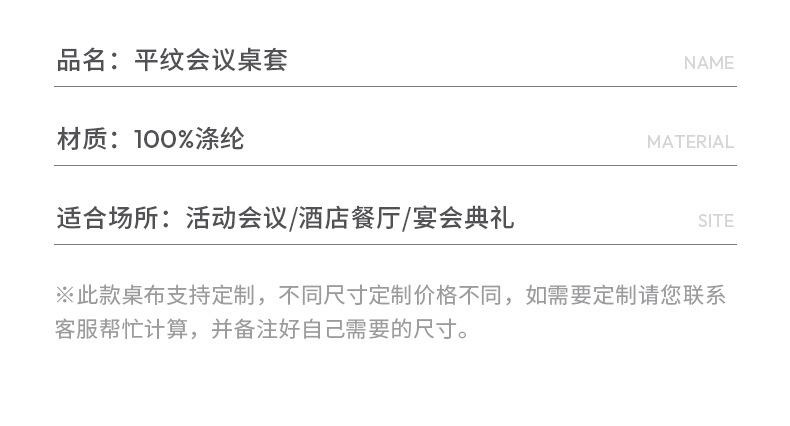 Juego de mesa de conferencias de tejido liso de hotel mantel cuadrado de color sólido mantel de registro de actividades de oficina cubierta de mesa de boda al por mayor